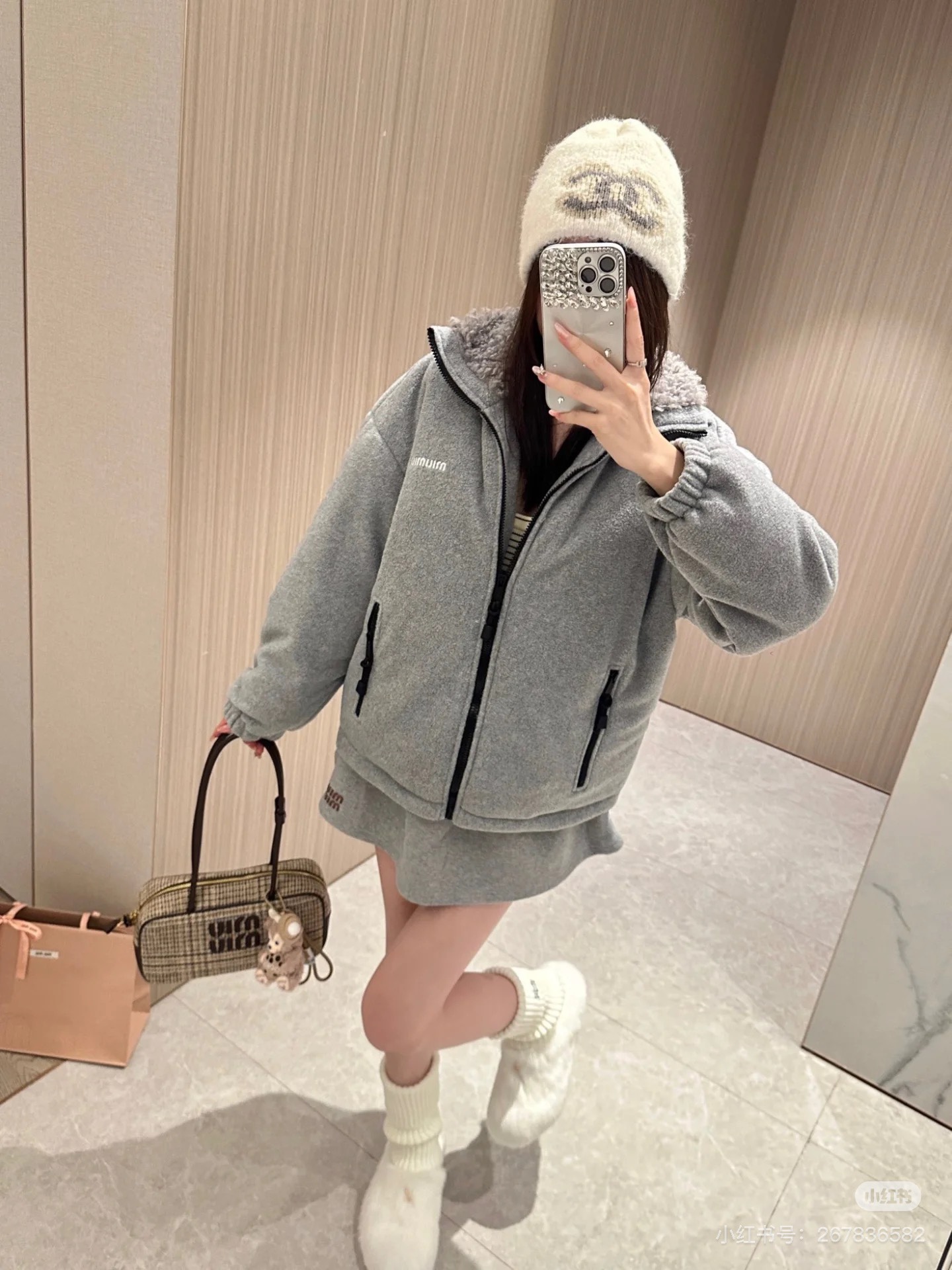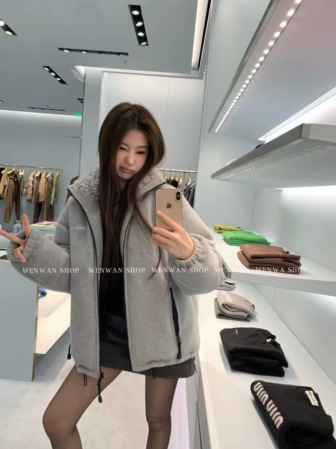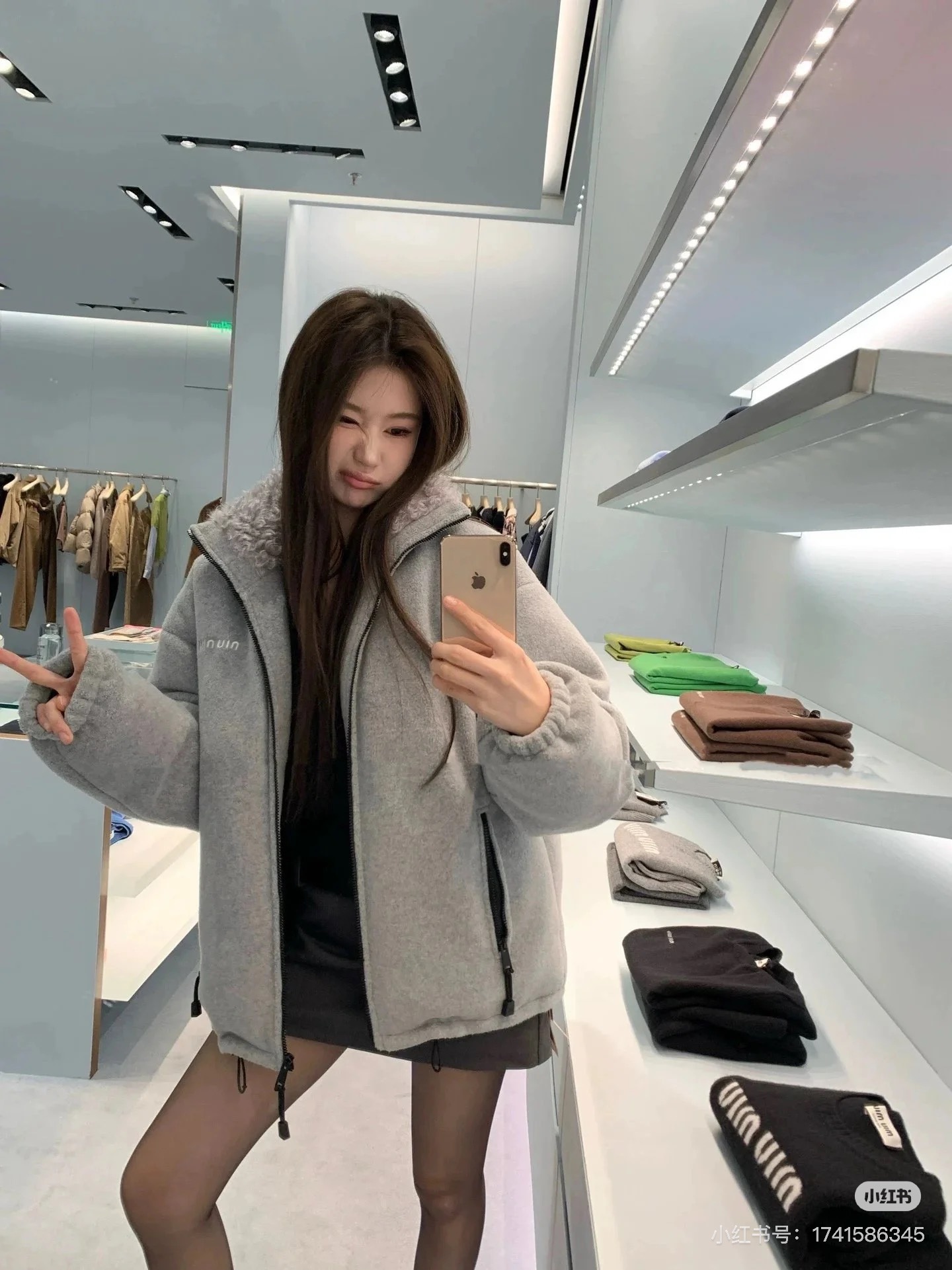 这款衣服是AAAAA 1:1 质量 (非常棒). 使用了和原版一模一样的材料. 商标部分也保持了和缪缪/Miu Miu一样. 图片拍摄是实物衣服拍摄, 您所收到的实物保证和我们图片一模一样.