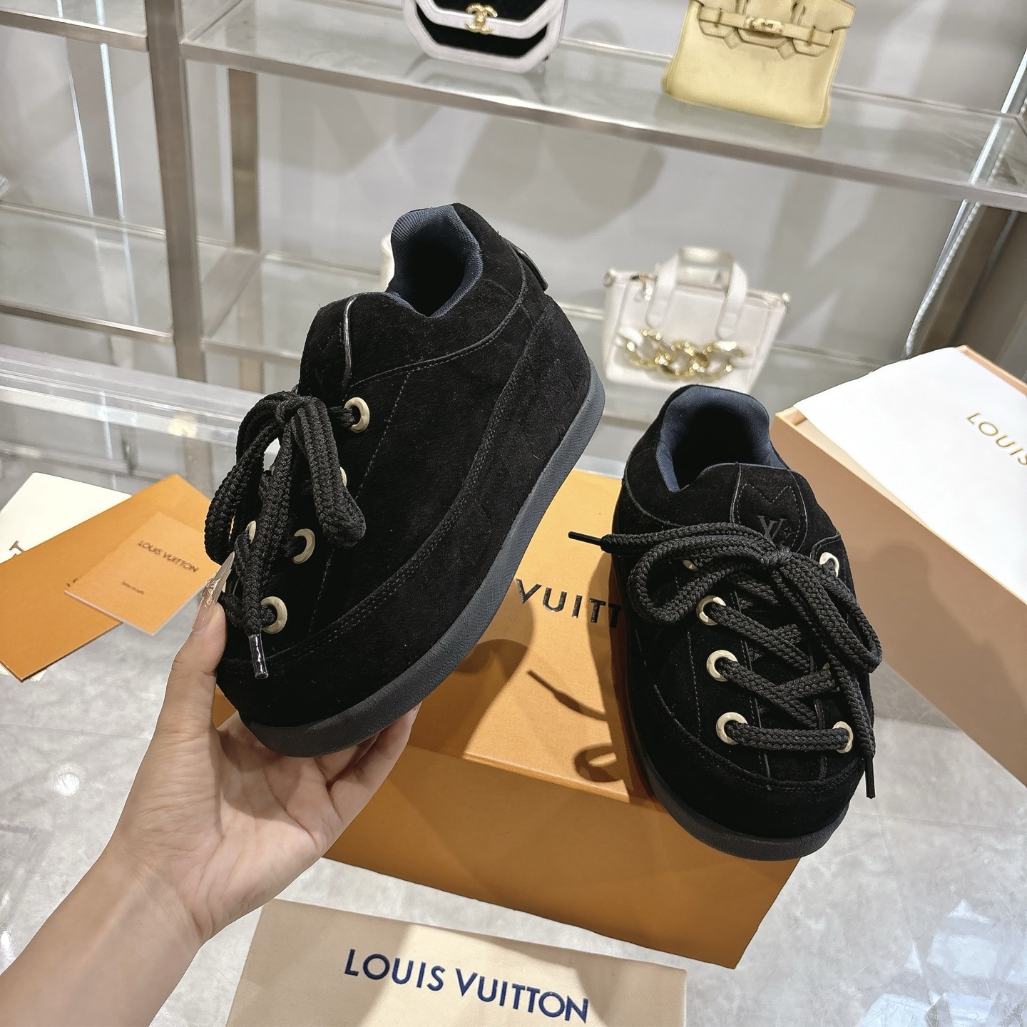 这款鞋子是AAAAA 1:1 质量 (非常棒). 使用了和原版一模一样的材料. 商标部分也保持了和Ami一样. 图片拍摄是实物鞋子拍摄, 您所收到的实物保证和我们图片一模一样.