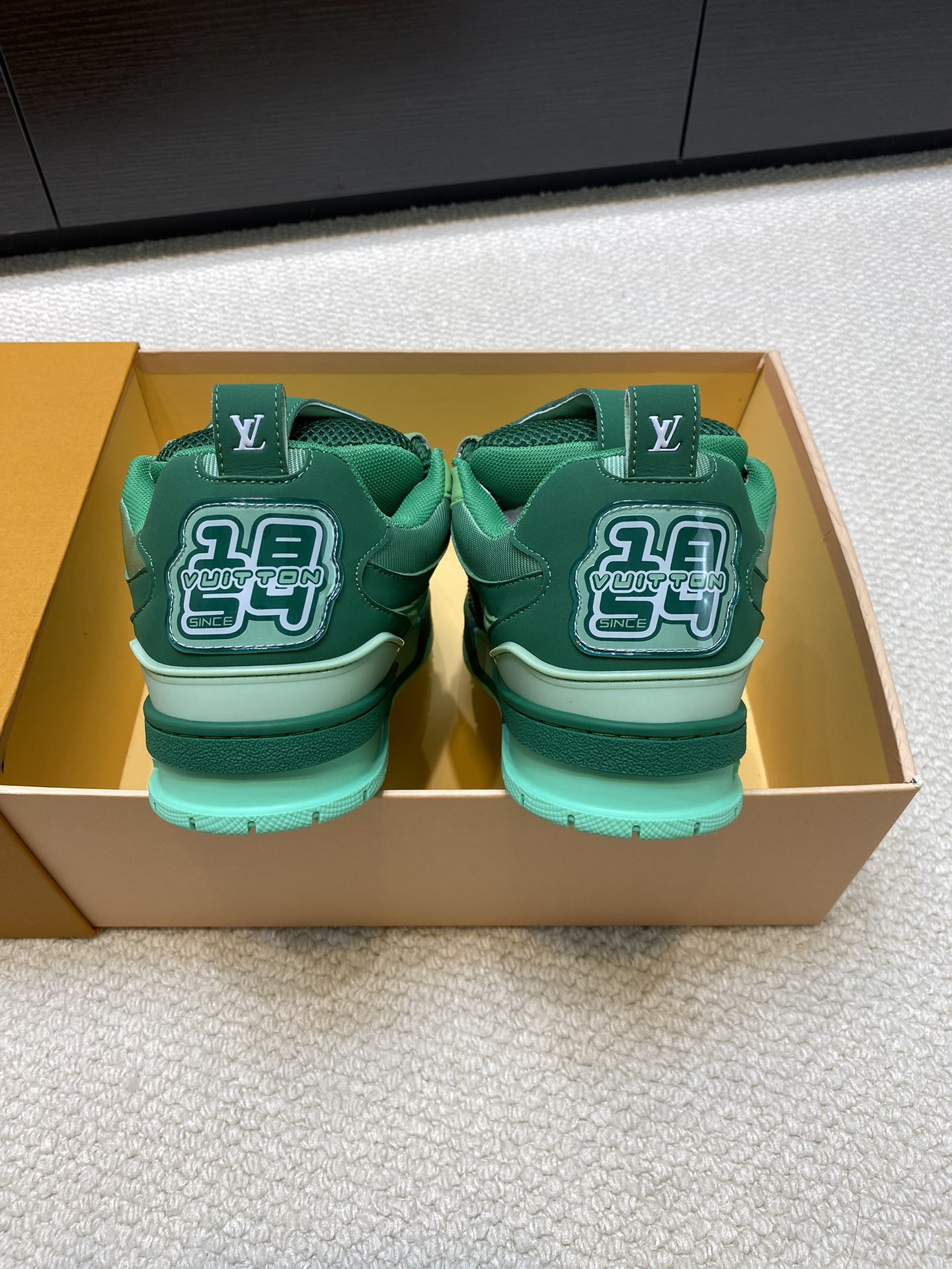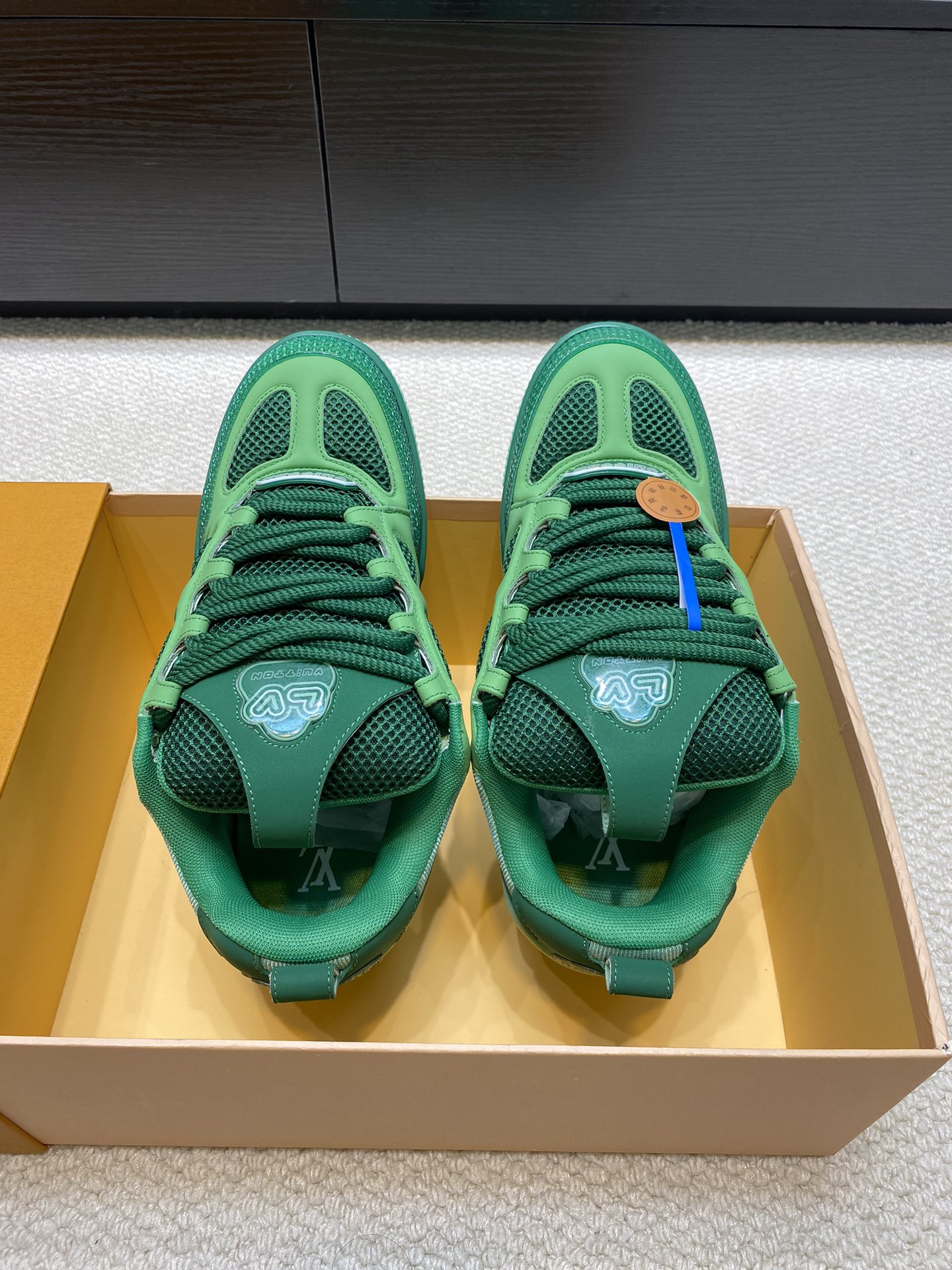 这款鞋子是AAAAA 1:1 质量 (非常棒). 使用了和原版一模一样的材料. 商标部分也保持了和路易威登/Louis Vuitton一样. 图片拍摄是实物鞋子拍摄, 您所收到的实物保证和我们图片一模一样.