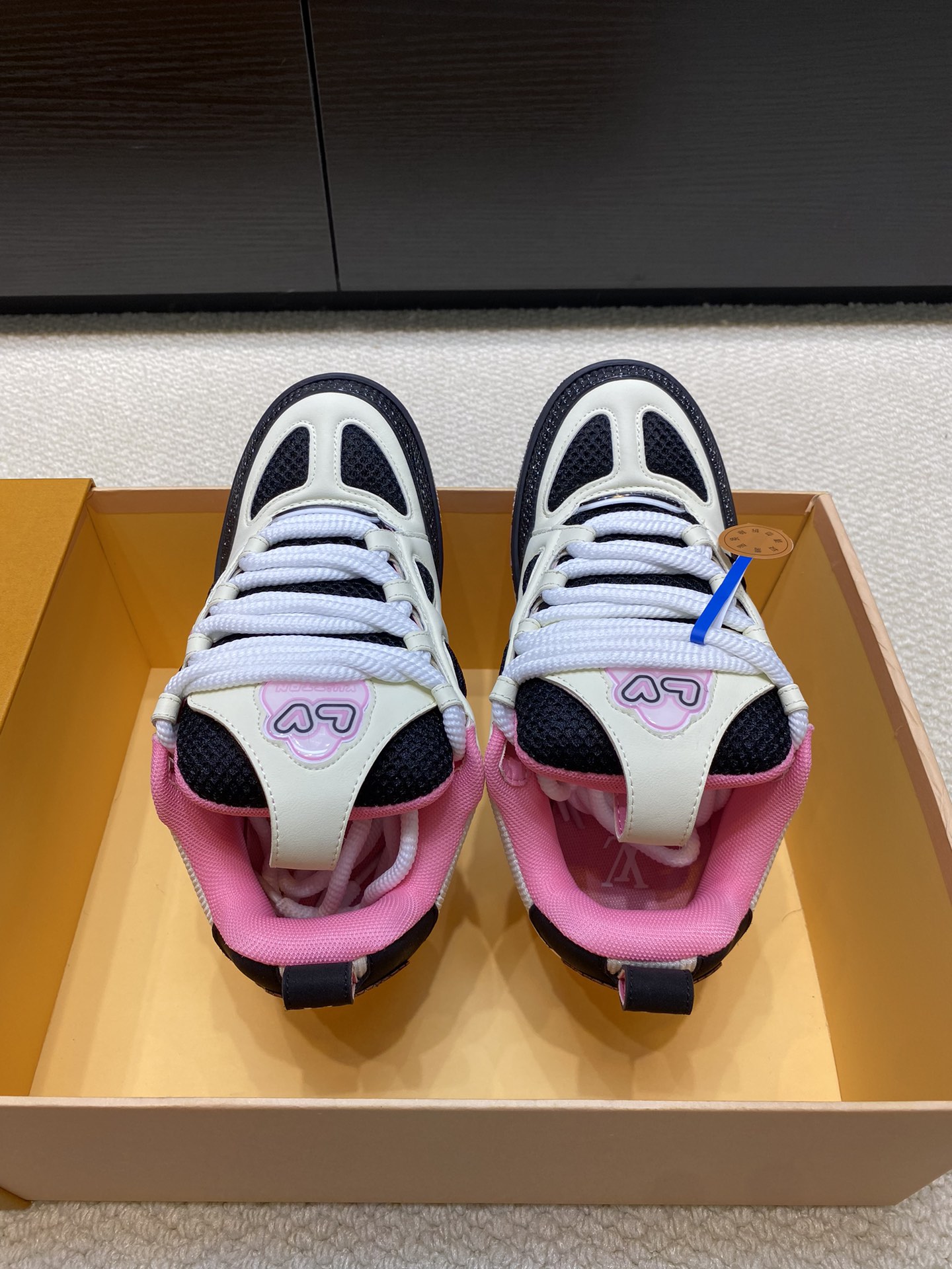 这款鞋子是AAAAA 1:1 质量 (非常棒). 使用了和原版一模一样的材料. 商标部分也保持了和路易威登/Louis Vuitton一样. 图片拍摄是实物鞋子拍摄, 您所收到的实物保证和我们图片一模一样.