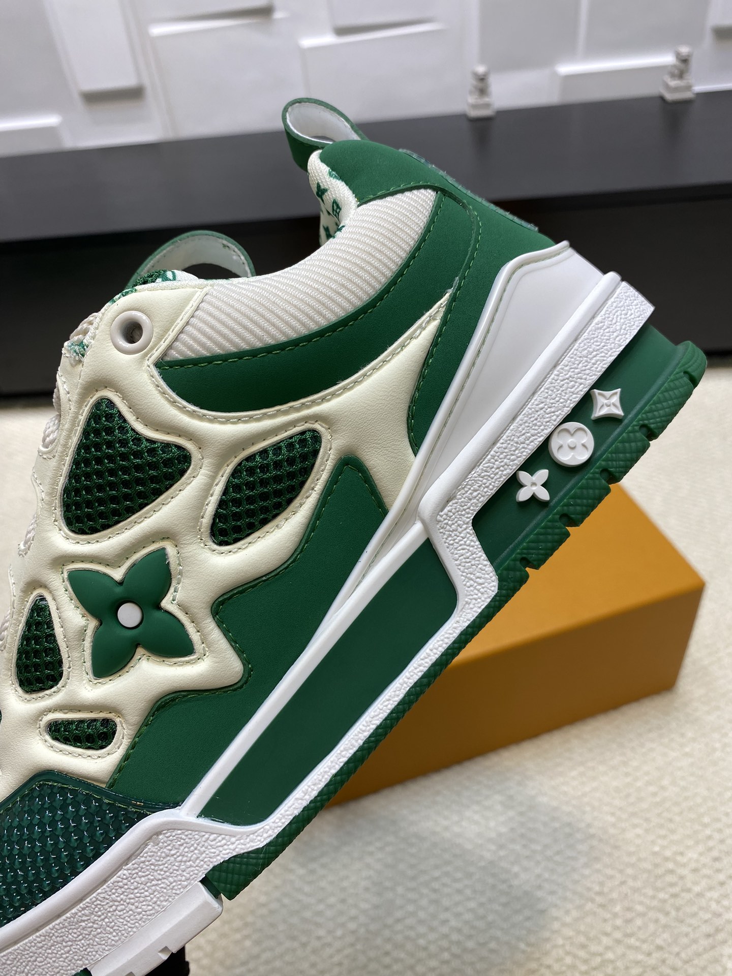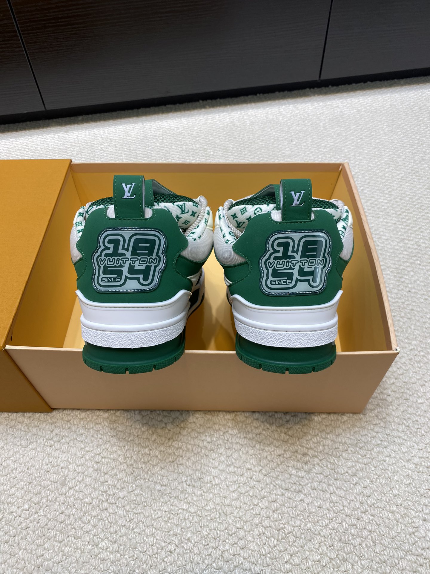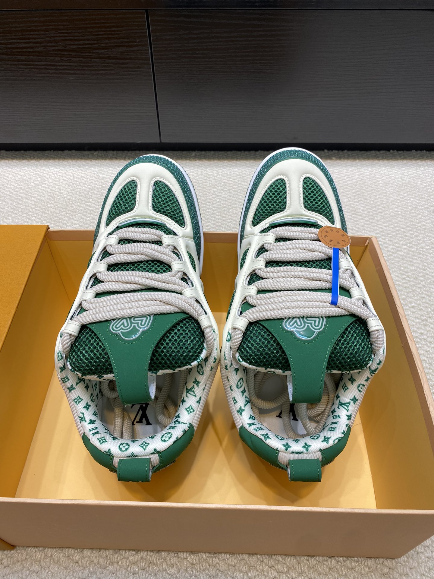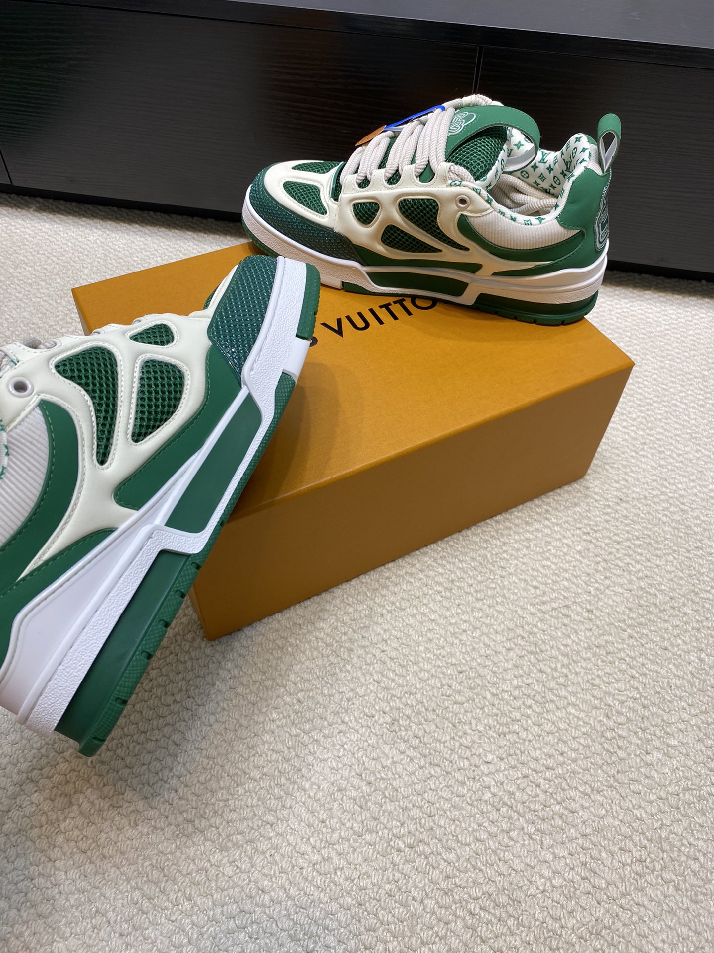 这款鞋子是AAAAA 1:1 质量 (非常棒). 使用了和原版一模一样的材料. 商标部分也保持了和路易威登/Louis Vuitton一样. 图片拍摄是实物鞋子拍摄, 您所收到的实物保证和我们图片一模一样.