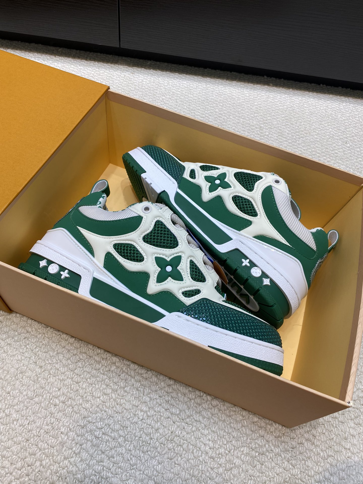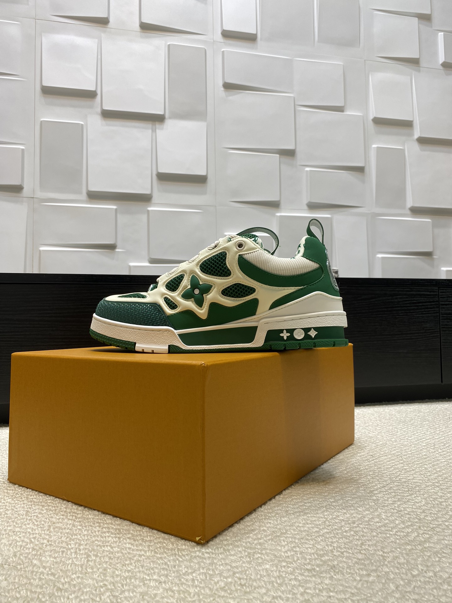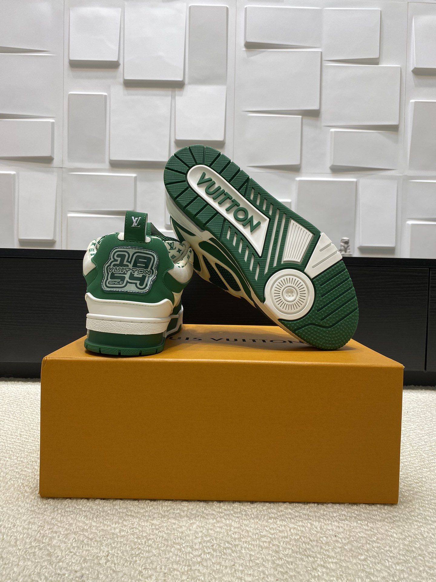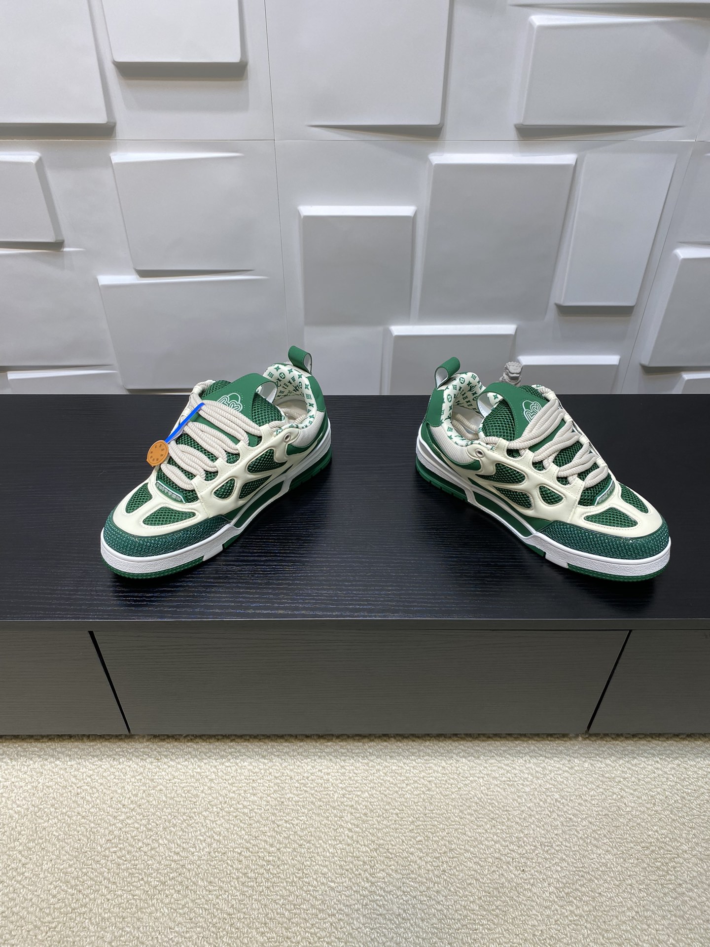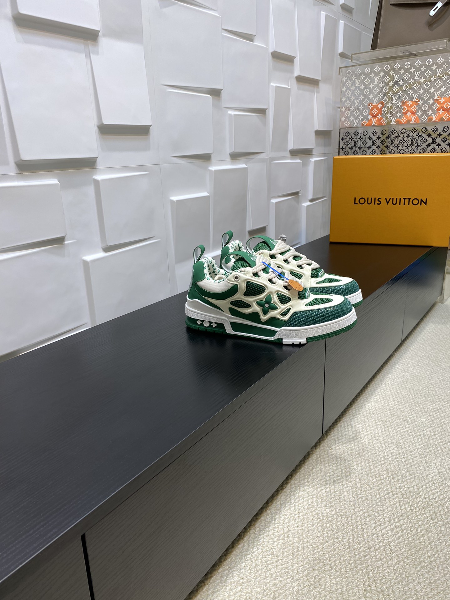 这款鞋子是AAAAA 1:1 质量 (非常棒). 使用了和原版一模一样的材料. 商标部分也保持了和路易威登/Louis Vuitton一样. 图片拍摄是实物鞋子拍摄, 您所收到的实物保证和我们图片一模一样.