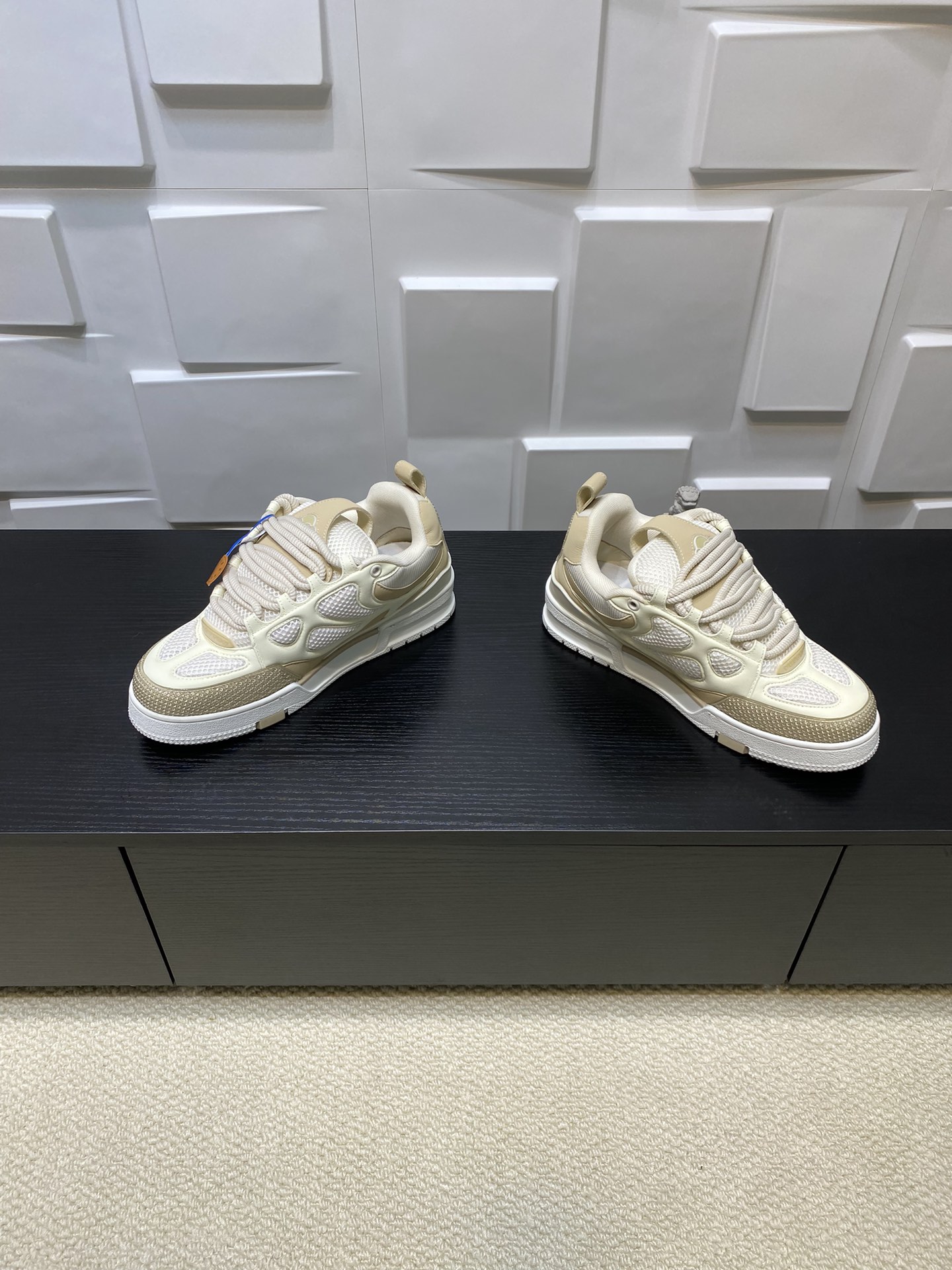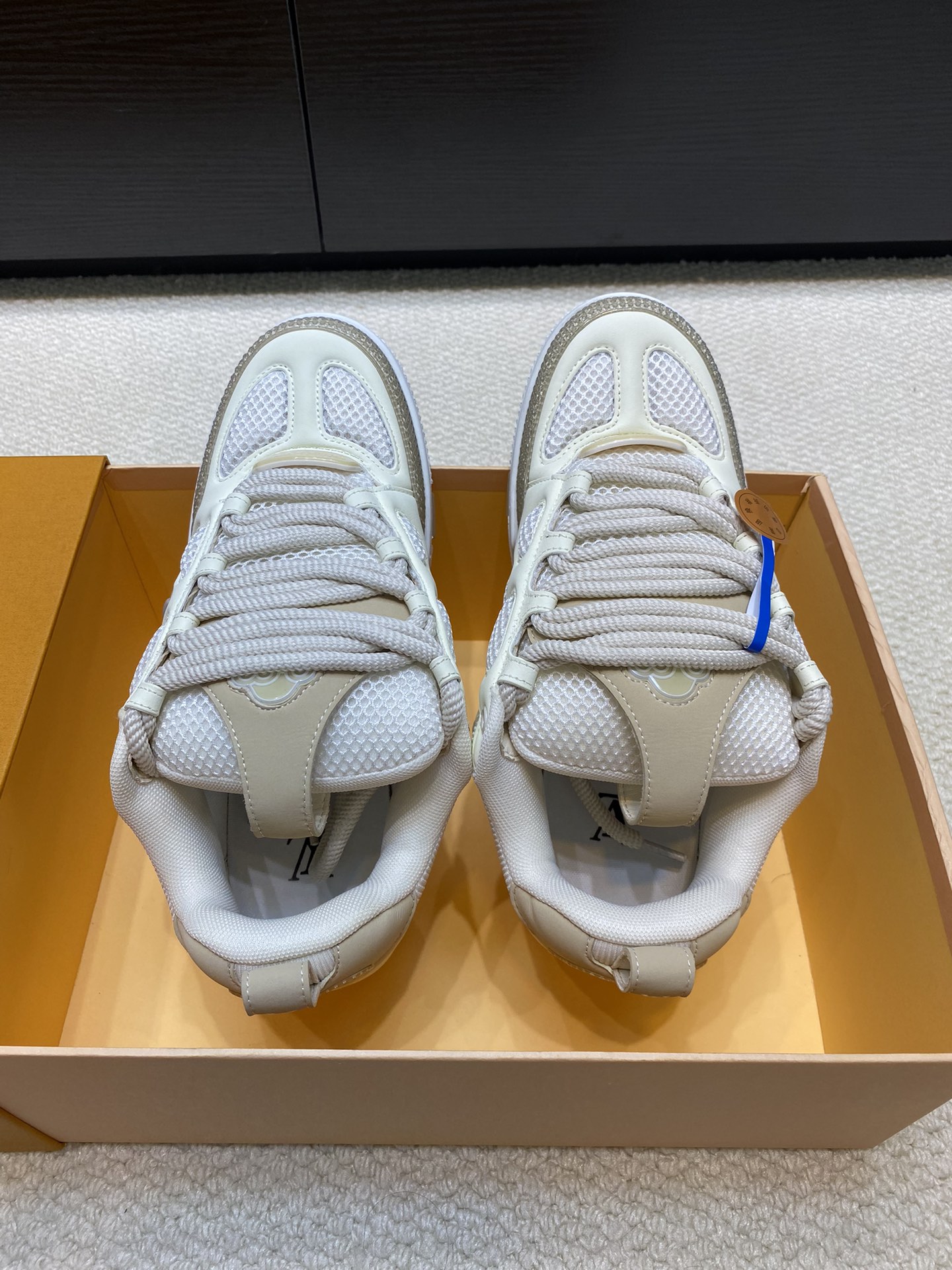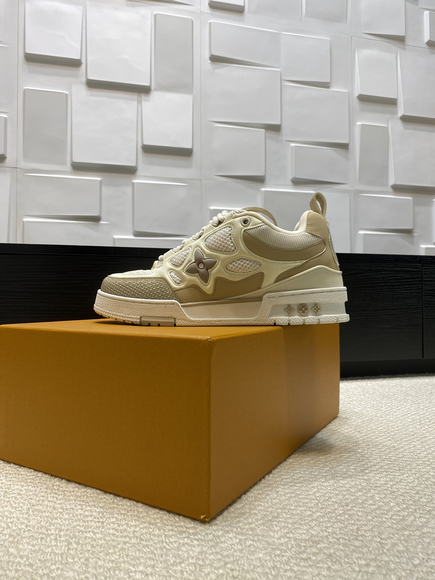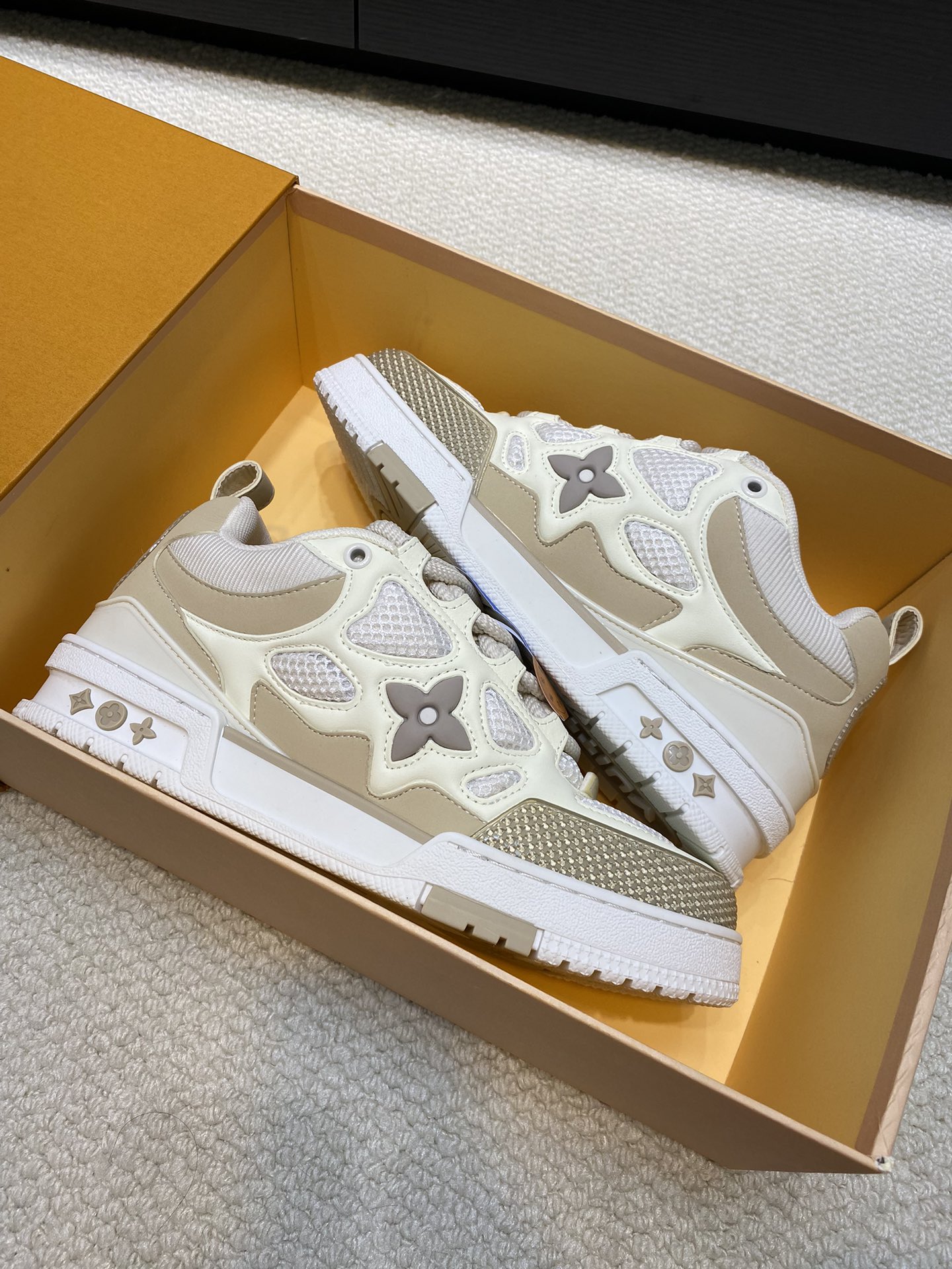 这款鞋子是AAAAA 1:1 质量 (非常棒). 使用了和原版一模一样的材料. 商标部分也保持了和路易威登/Louis Vuitton一样. 图片拍摄是实物鞋子拍摄, 您所收到的实物保证和我们图片一模一样.