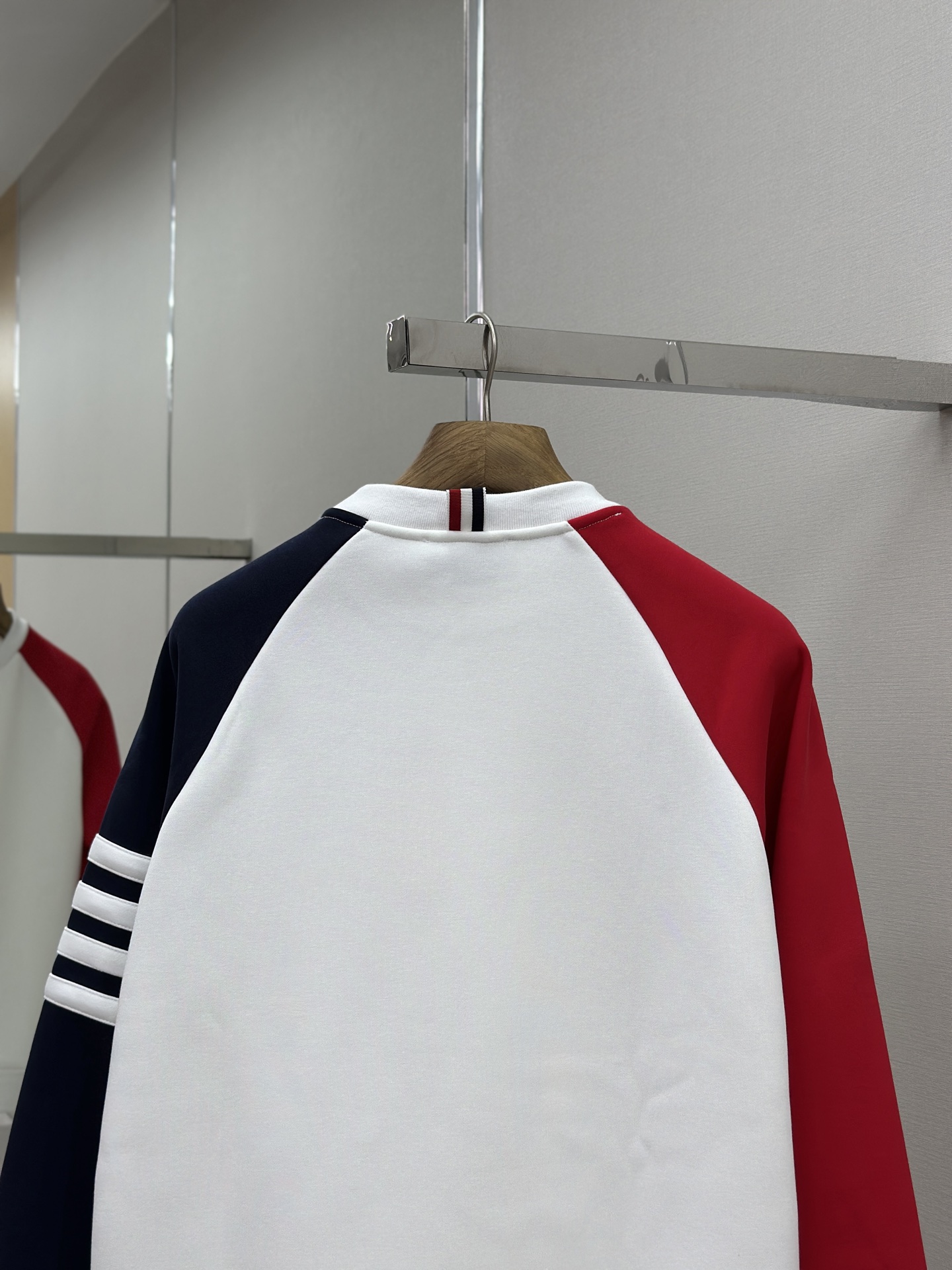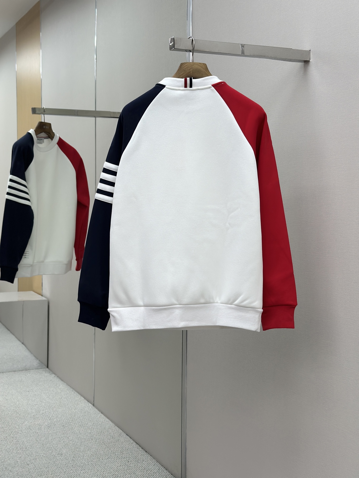 这款衣服是AAAAA 1:1 质量 (非常棒). 使用了和原版一模一样的材料. 商标部分也保持了和汤姆布朗/Thom Browne一样. 图片拍摄是实物衣服拍摄, 您所收到的实物保证和我们图片一模一样.