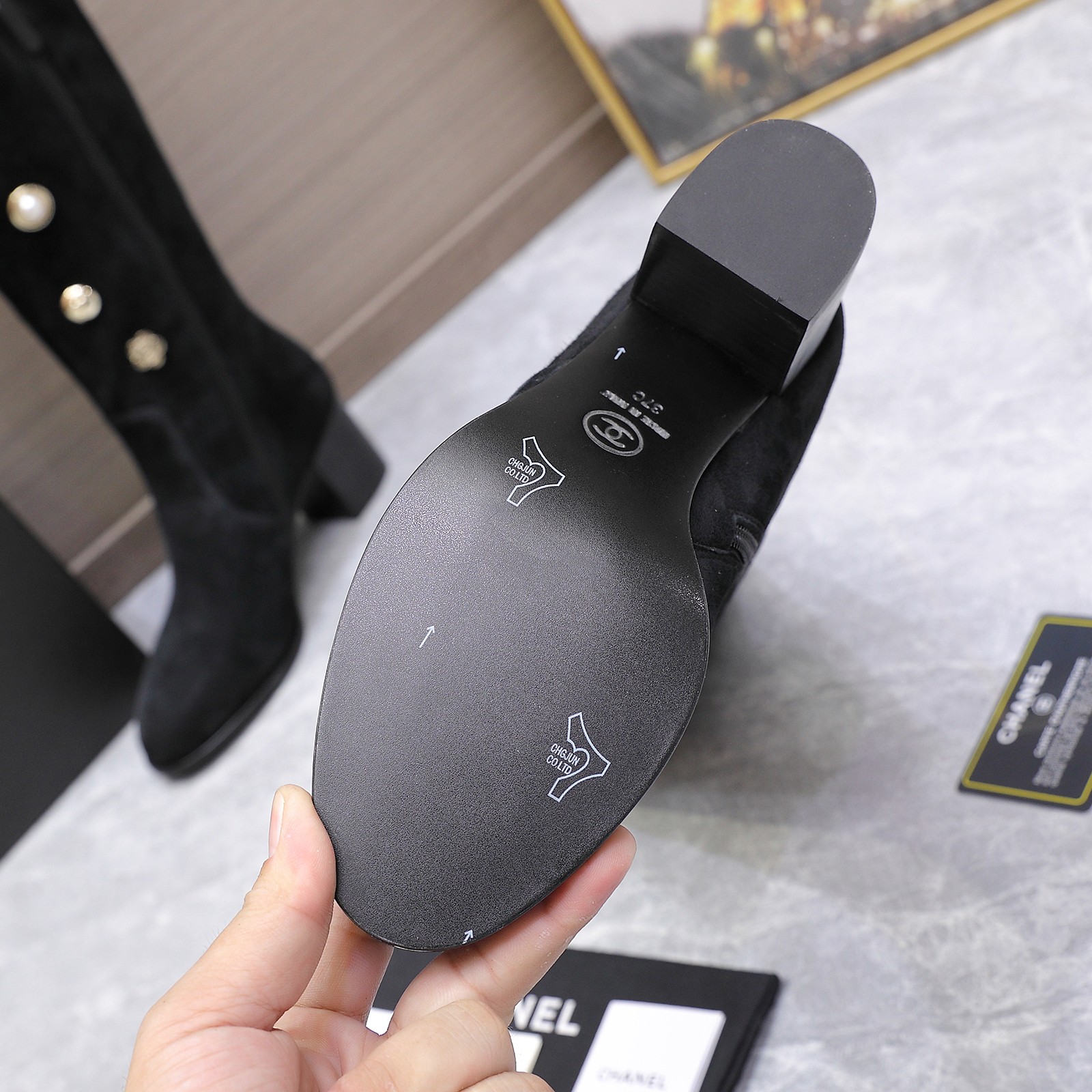 这款鞋子是AAAAA 1:1 质量 (非常棒). 使用了和原版一模一样的材料. 商标部分也保持了和香奈儿/Chanel一样. 图片拍摄是实物鞋子拍摄, 您所收到的实物保证和我们图片一模一样.