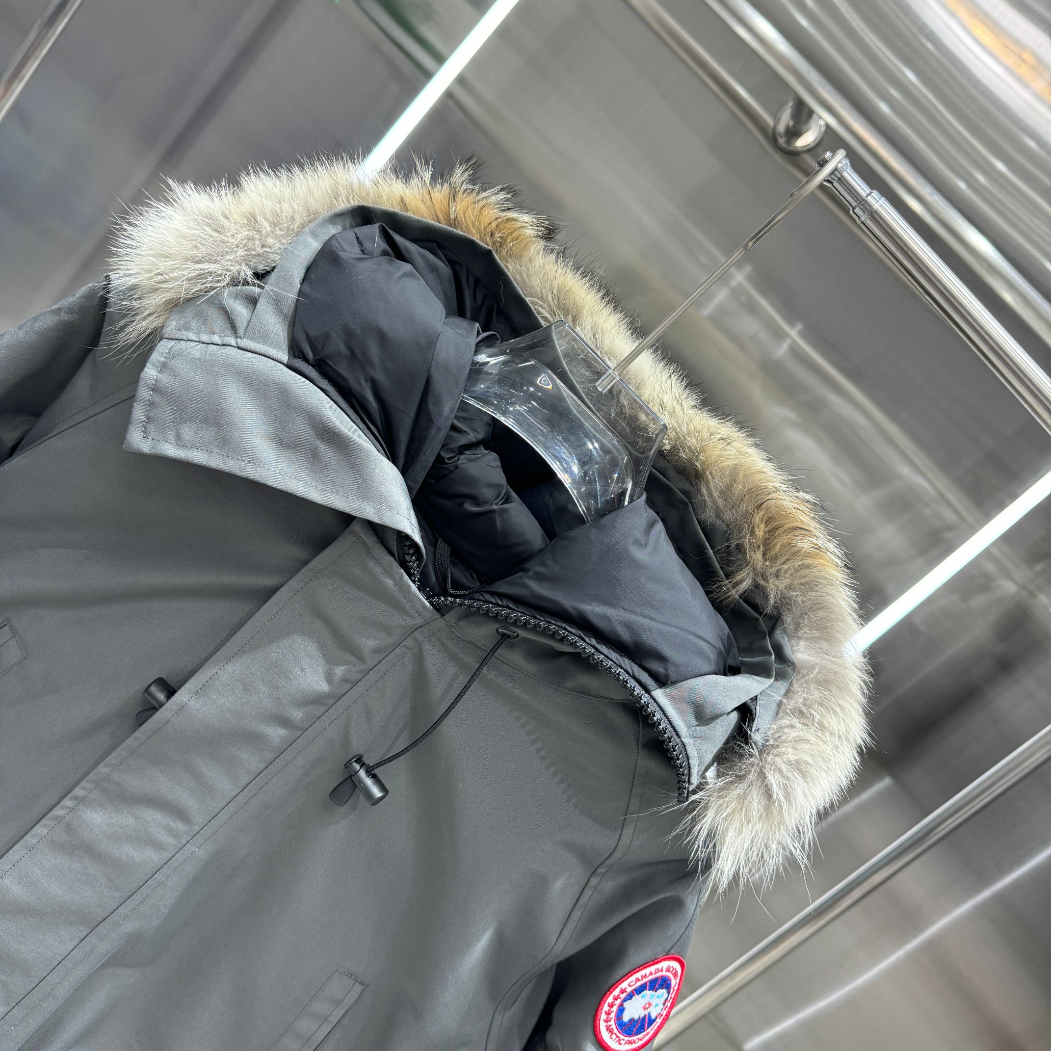这款衣服是AAAAA 1:1 质量 (非常棒). 使用了和原版一模一样的材料. 商标部分也保持了和Canada Goose一样. 图片拍摄是实物衣服拍摄, 您所收到的实物保证和我们图片一模一样.