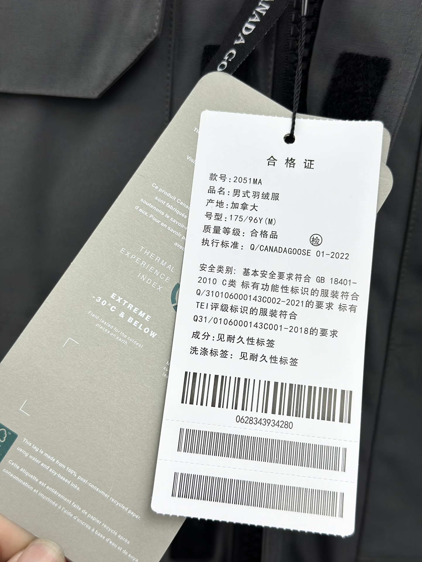 这款衣服是AAAAA 1:1 质量 (非常棒). 使用了和原版一模一样的材料. 商标部分也保持了和Canada Goose一样. 图片拍摄是实物衣服拍摄, 您所收到的实物保证和我们图片一模一样.