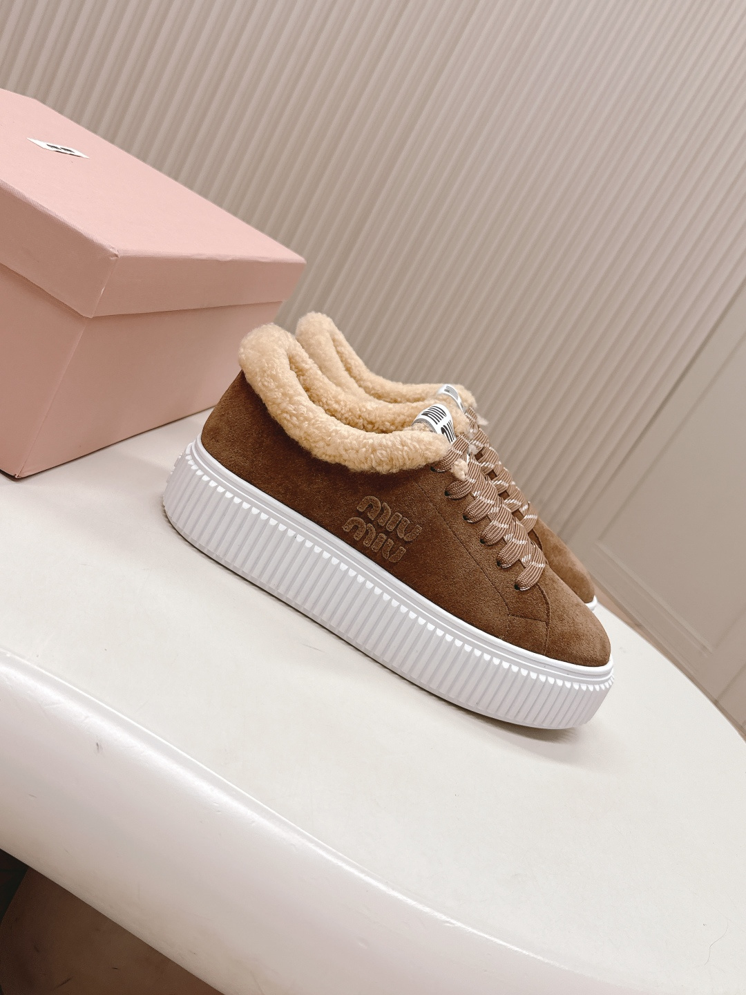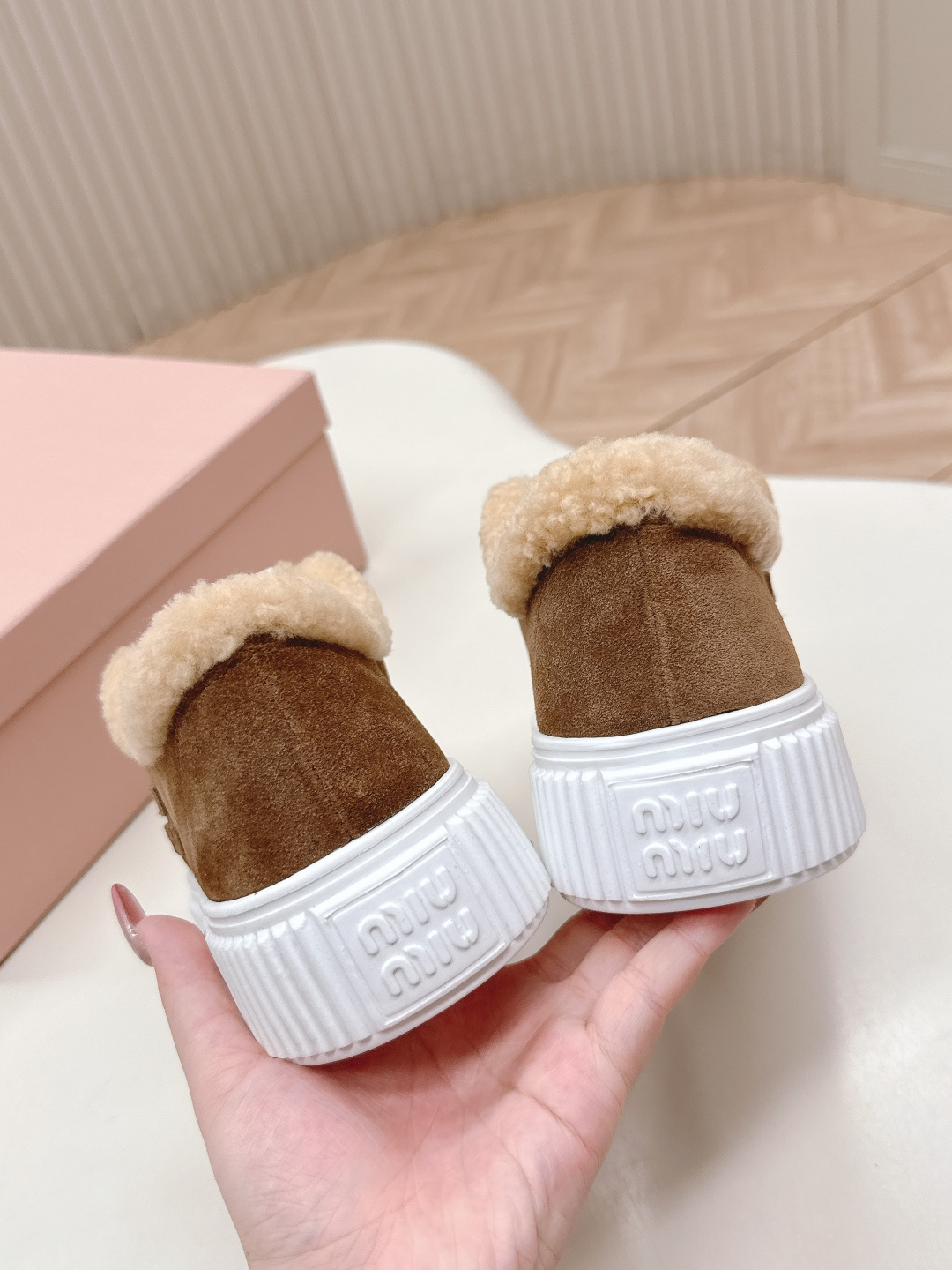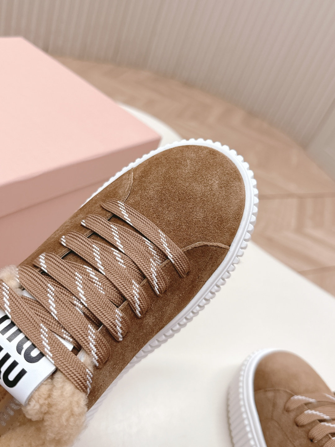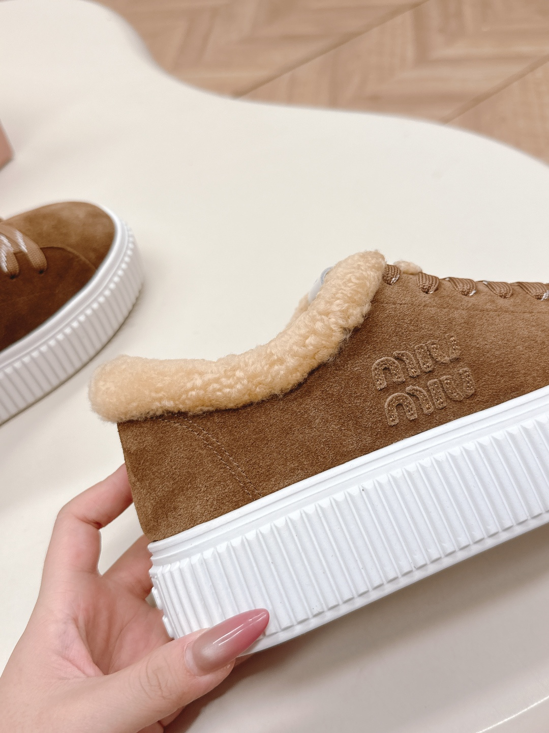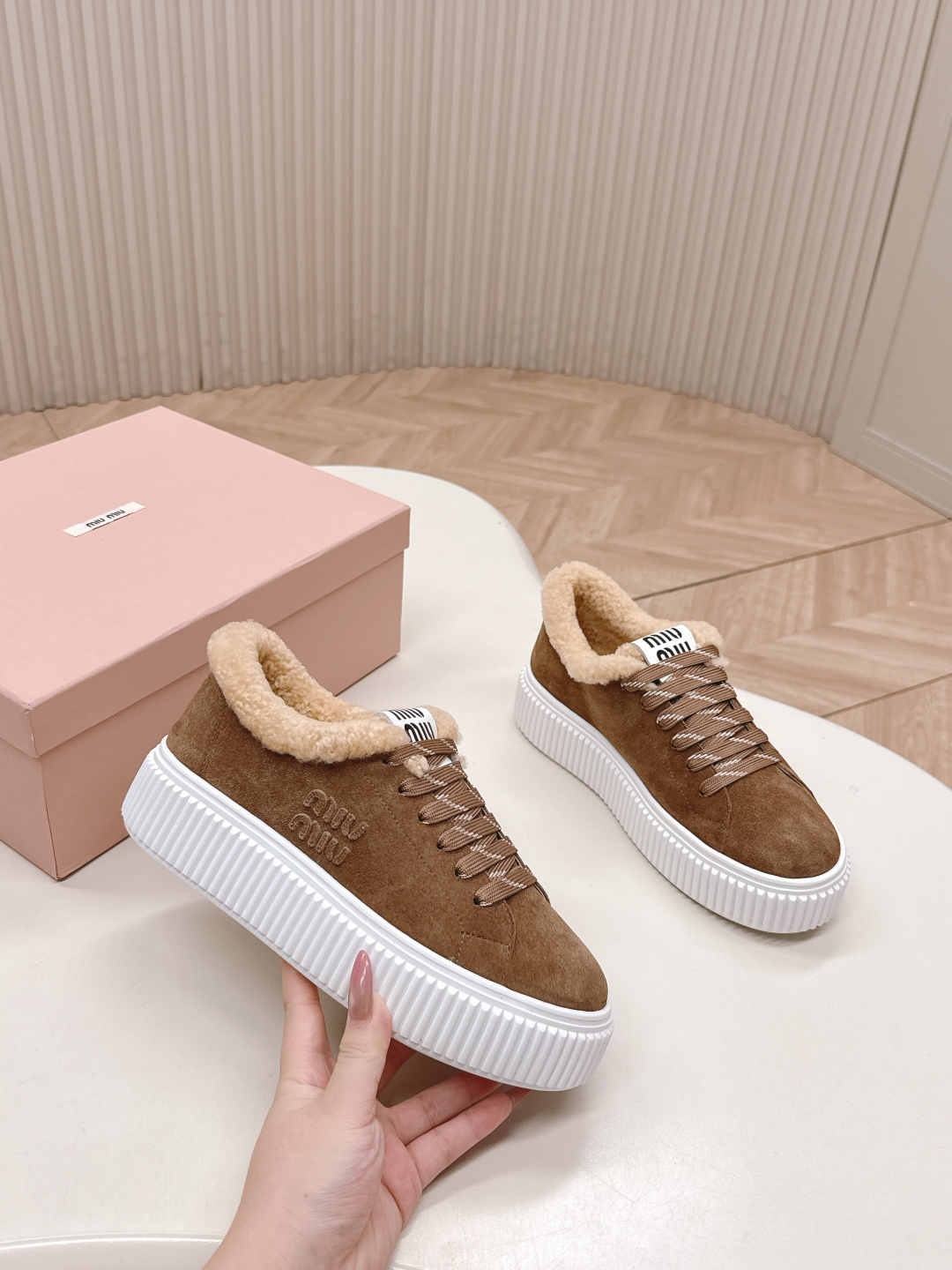 这款鞋子是AAAAA 1:1 质量 (非常棒). 使用了和原版一模一样的材料. 商标部分也保持了和缪缪/Miu Miu一样. 图片拍摄是实物鞋子拍摄, 您所收到的实物保证和我们图片一模一样.