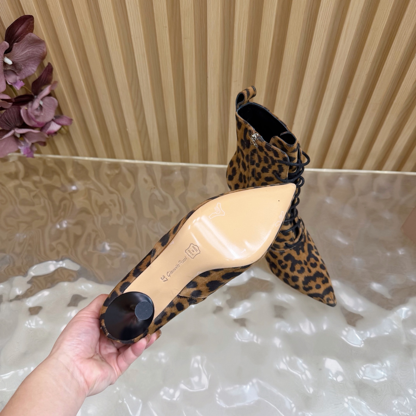 这款鞋子是AAAAA 1:1 质量 (非常棒). 使用了和原版一模一样的材料. 商标部分也保持了和Gianvito Rossi一样. 图片拍摄是实物鞋子拍摄, 您所收到的实物保证和我们图片一模一样.