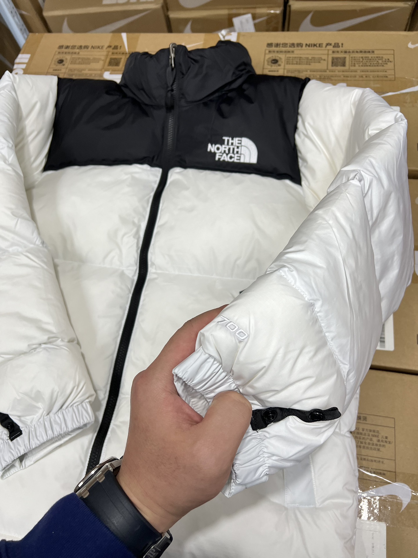 这款衣服是AAAAA 1:1 质量 (非常棒). 使用了和原版一模一样的材料. 商标部分也保持了和The North Face一样. 图片拍摄是实物衣服拍摄, 您所收到的实物保证和我们图片一模一样.