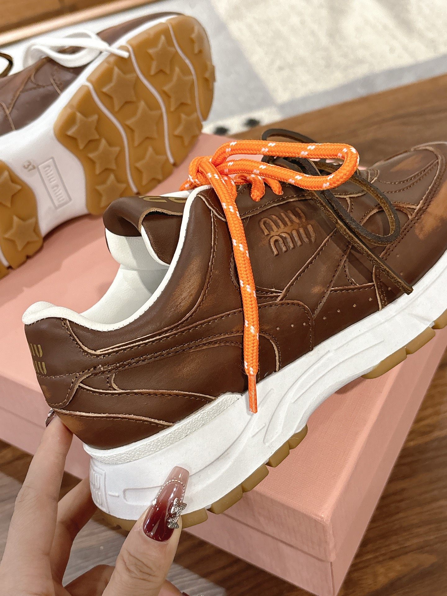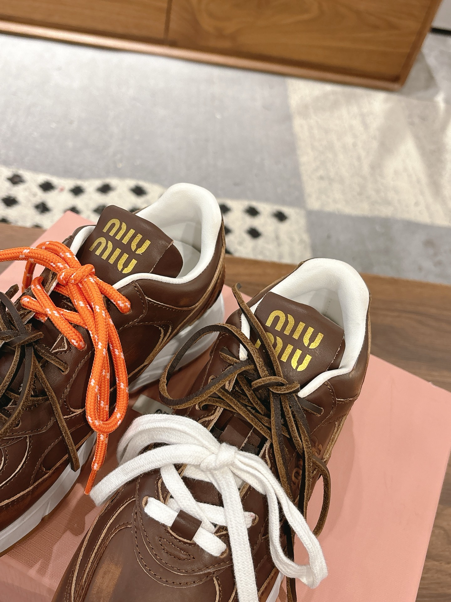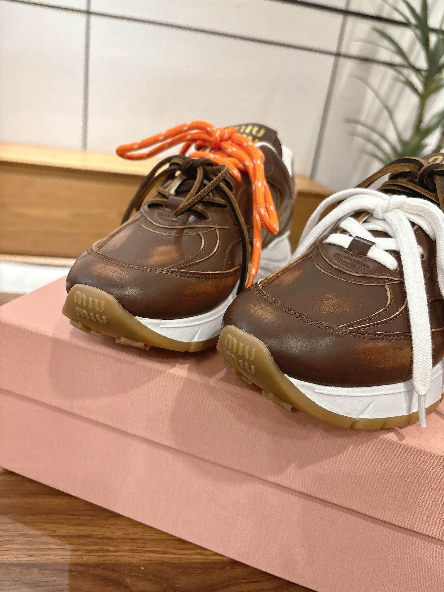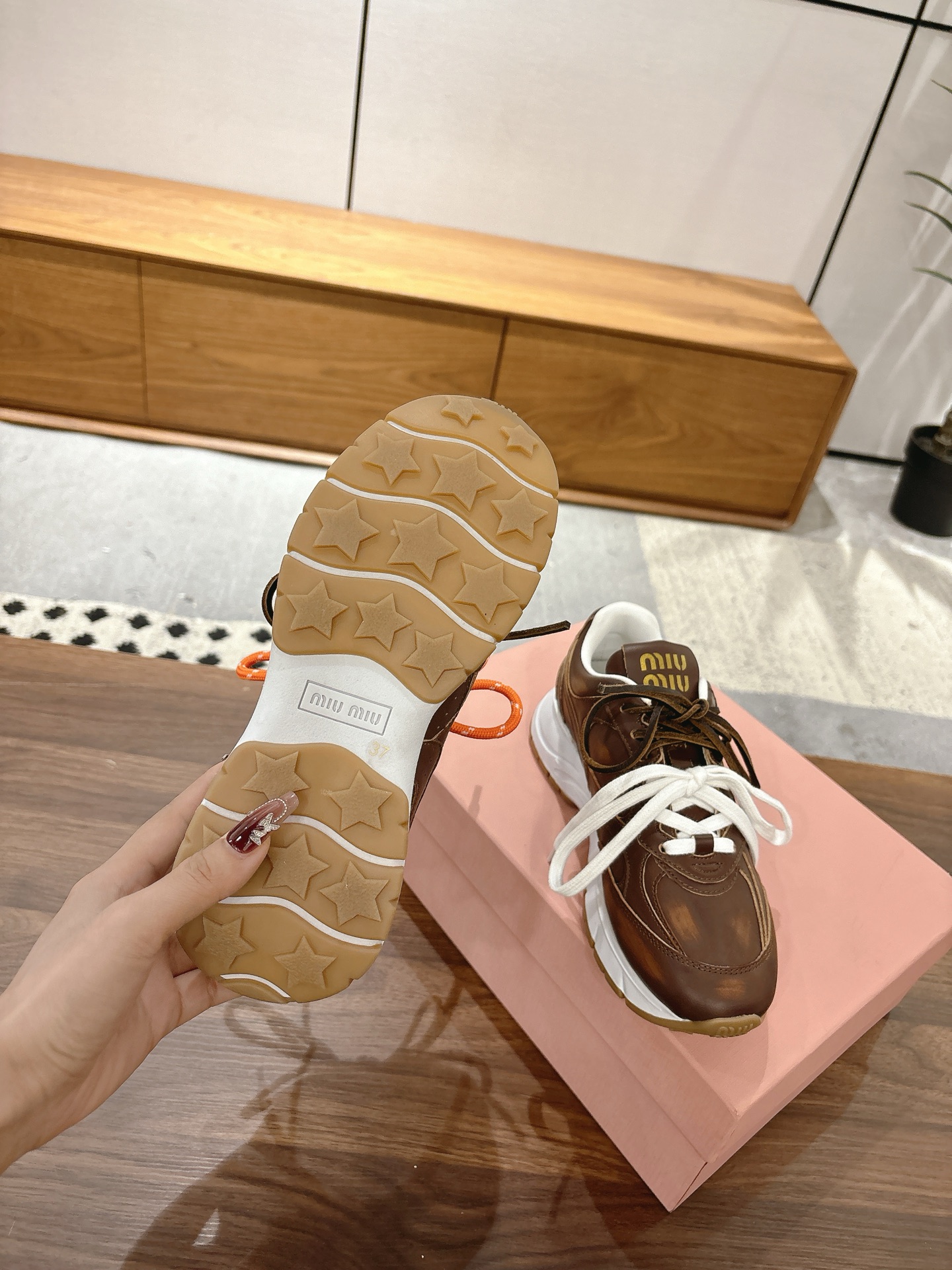 这款鞋子是AAAAA 1:1 质量 (非常棒). 使用了和原版一模一样的材料. 商标部分也保持了和缪缪/Miu Miu一样. 图片拍摄是实物鞋子拍摄, 您所收到的实物保证和我们图片一模一样.