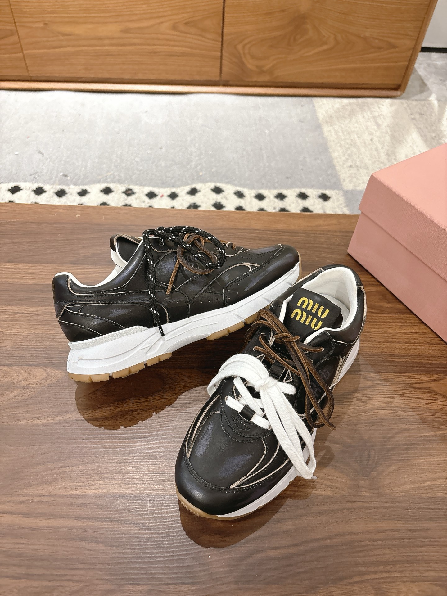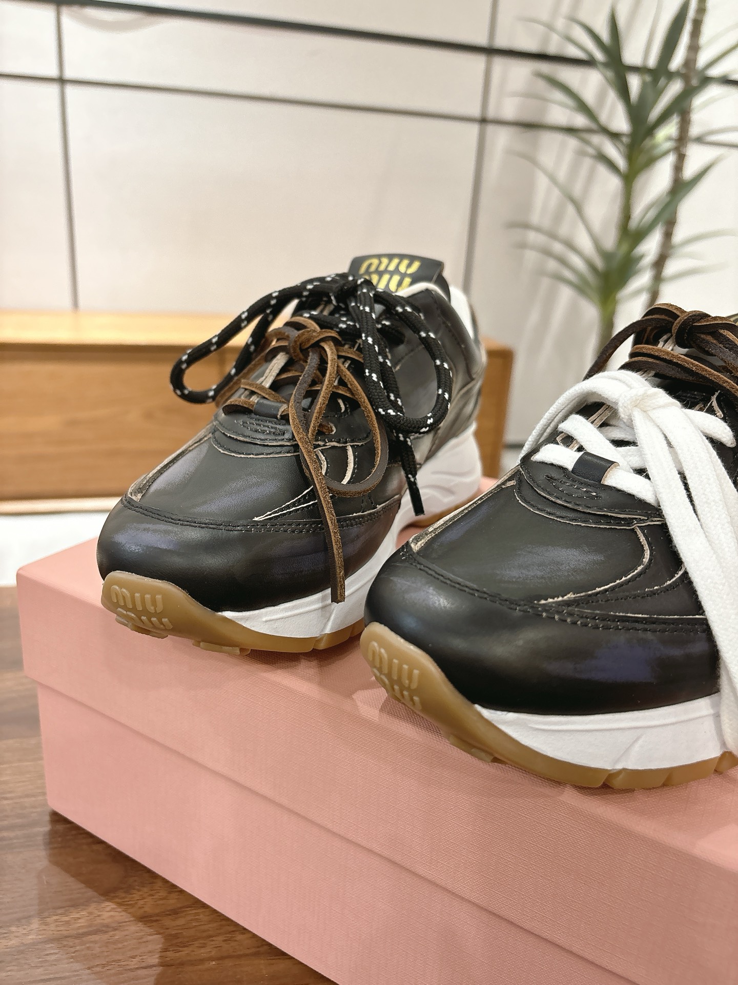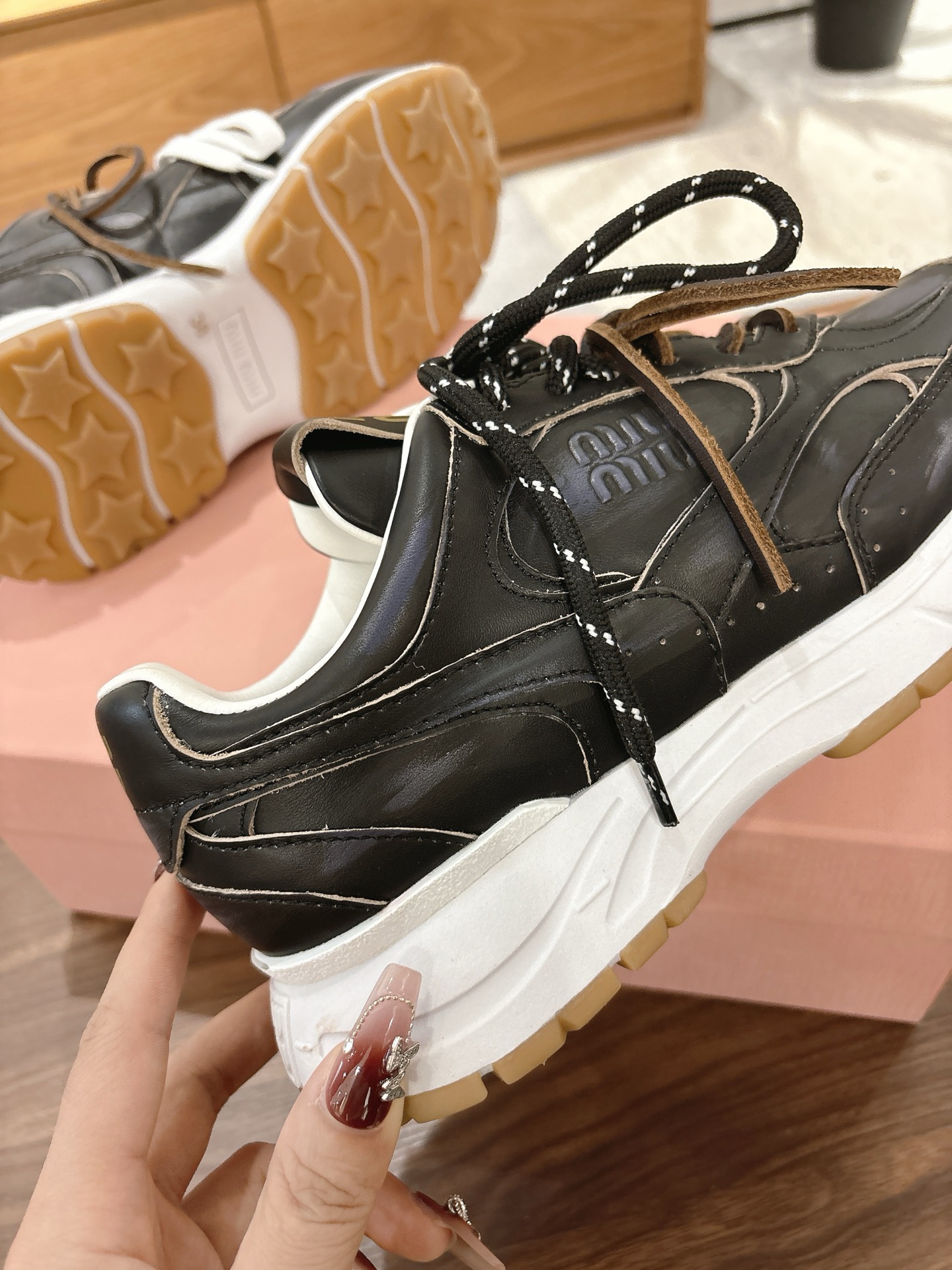 这款鞋子是AAAAA 1:1 质量 (非常棒). 使用了和原版一模一样的材料. 商标部分也保持了和缪缪/Miu Miu一样. 图片拍摄是实物鞋子拍摄, 您所收到的实物保证和我们图片一模一样.