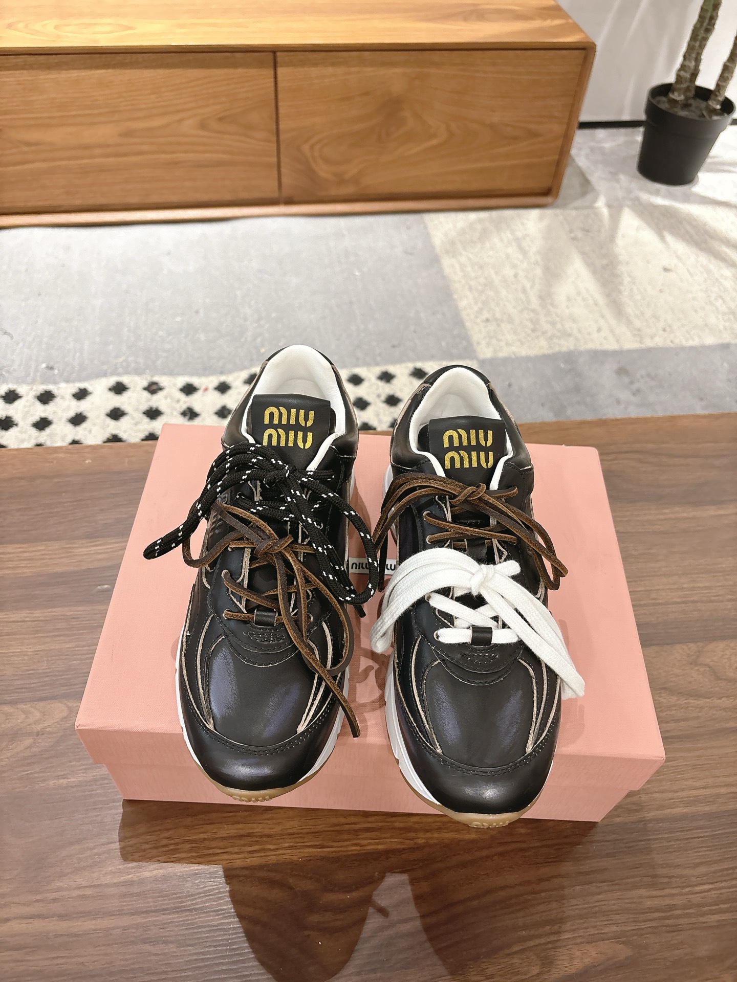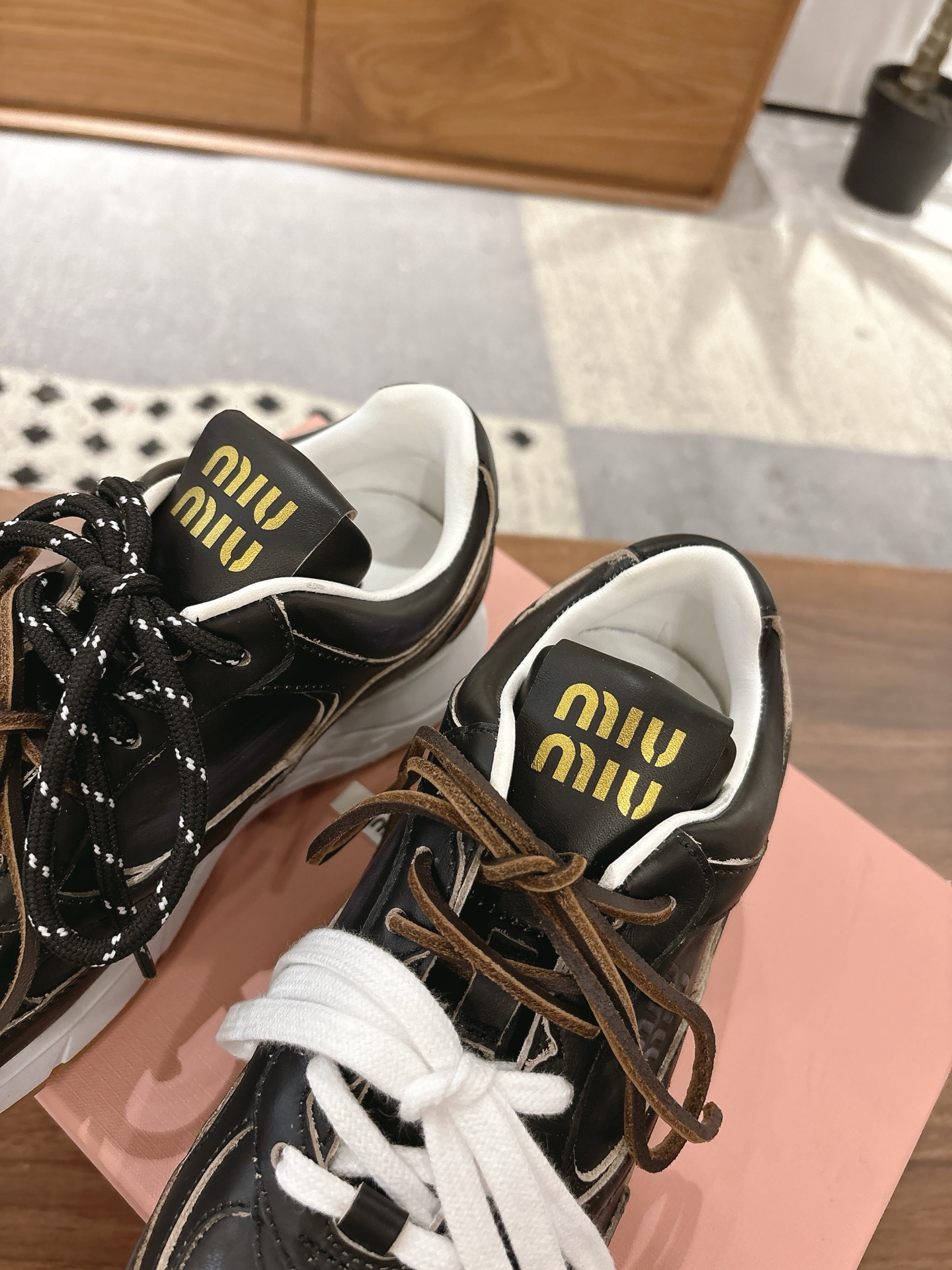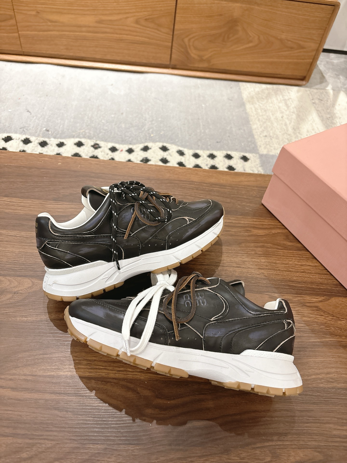 这款鞋子是AAAAA 1:1 质量 (非常棒). 使用了和原版一模一样的材料. 商标部分也保持了和缪缪/Miu Miu一样. 图片拍摄是实物鞋子拍摄, 您所收到的实物保证和我们图片一模一样.