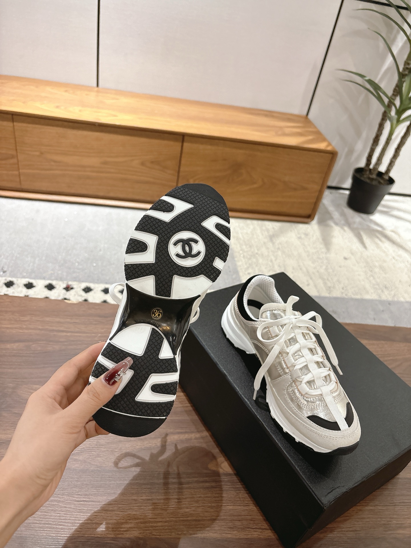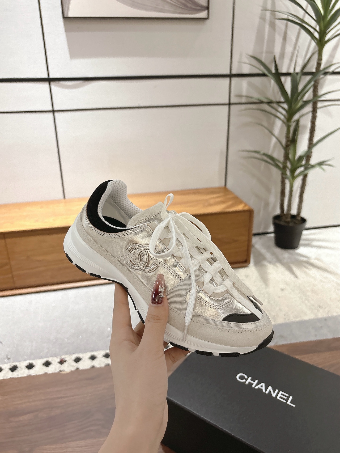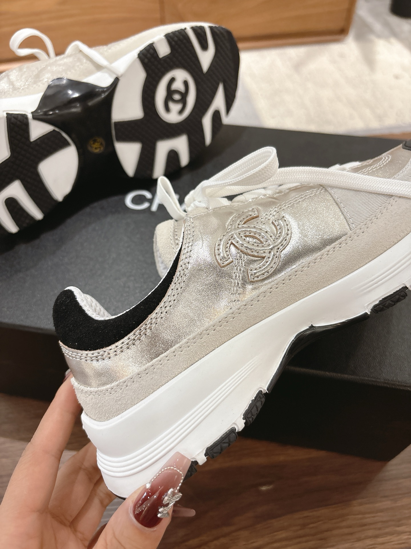 这款鞋子是AAAAA 1:1 质量 (非常棒). 使用了和原版一模一样的材料. 商标部分也保持了和香奈儿/Chanel一样. 图片拍摄是实物鞋子拍摄, 您所收到的实物保证和我们图片一模一样.