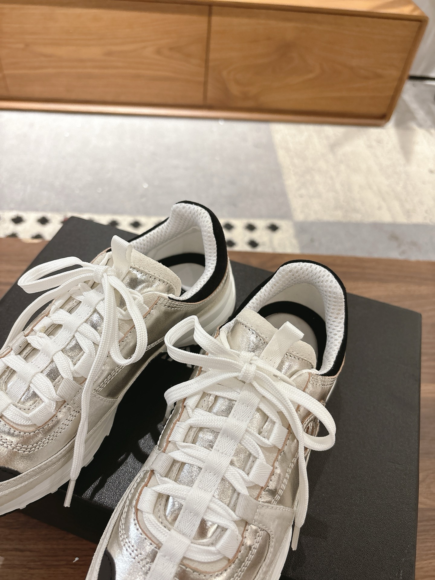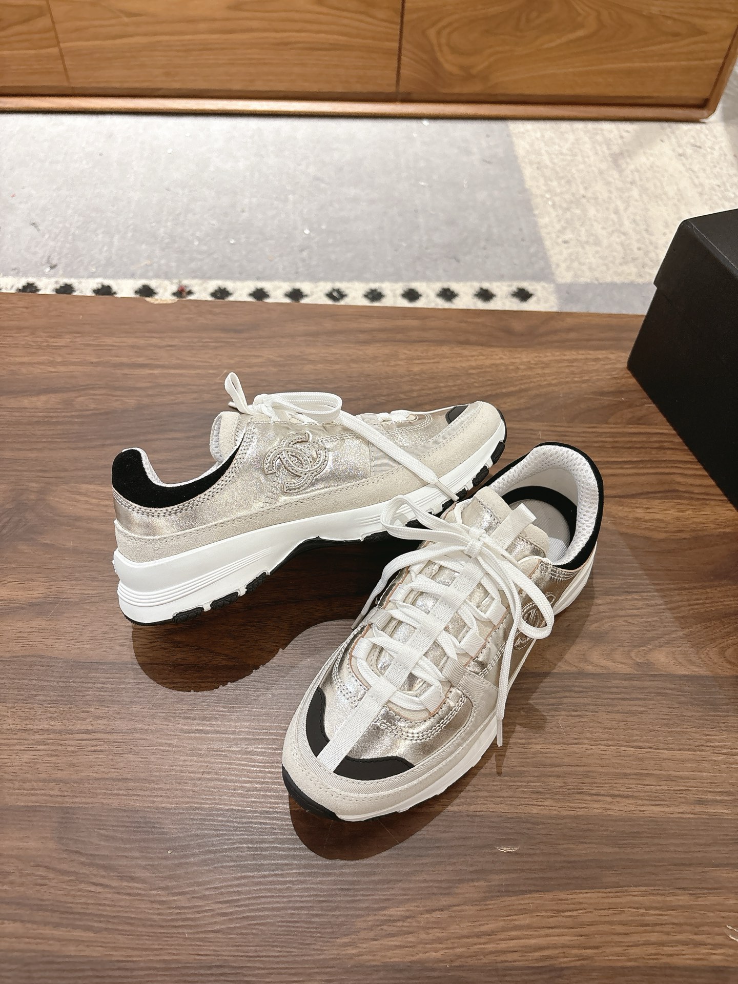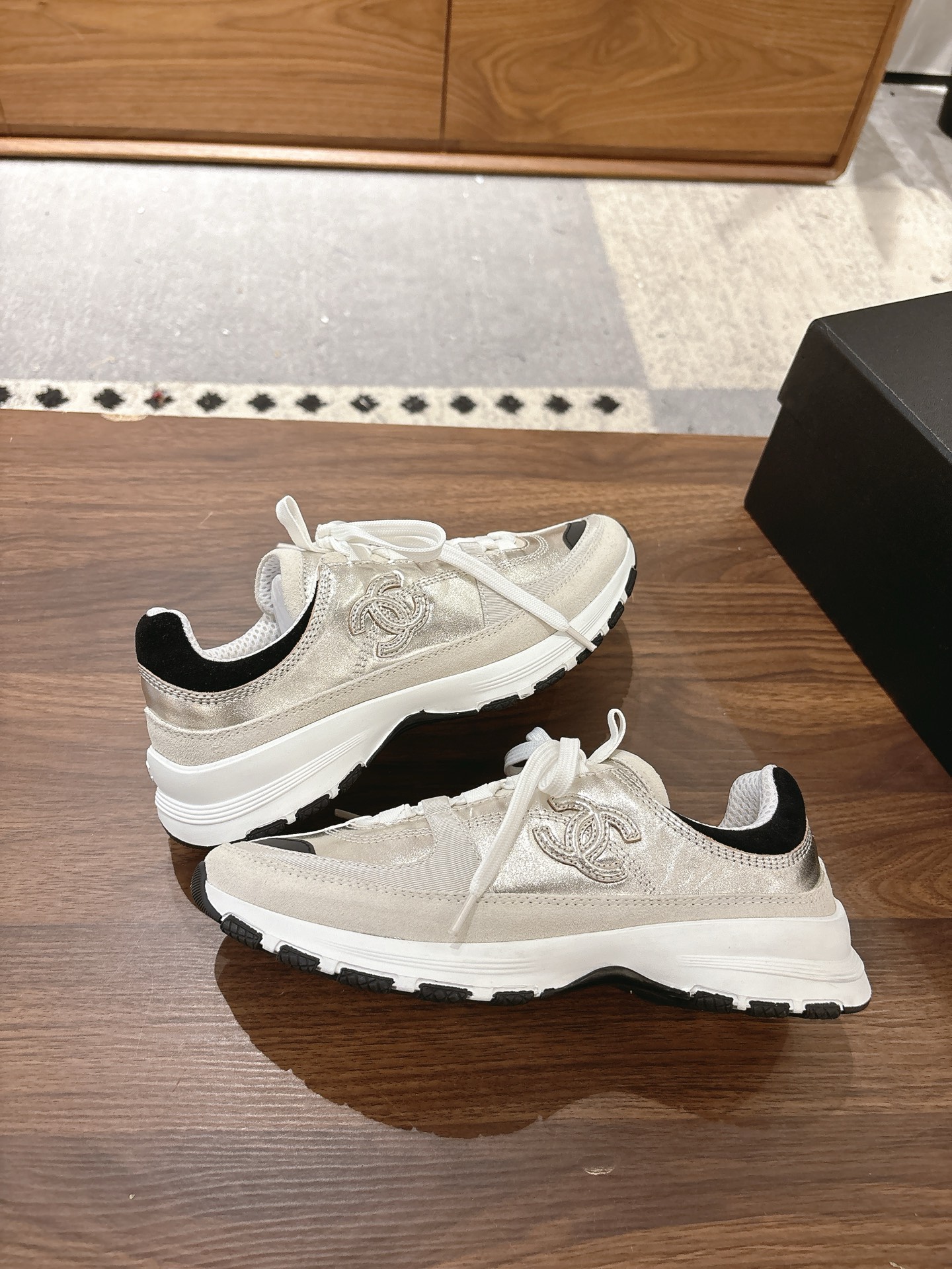 这款鞋子是AAAAA 1:1 质量 (非常棒). 使用了和原版一模一样的材料. 商标部分也保持了和香奈儿/Chanel一样. 图片拍摄是实物鞋子拍摄, 您所收到的实物保证和我们图片一模一样.