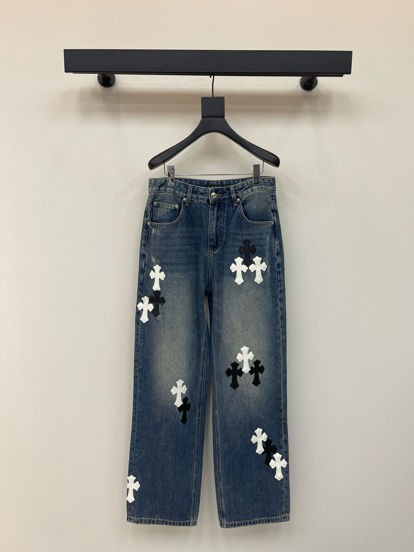 这款衣服是AAAAA 1:1 质量 (非常棒). 使用了和原版一模一样的材料. 商标部分也保持了和克罗心/Chrome Hearts一样. 图片拍摄是实物衣服拍摄, 您所收到的实物保证和我们图片一模一样.