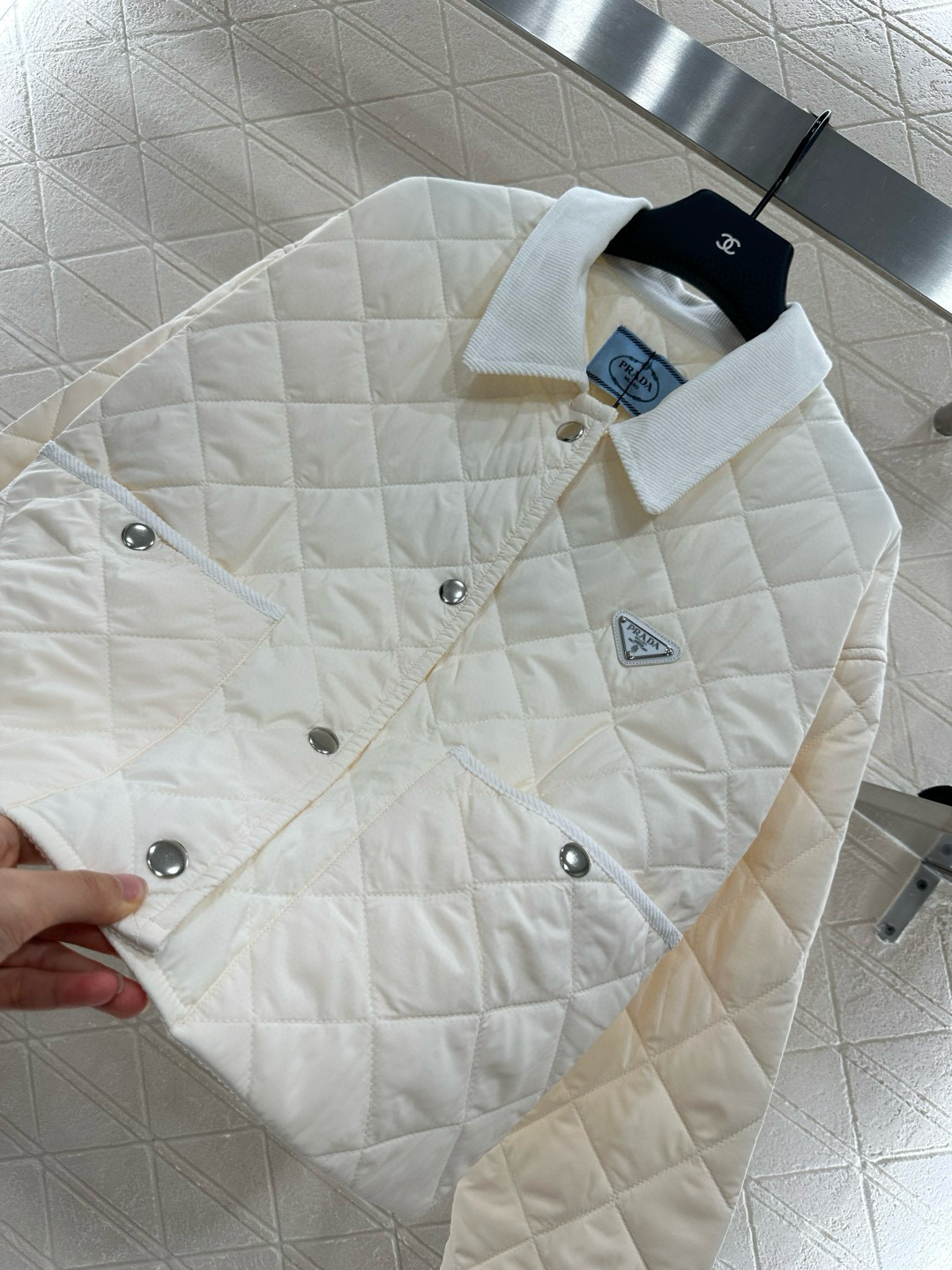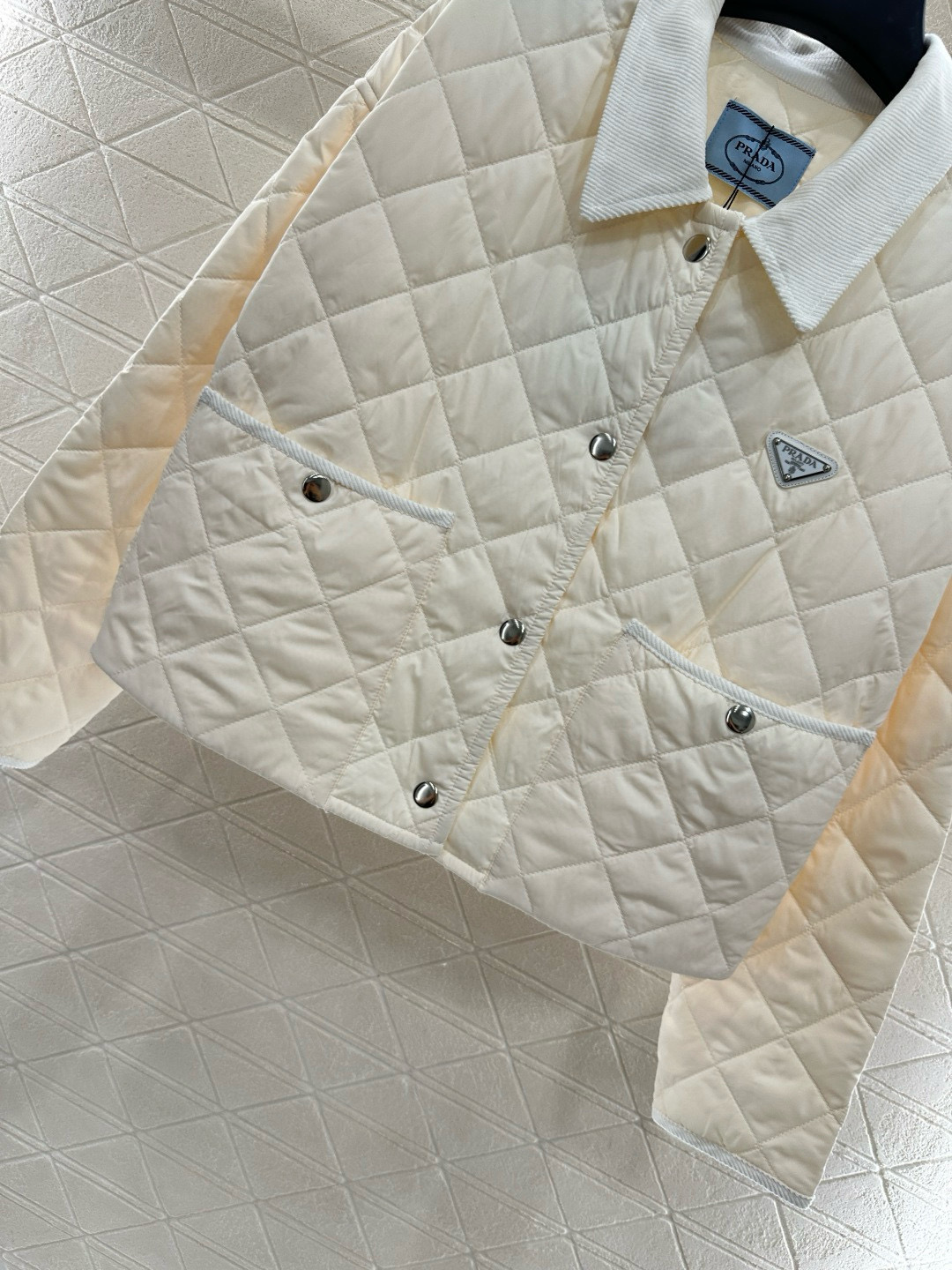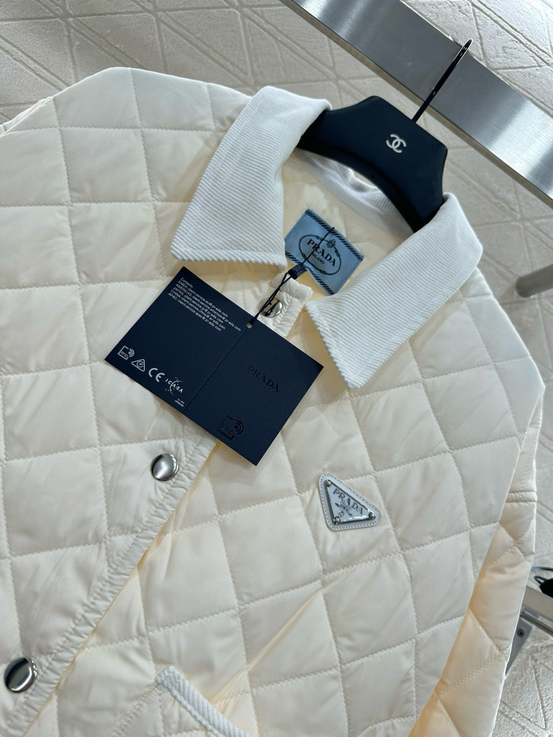 这款衣服是AAAAA 1:1 质量 (非常棒). 使用了和原版一模一样的材料. 商标部分也保持了和普拉达/Prada一样. 图片拍摄是实物衣服拍摄, 您所收到的实物保证和我们图片一模一样.