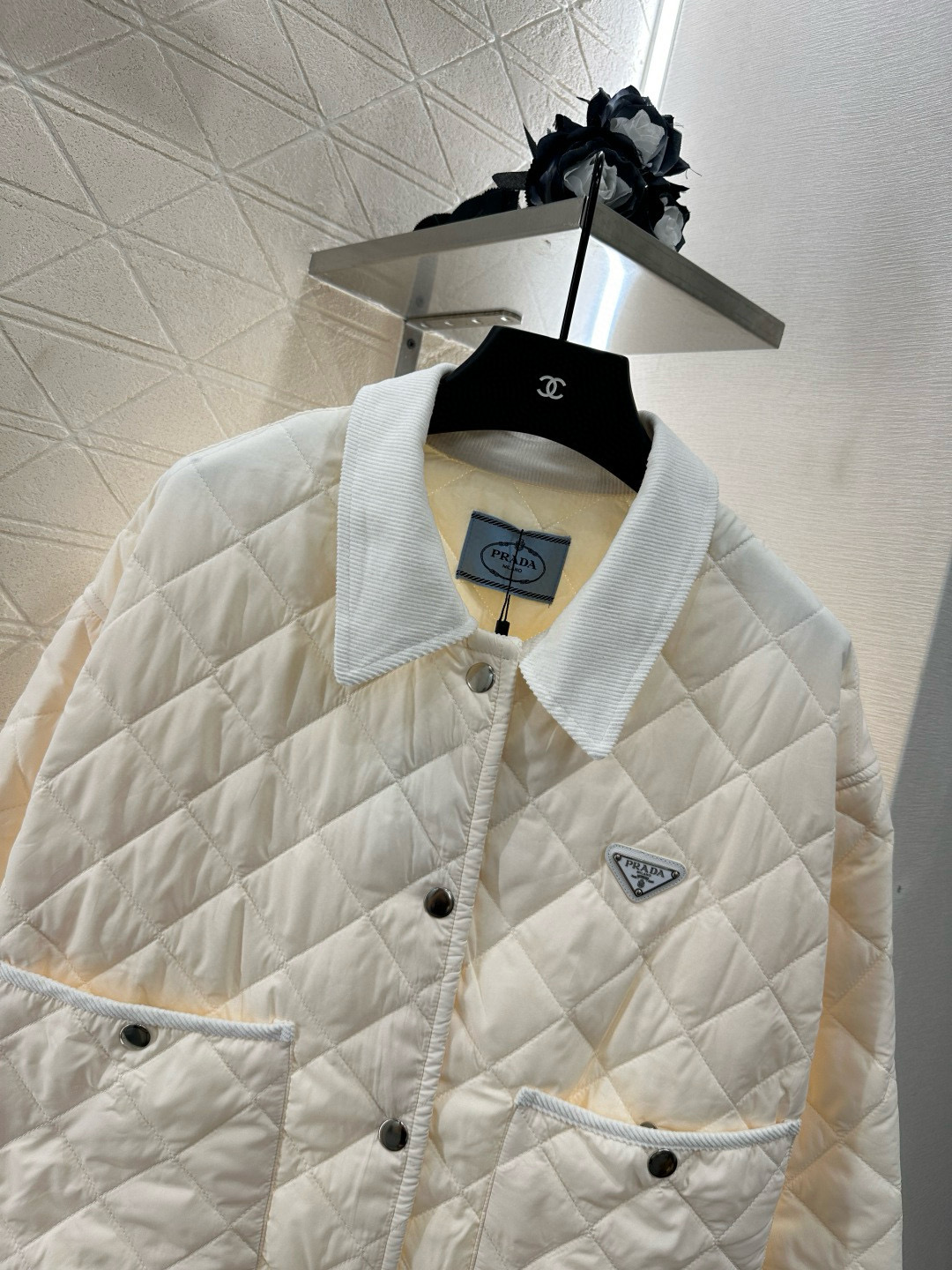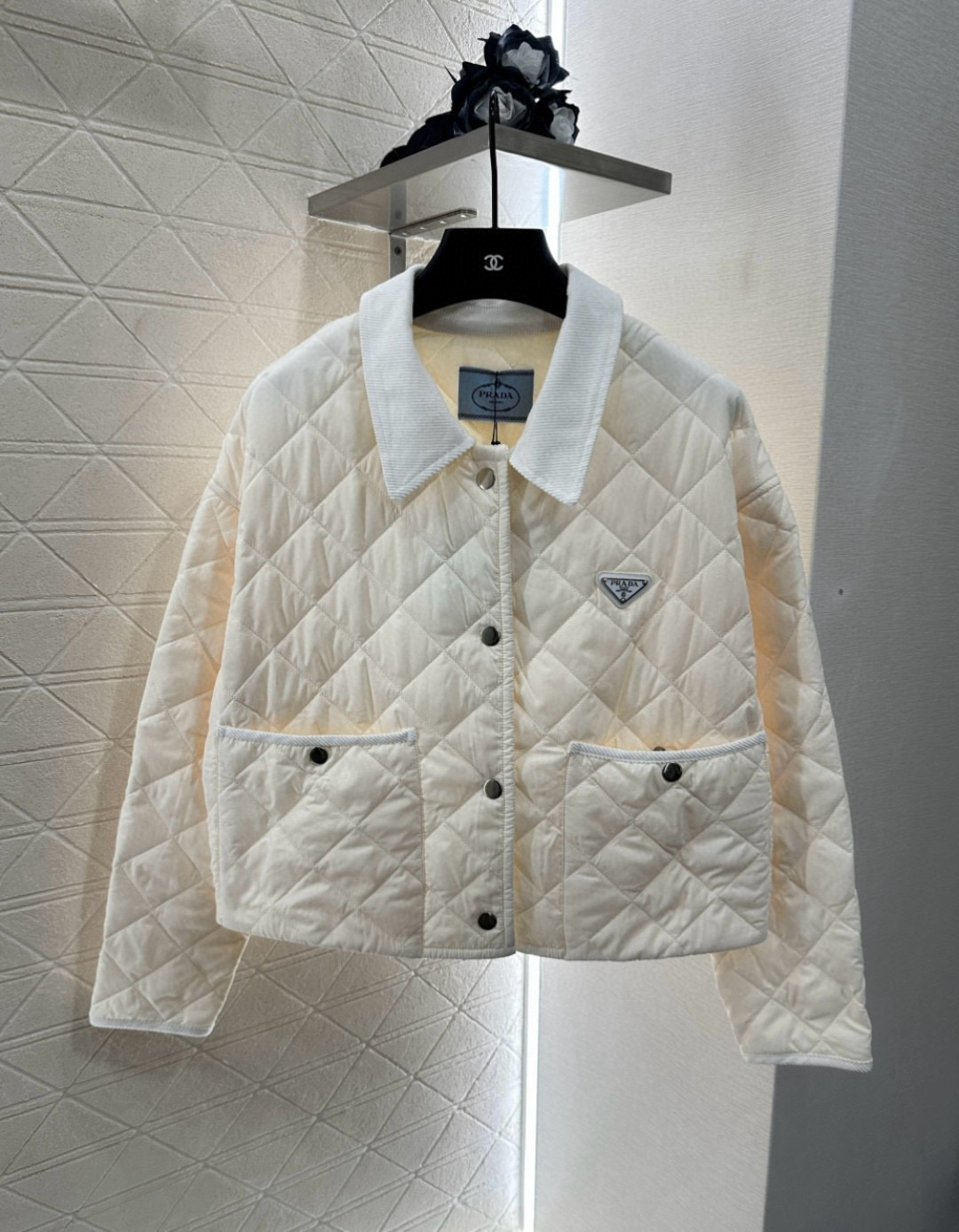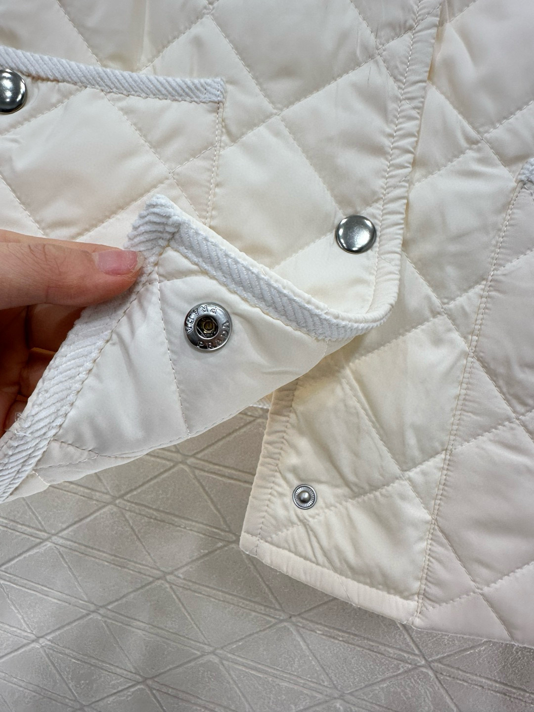这款衣服是AAAAA 1:1 质量 (非常棒). 使用了和原版一模一样的材料. 商标部分也保持了和普拉达/Prada一样. 图片拍摄是实物衣服拍摄, 您所收到的实物保证和我们图片一模一样.
