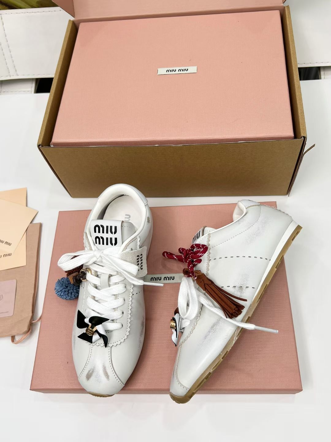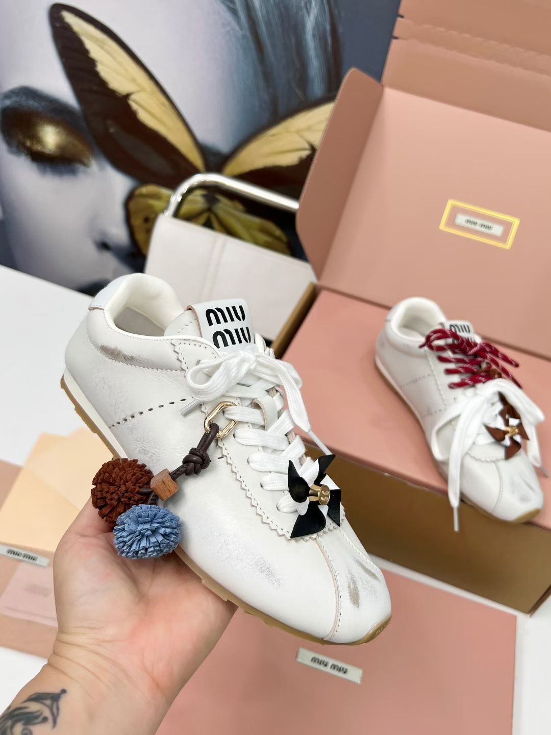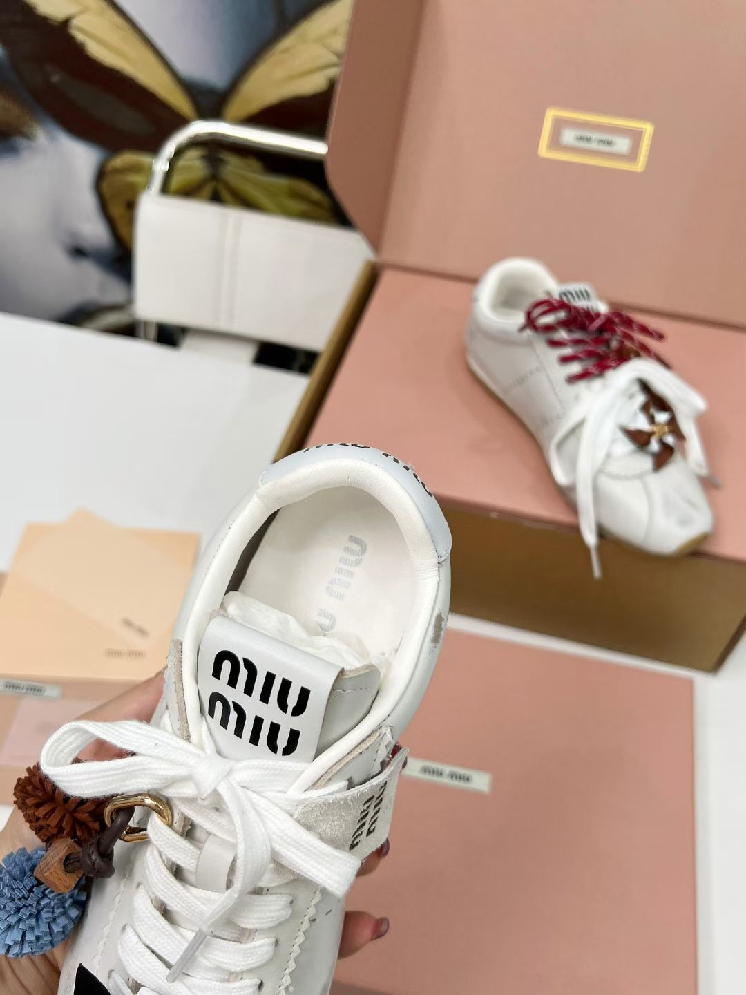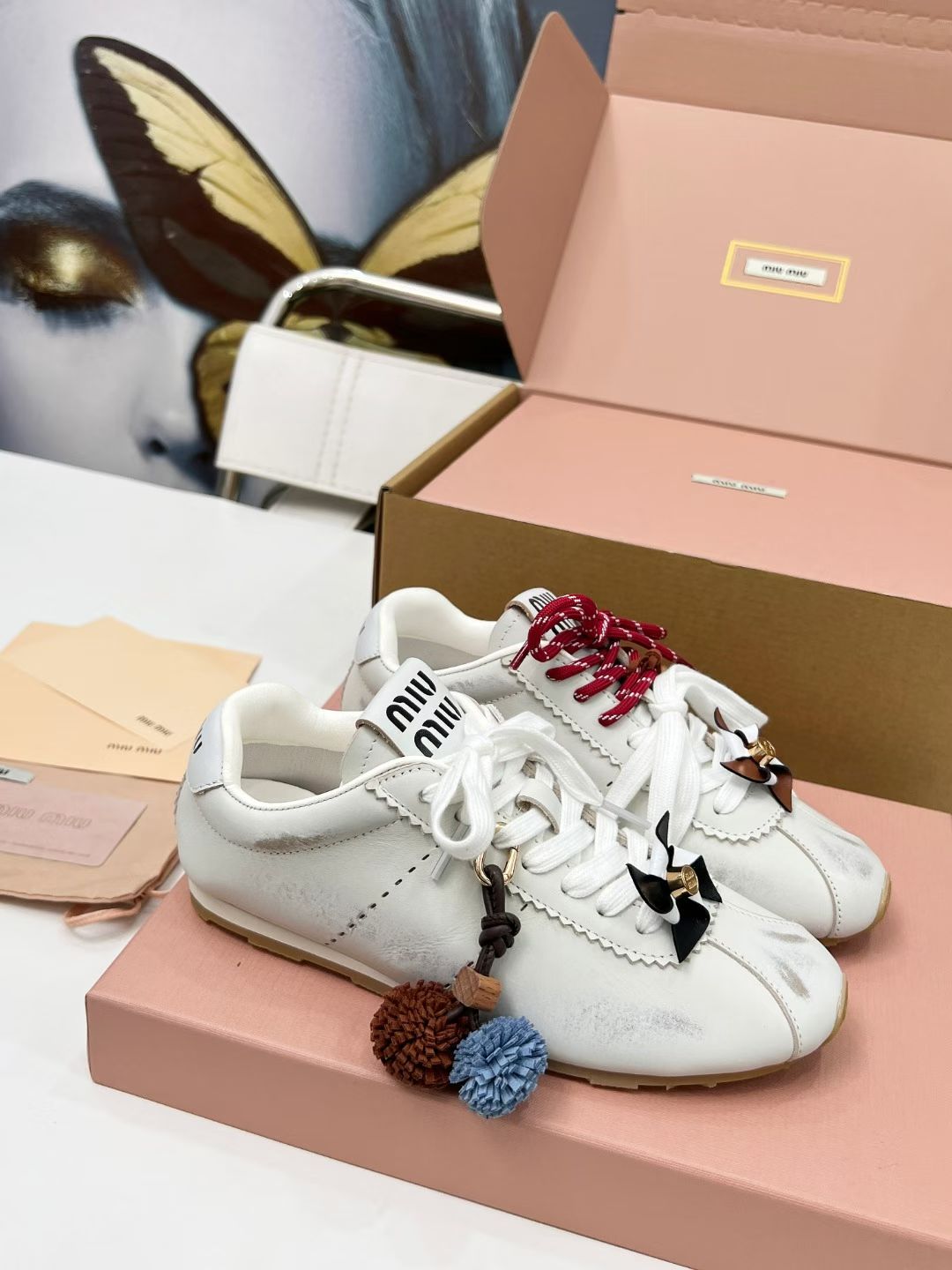 这款鞋子是AAAAA 1:1 质量 (非常棒). 使用了和原版一模一样的材料. 商标部分也保持了和缪缪/Miu Miu一样. 图片拍摄是实物鞋子拍摄, 您所收到的实物保证和我们图片一模一样.