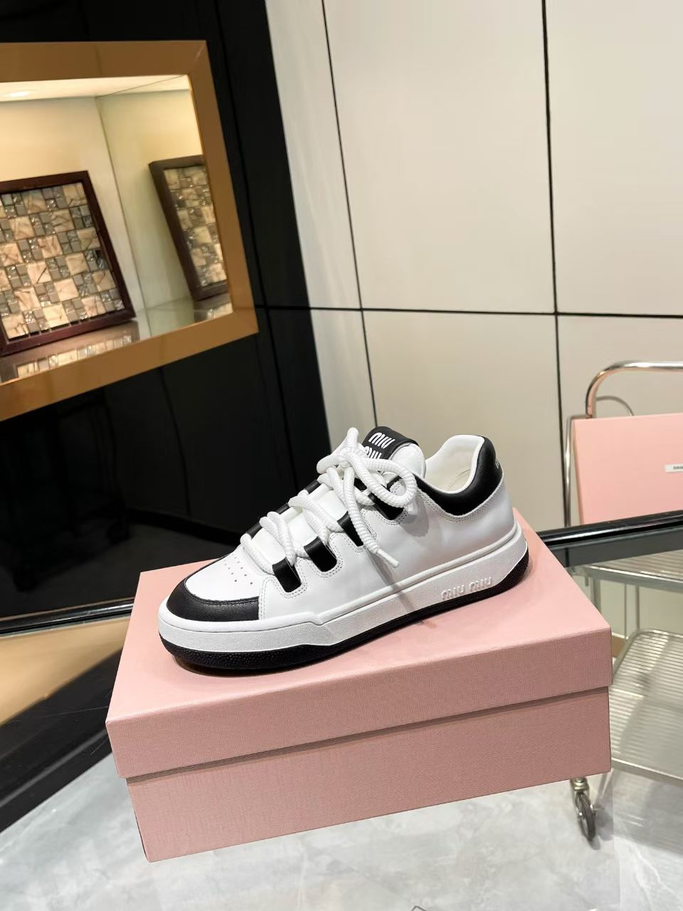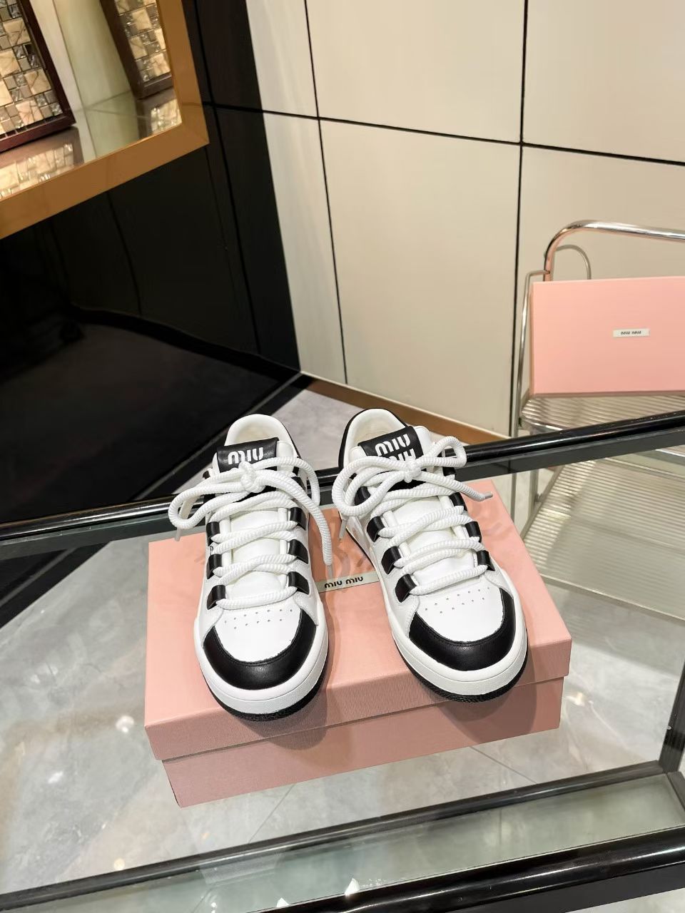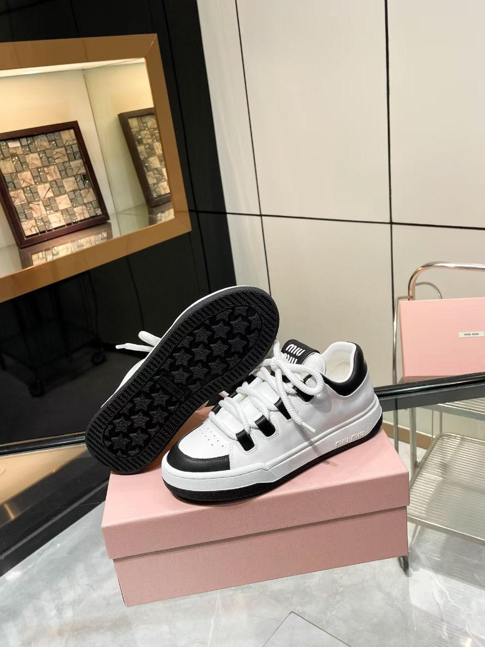 这款鞋子是AAAAA 1:1 质量 (非常棒). 使用了和原版一模一样的材料. 商标部分也保持了和缪缪/Miu Miu一样. 图片拍摄是实物鞋子拍摄, 您所收到的实物保证和我们图片一模一样.