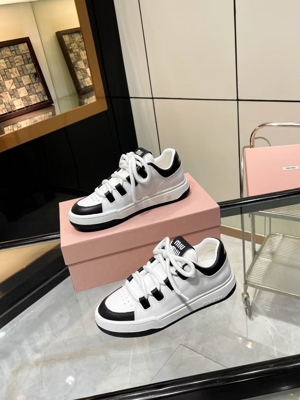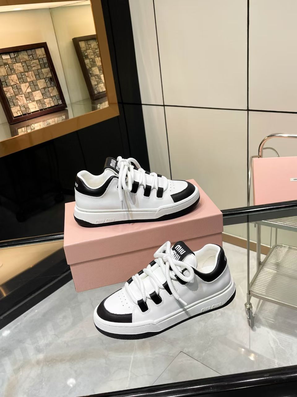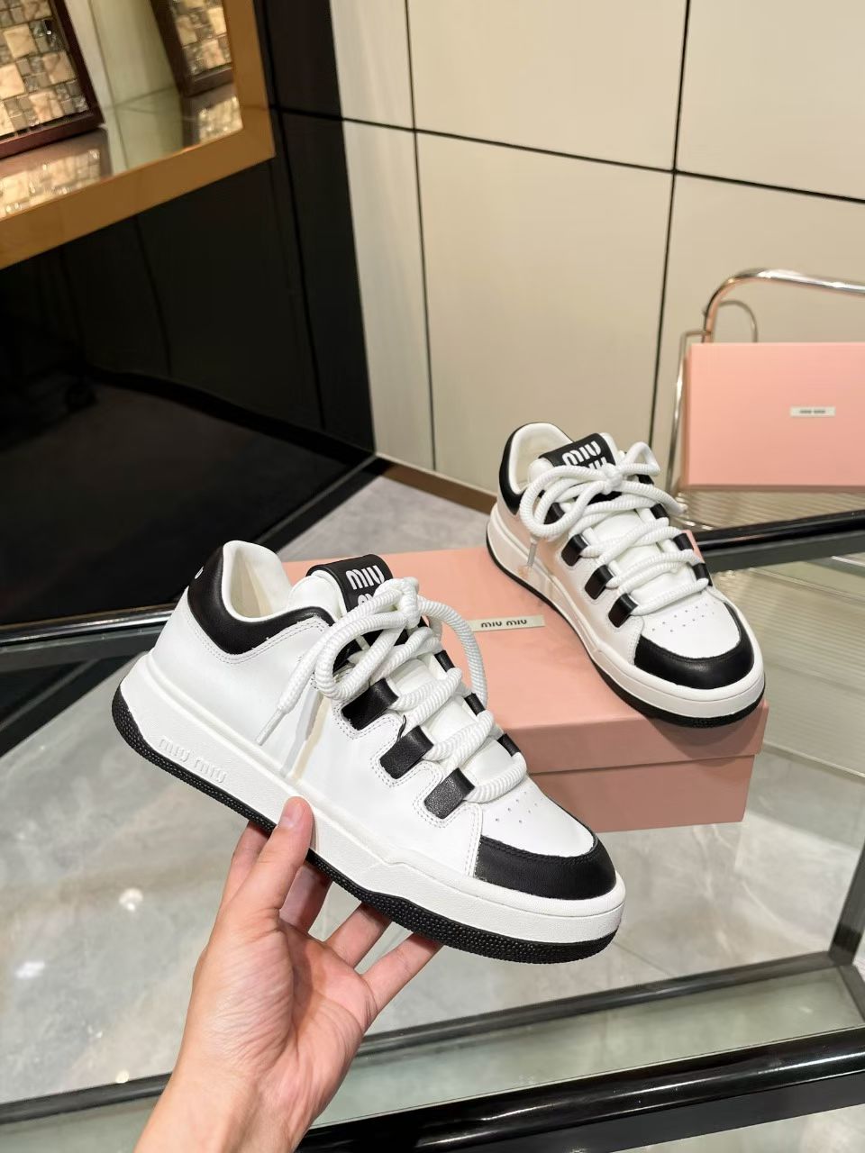 这款鞋子是AAAAA 1:1 质量 (非常棒). 使用了和原版一模一样的材料. 商标部分也保持了和缪缪/Miu Miu一样. 图片拍摄是实物鞋子拍摄, 您所收到的实物保证和我们图片一模一样.