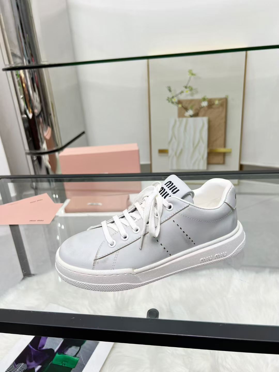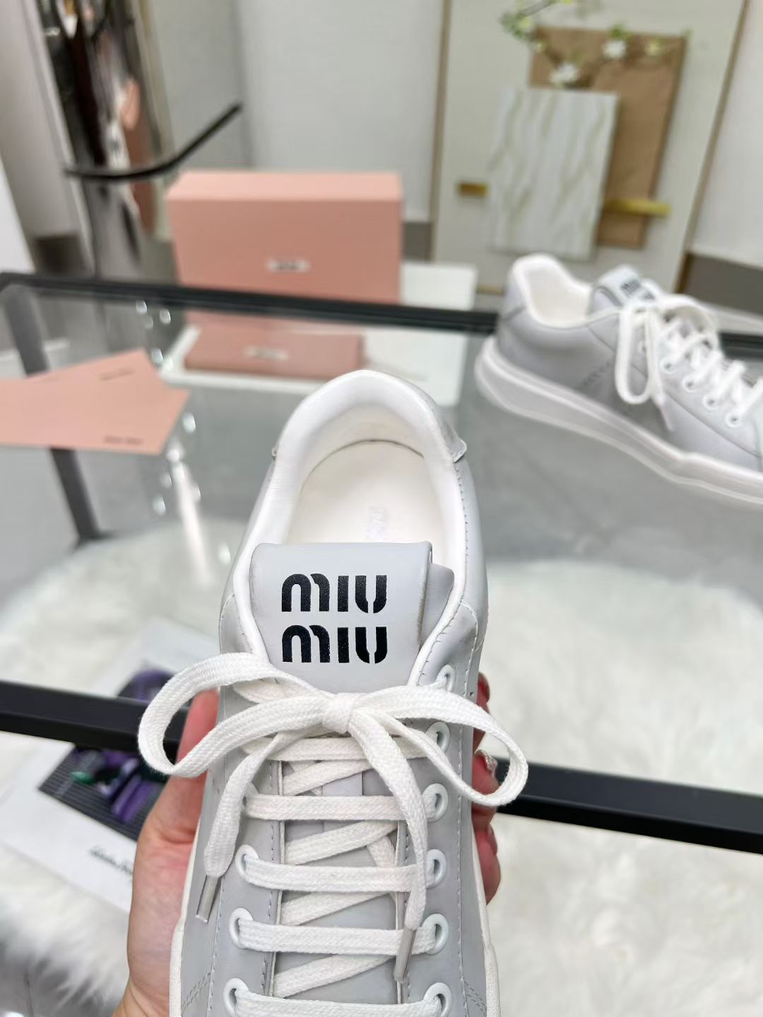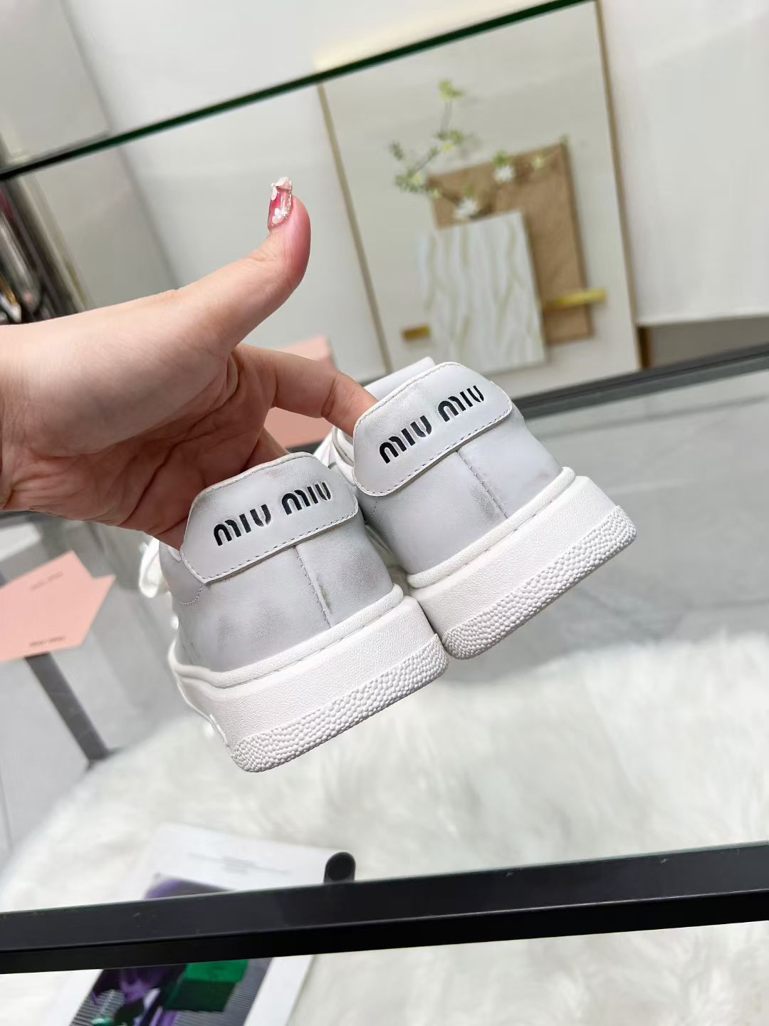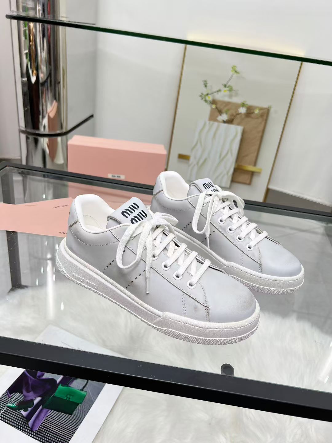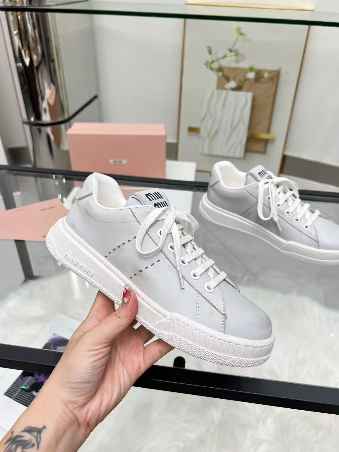 这款鞋子是AAAAA 1:1 质量 (非常棒). 使用了和原版一模一样的材料. 商标部分也保持了和缪缪/Miu Miu一样. 图片拍摄是实物鞋子拍摄, 您所收到的实物保证和我们图片一模一样.