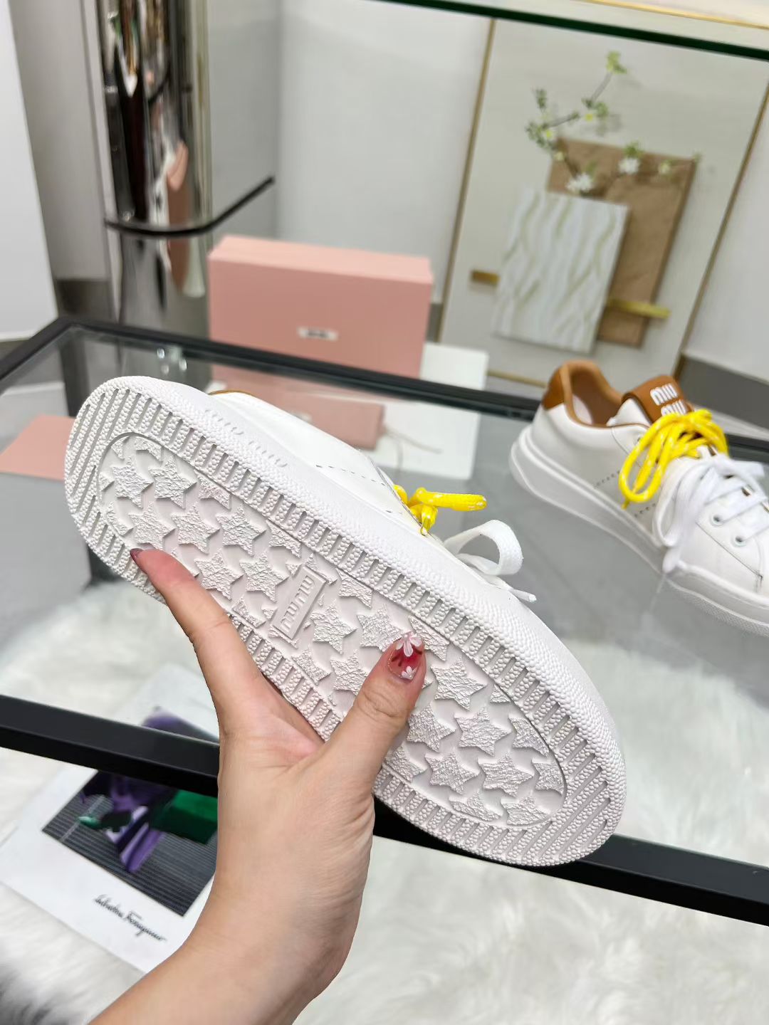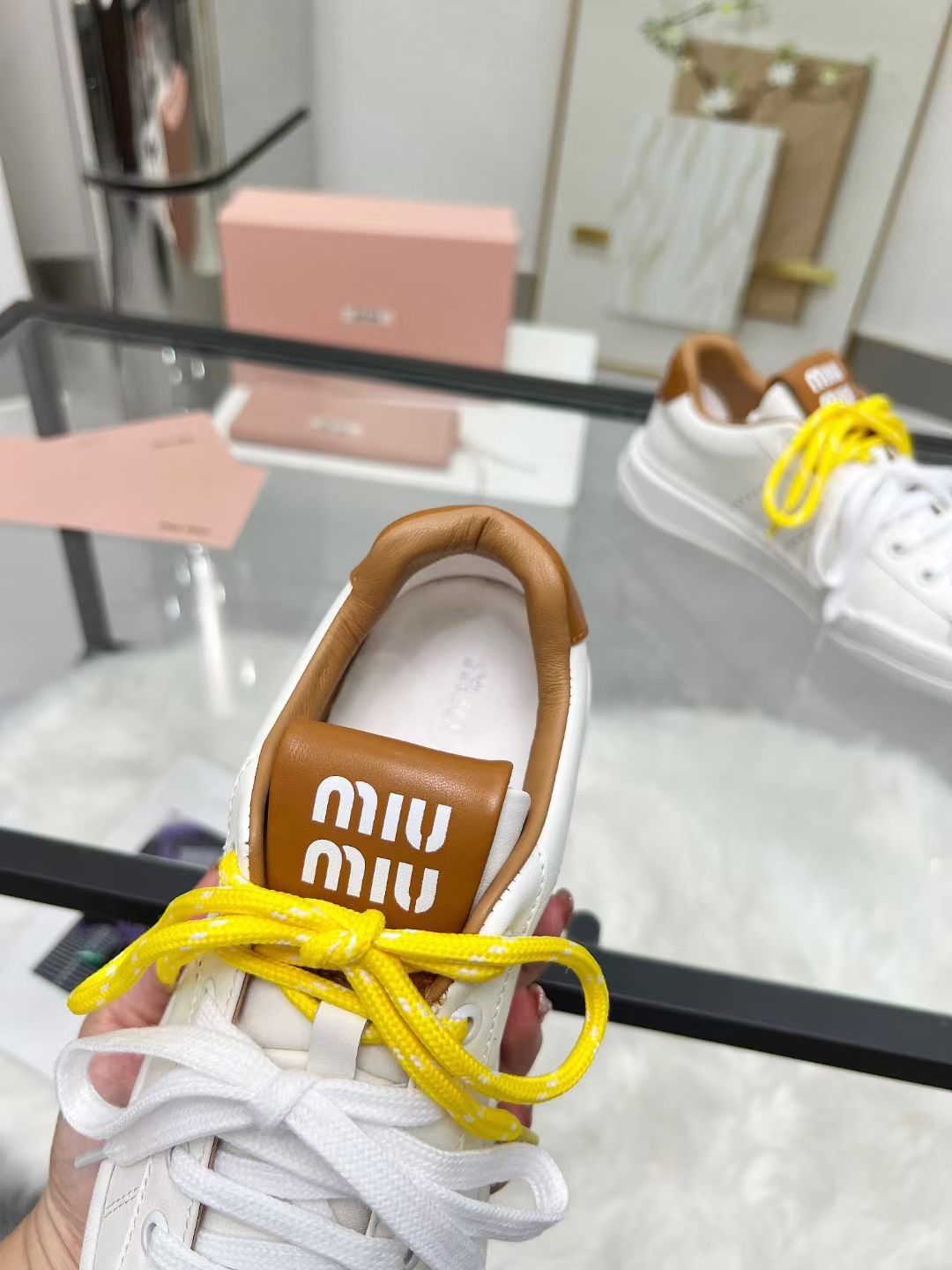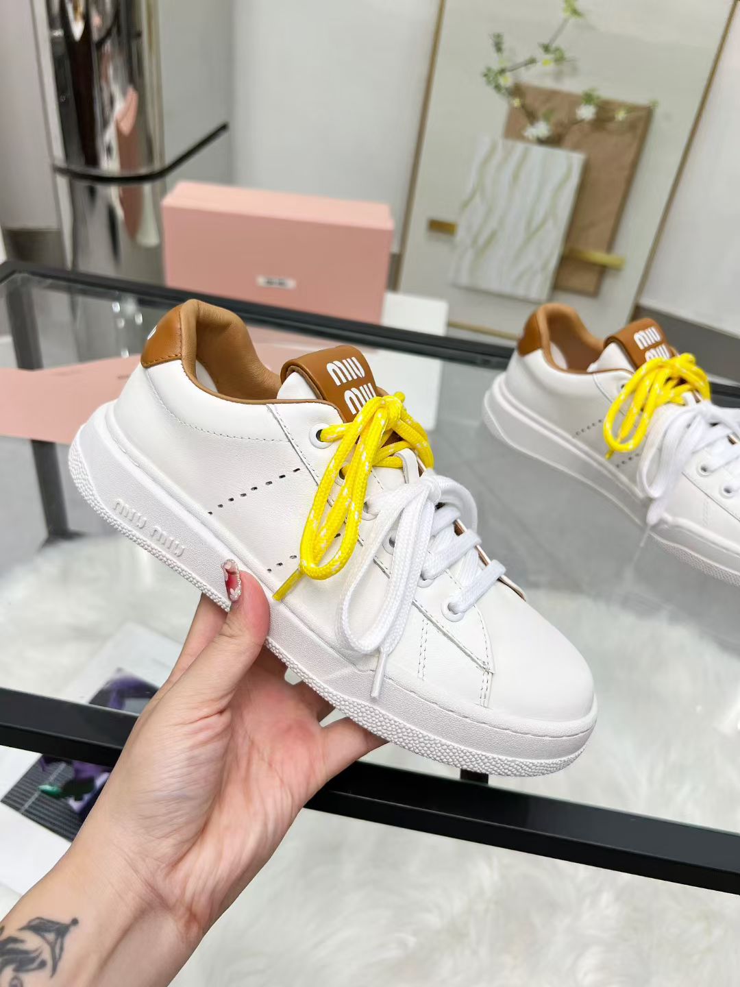 这款鞋子是AAAAA 1:1 质量 (非常棒). 使用了和原版一模一样的材料. 商标部分也保持了和缪缪/Miu Miu一样. 图片拍摄是实物鞋子拍摄, 您所收到的实物保证和我们图片一模一样.