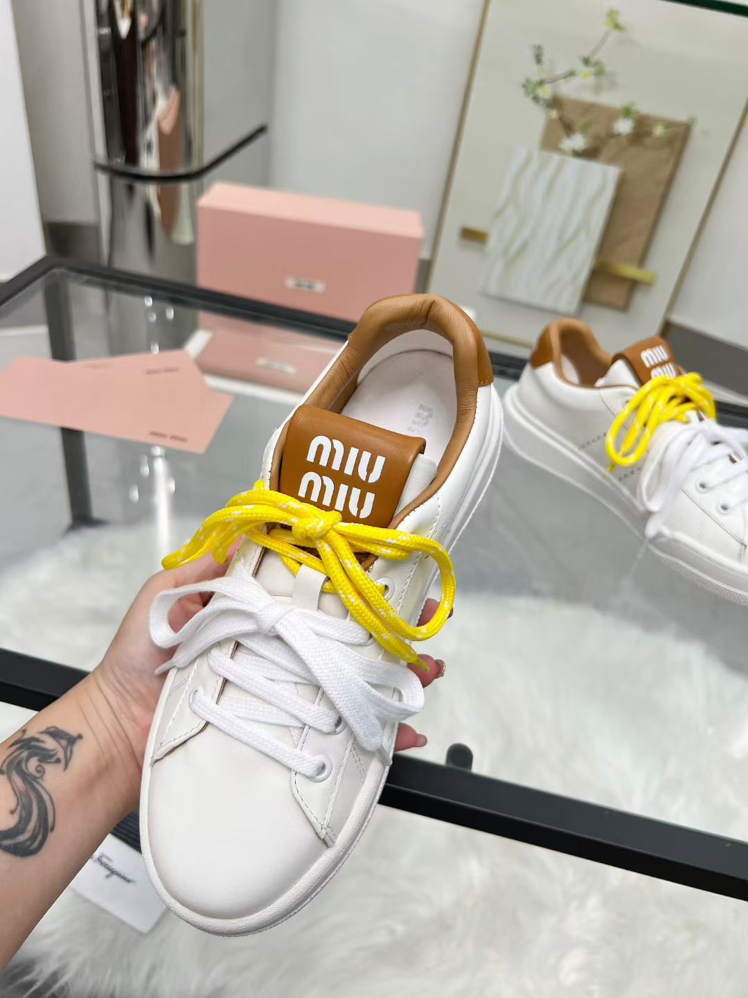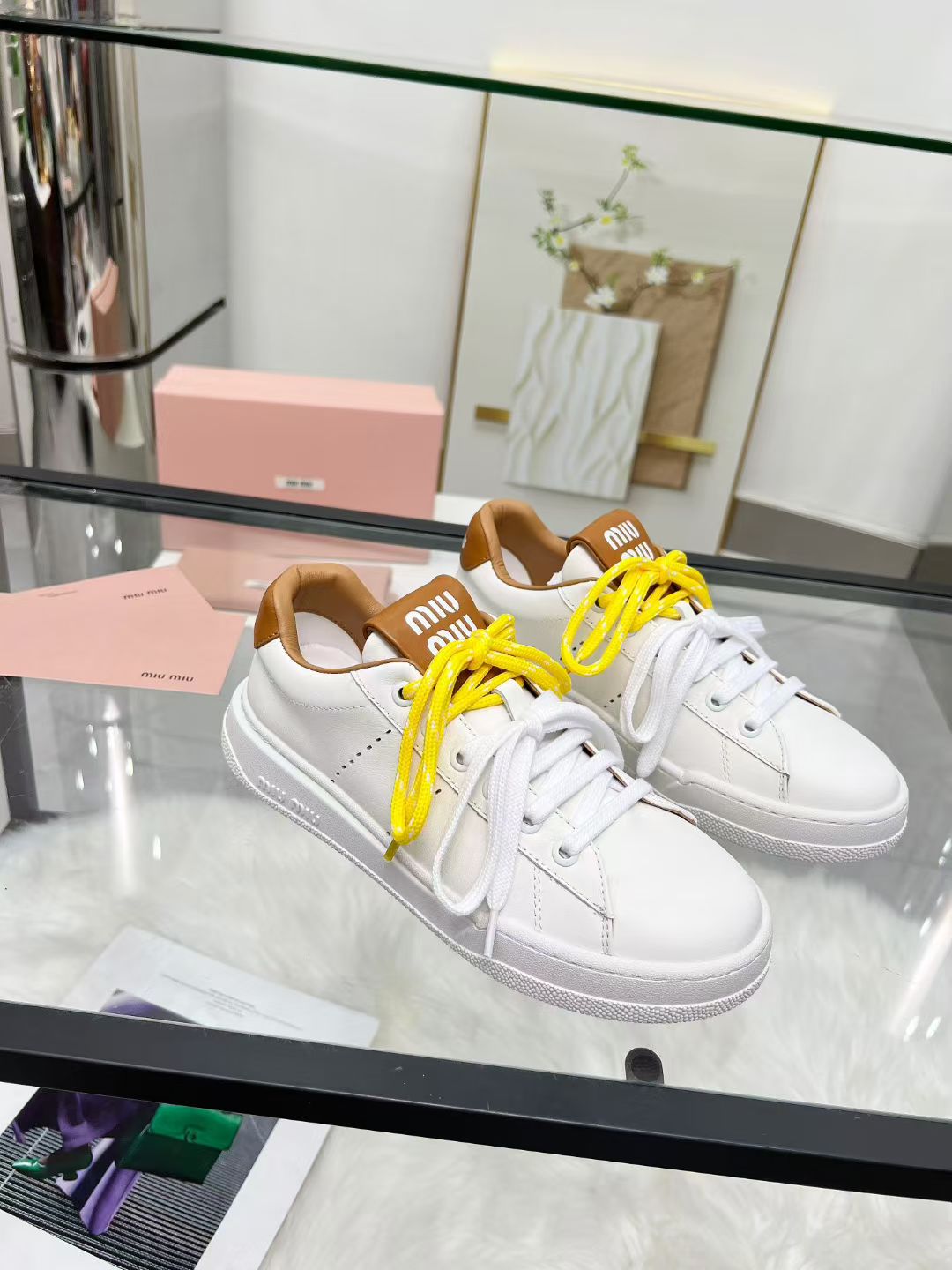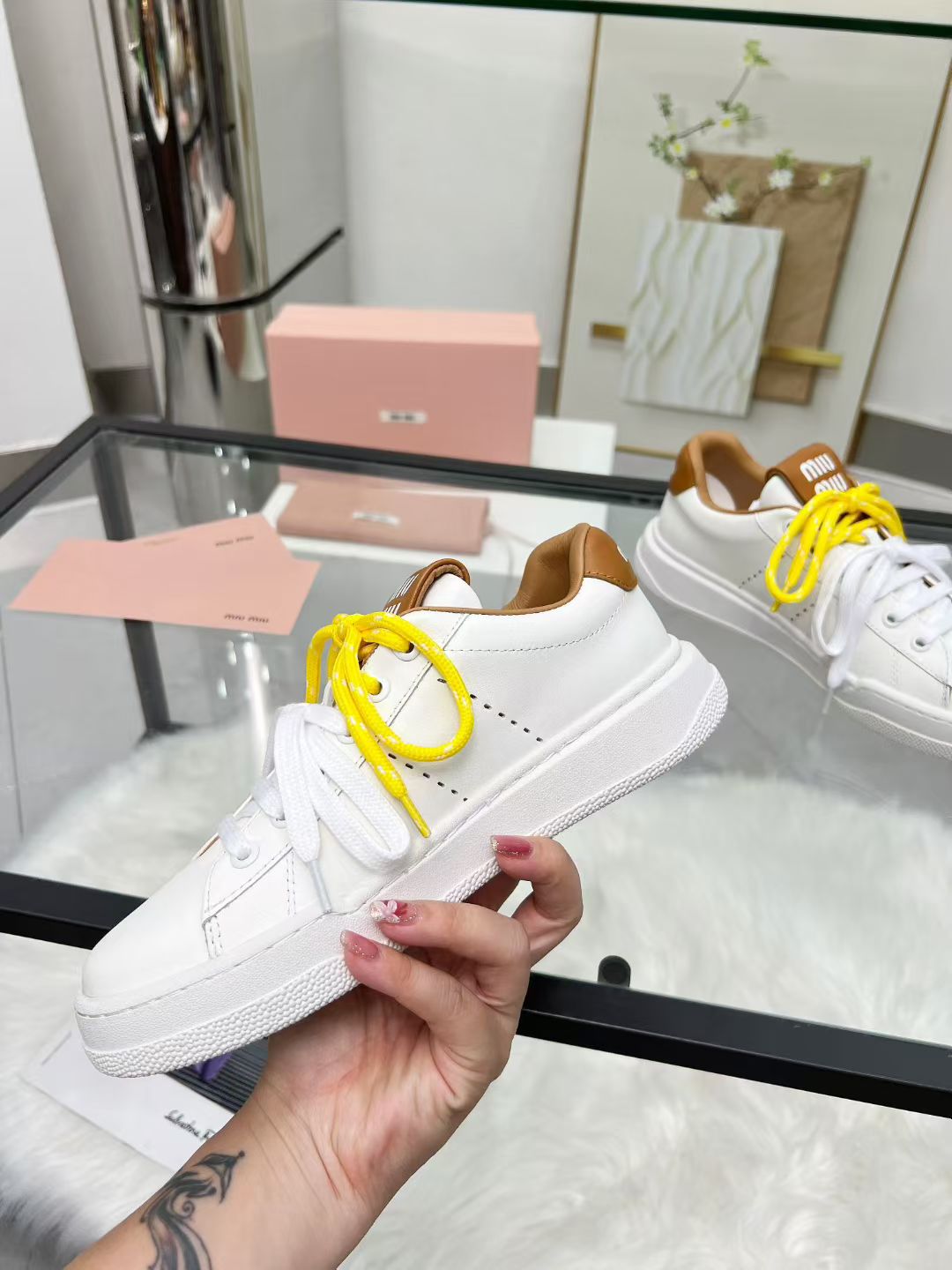 这款鞋子是AAAAA 1:1 质量 (非常棒). 使用了和原版一模一样的材料. 商标部分也保持了和缪缪/Miu Miu一样. 图片拍摄是实物鞋子拍摄, 您所收到的实物保证和我们图片一模一样.