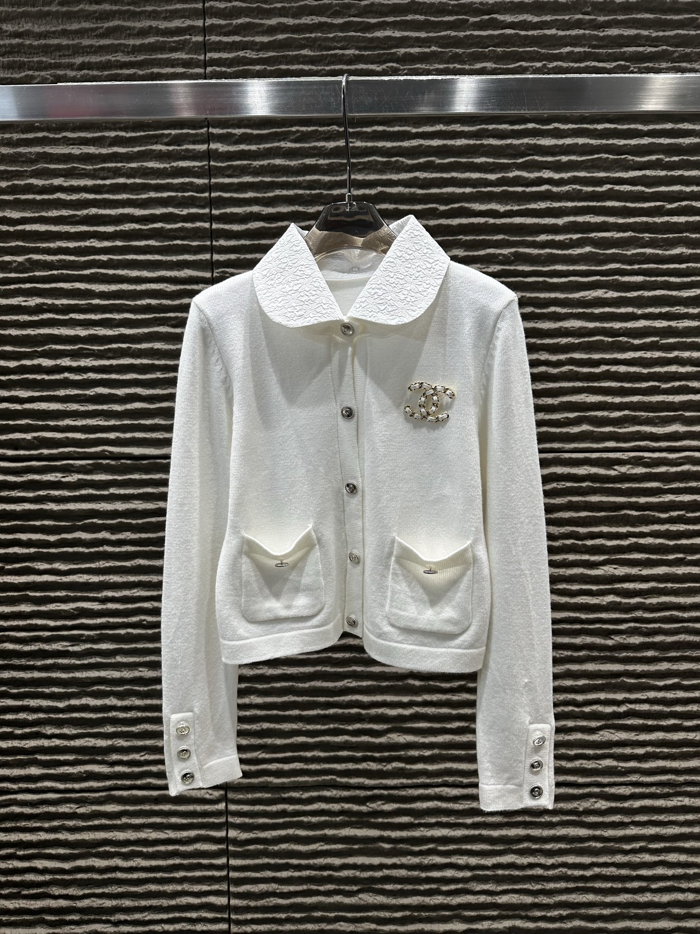 这款衣服是AAAAA 1:1 质量 (非常棒). 使用了和原版一模一样的材料. 商标部分也保持了和香奈儿/Chanel一样. 图片拍摄是实物衣服拍摄, 您所收到的实物保证和我们图片一模一样.