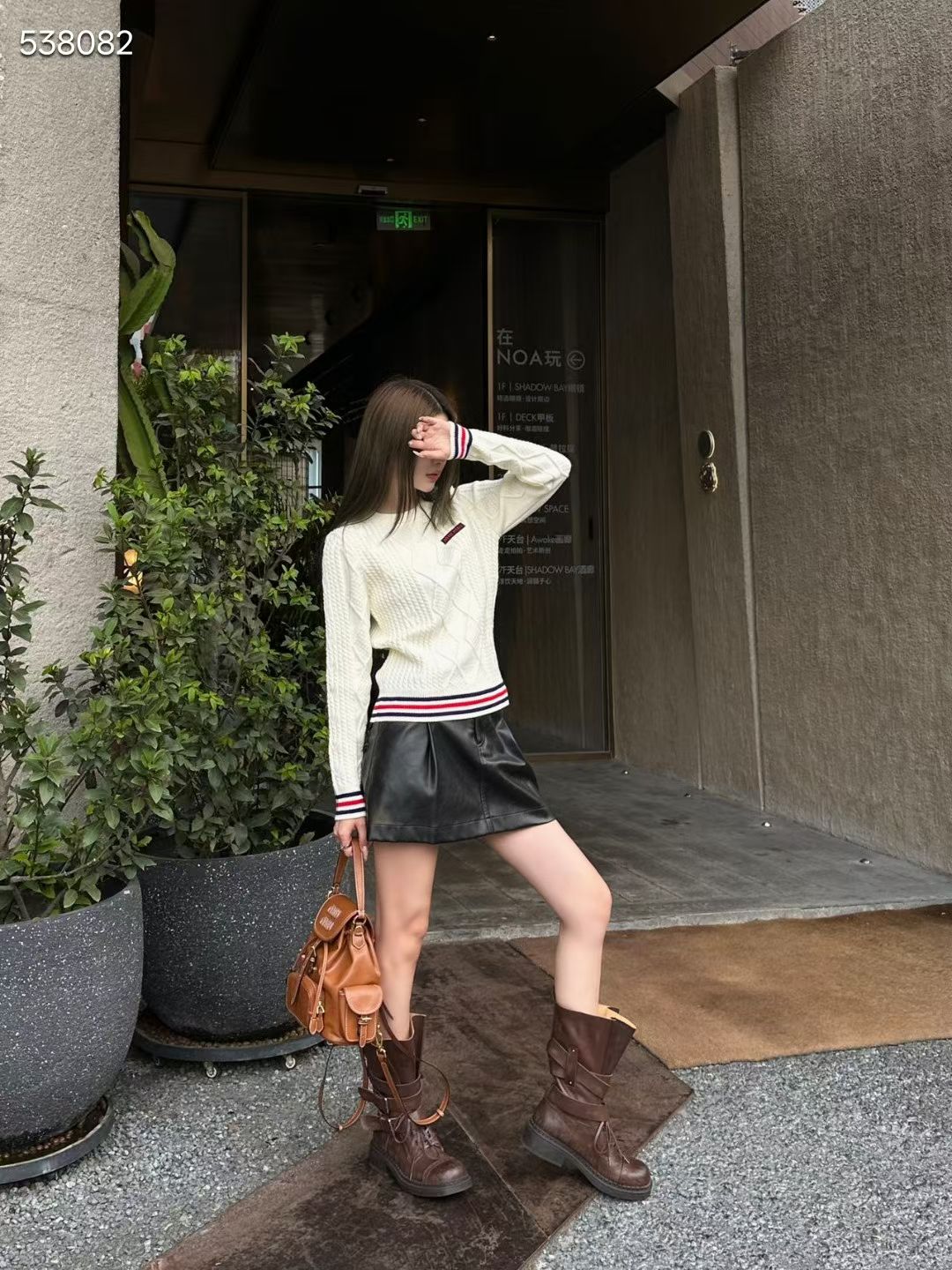 这款衣服是AAAAA 1:1 质量 (非常棒). 使用了和原版一模一样的材料. 商标部分也保持了和缪缪/Miu Miu一样. 图片拍摄是实物衣服拍摄, 您所收到的实物保证和我们图片一模一样.