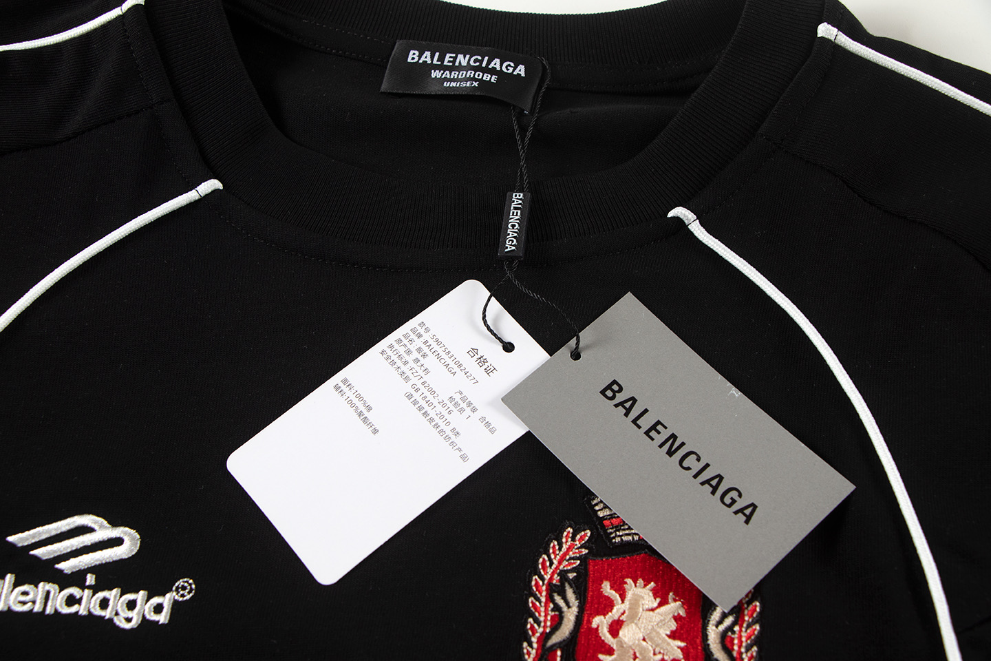 这款衣服是AAAAA 1:1 质量 (非常棒). 使用了和原版一模一样的材料. 商标部分也保持了和巴黎世家/Balenciaga一样. 图片拍摄是实物衣服拍摄, 您所收到的实物保证和我们图片一模一样.