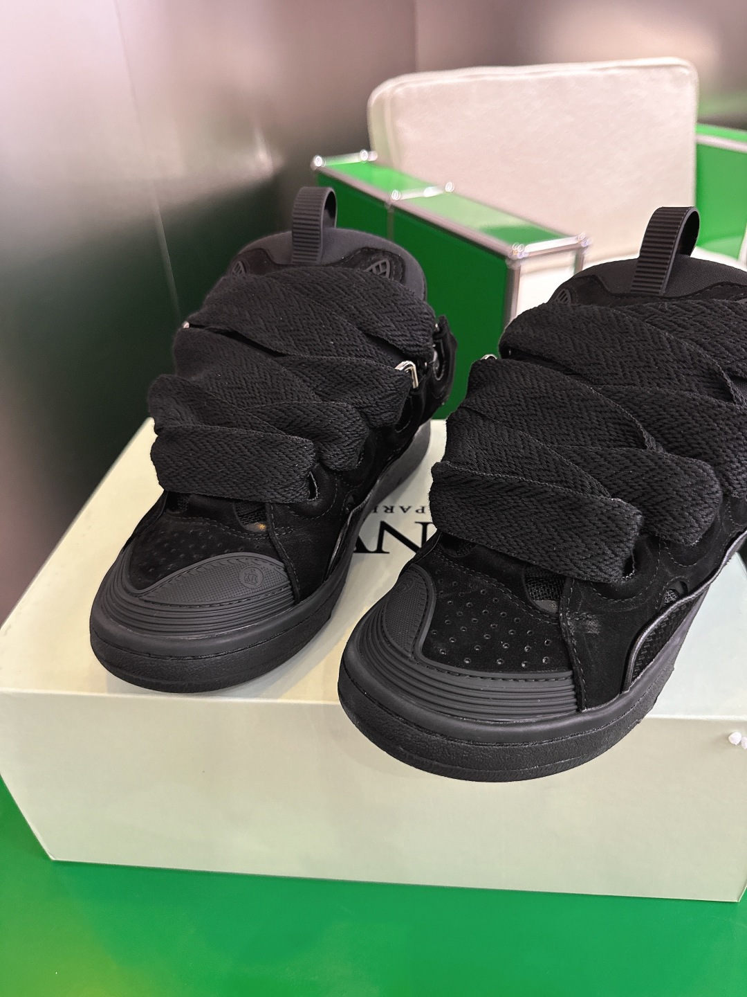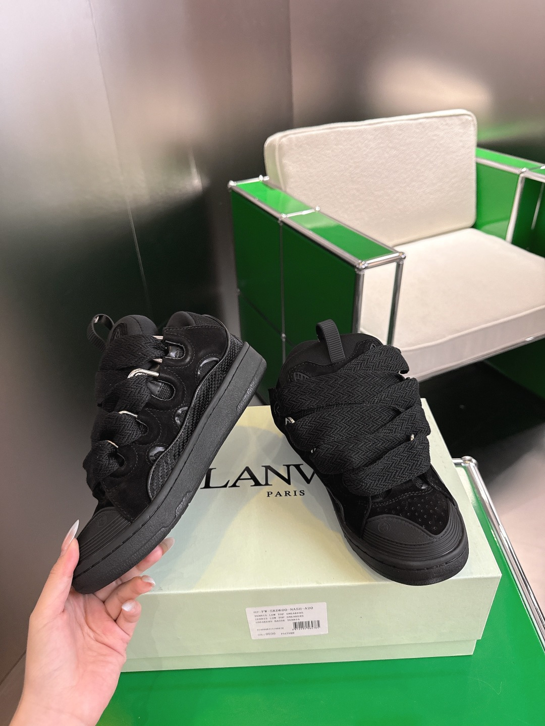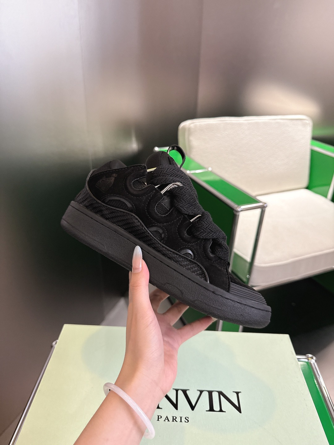 这款鞋子是AAAAA 1:1 质量 (非常棒). 使用了和原版一模一样的材料. 商标部分也保持了和Lanvin一样. 图片拍摄是实物鞋子拍摄, 您所收到的实物保证和我们图片一模一样.