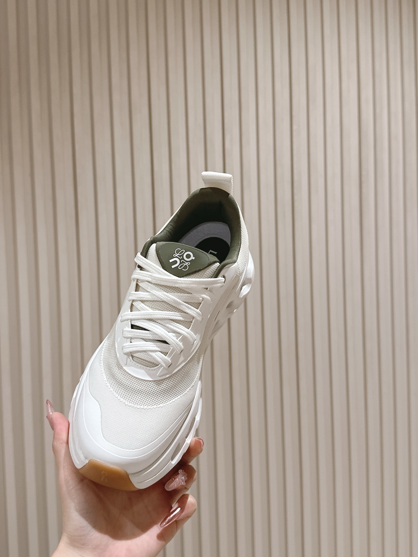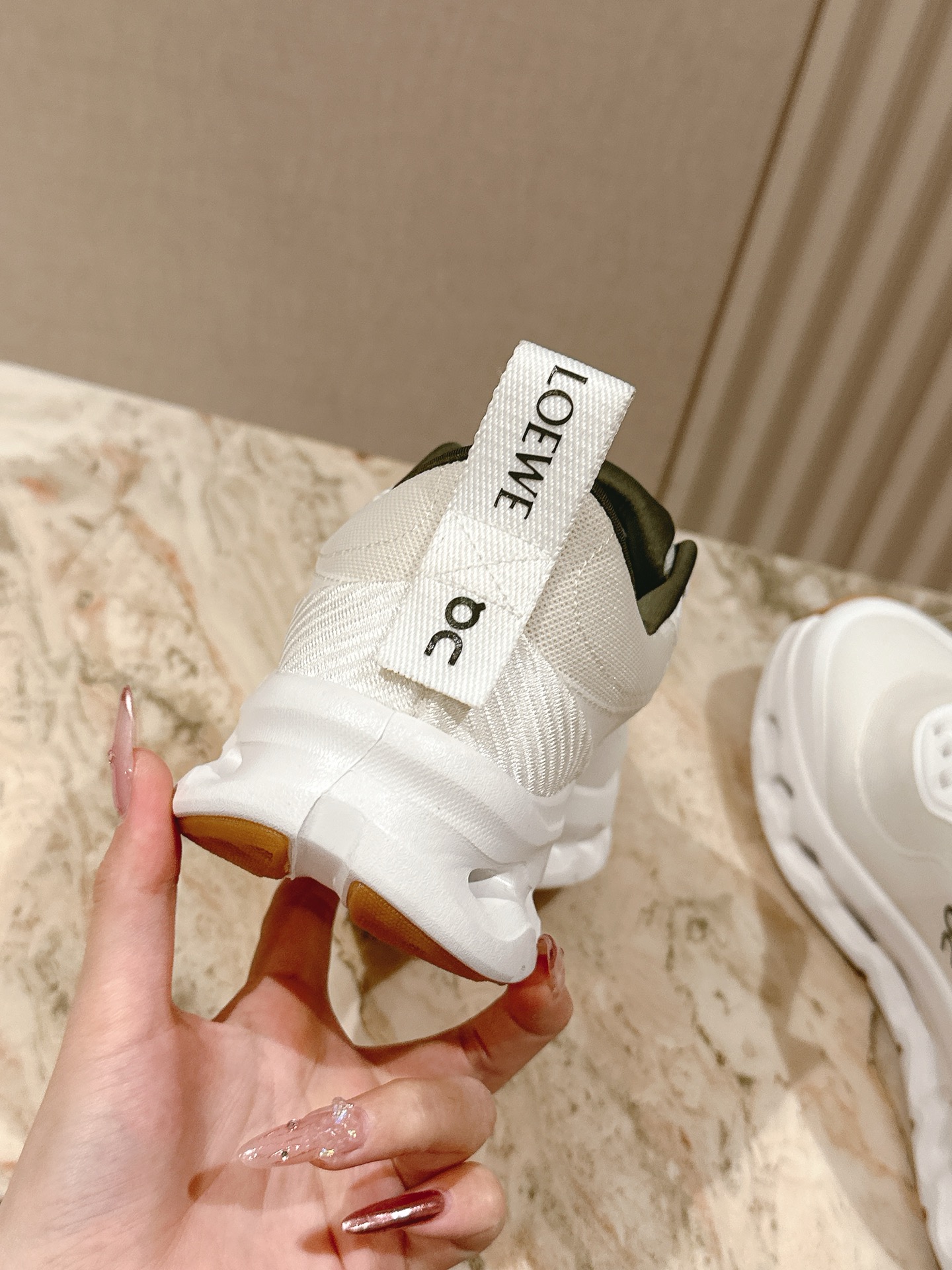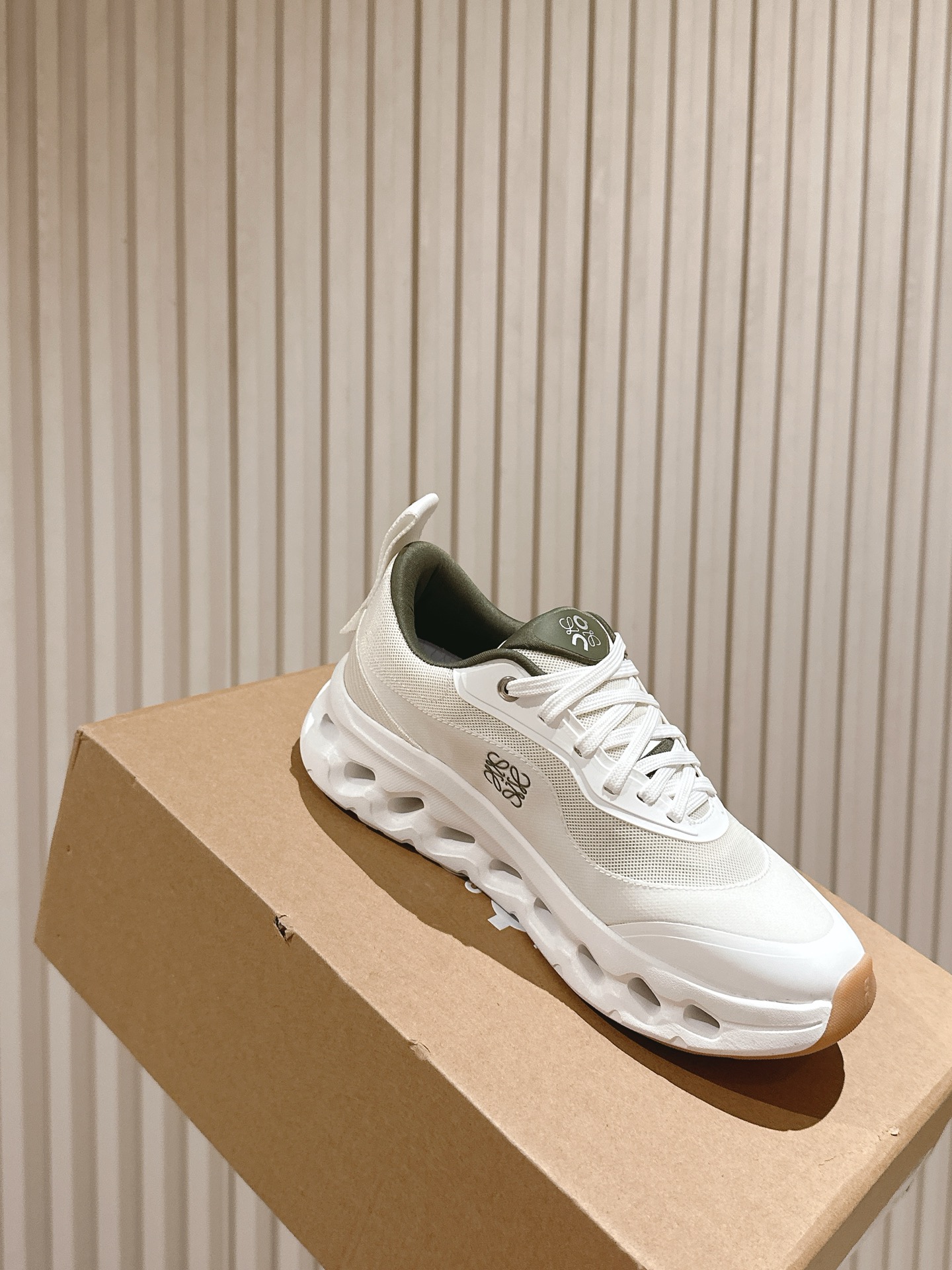 这款鞋子是AAAAA 1:1 质量 (非常棒). 使用了和原版一模一样的材料. 商标部分也保持了和罗意威/Loewe一样. 图片拍摄是实物鞋子拍摄, 您所收到的实物保证和我们图片一模一样.