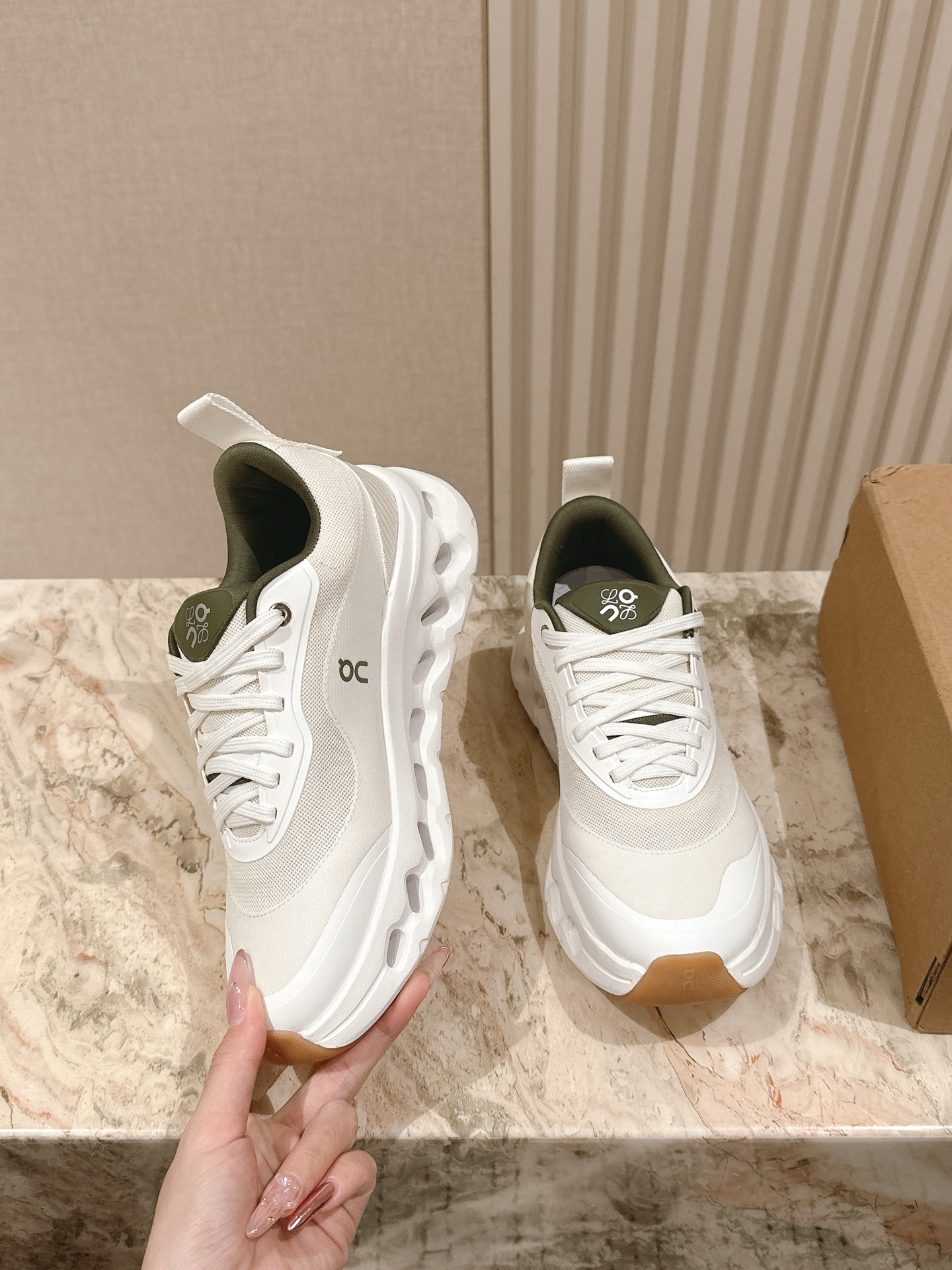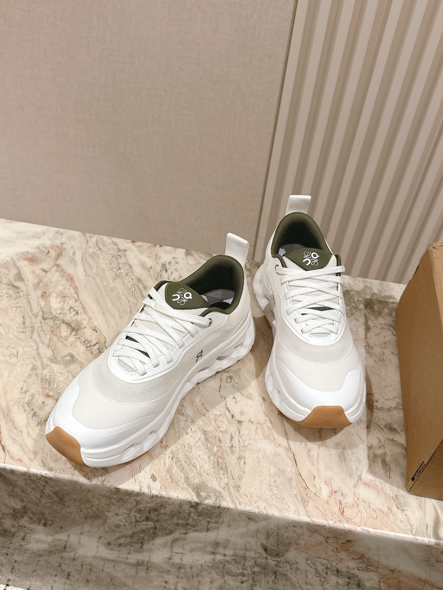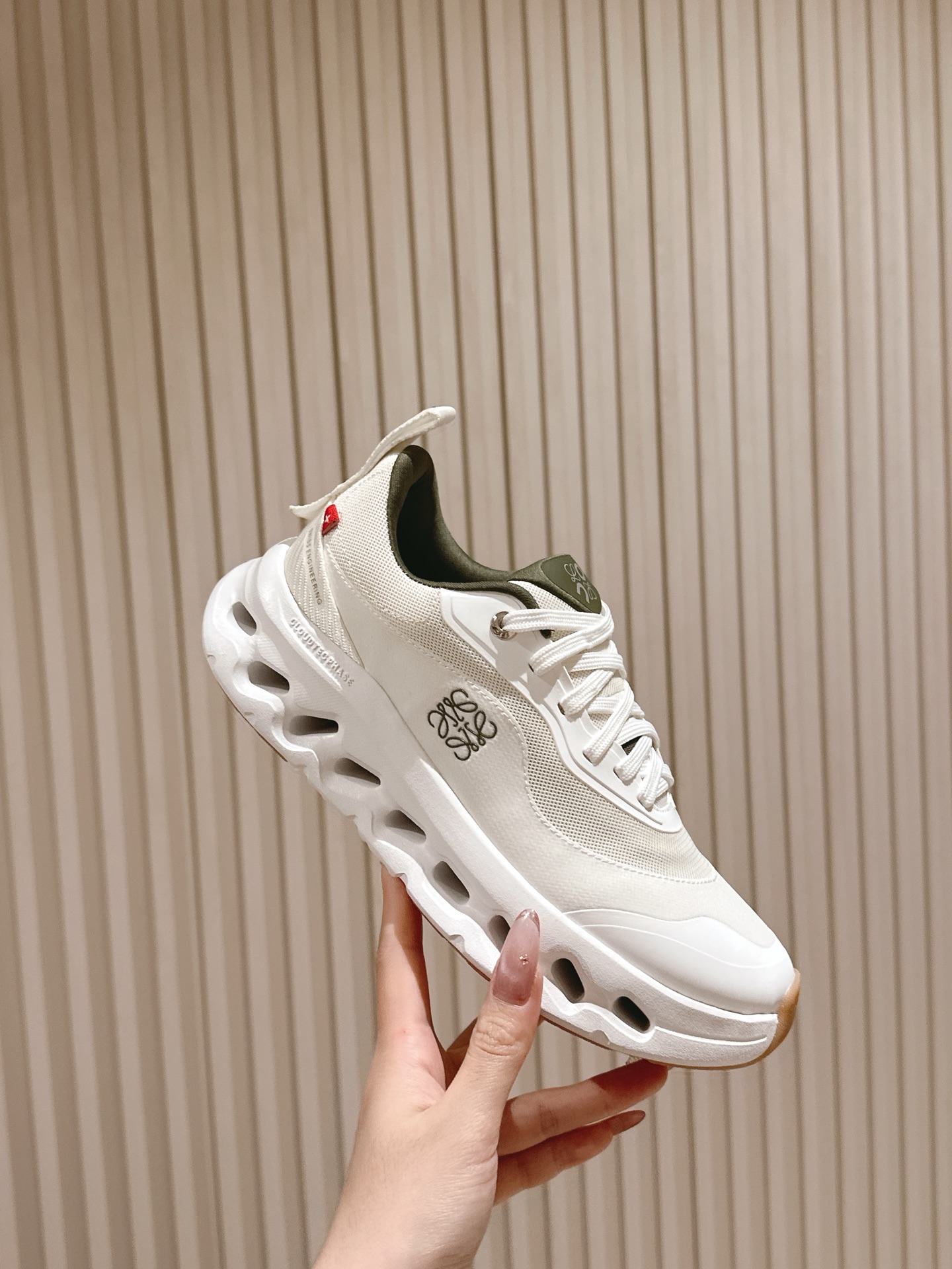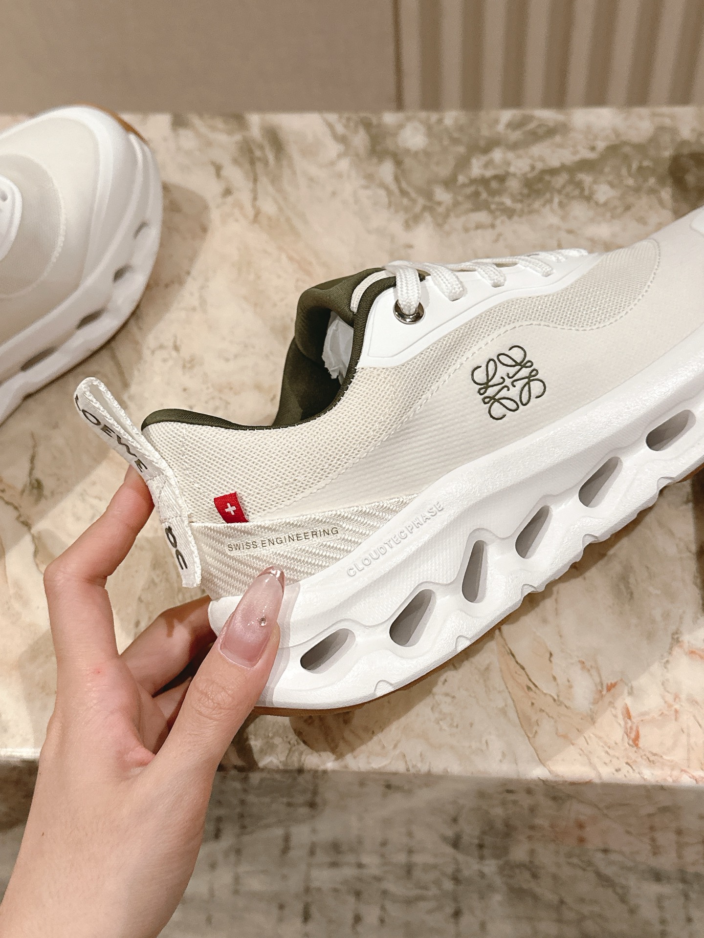 这款鞋子是AAAAA 1:1 质量 (非常棒). 使用了和原版一模一样的材料. 商标部分也保持了和罗意威/Loewe一样. 图片拍摄是实物鞋子拍摄, 您所收到的实物保证和我们图片一模一样.