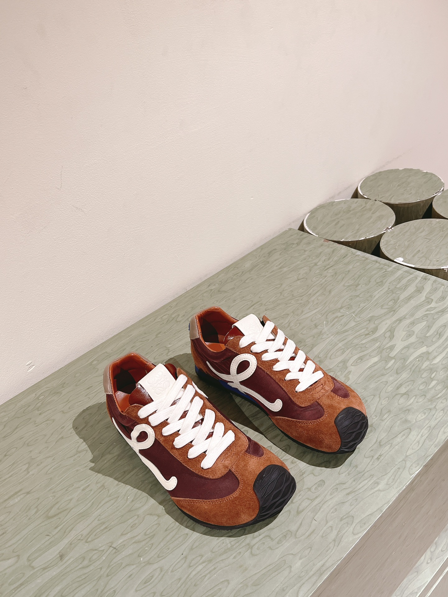 这款鞋子是AAAAA 1:1 质量 (非常棒). 使用了和原版一模一样的材料. 商标部分也保持了和罗意威/Loewe一样. 图片拍摄是实物鞋子拍摄, 您所收到的实物保证和我们图片一模一样.