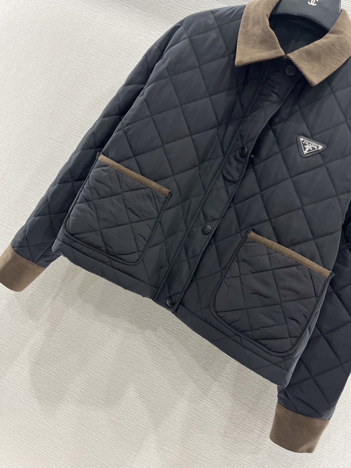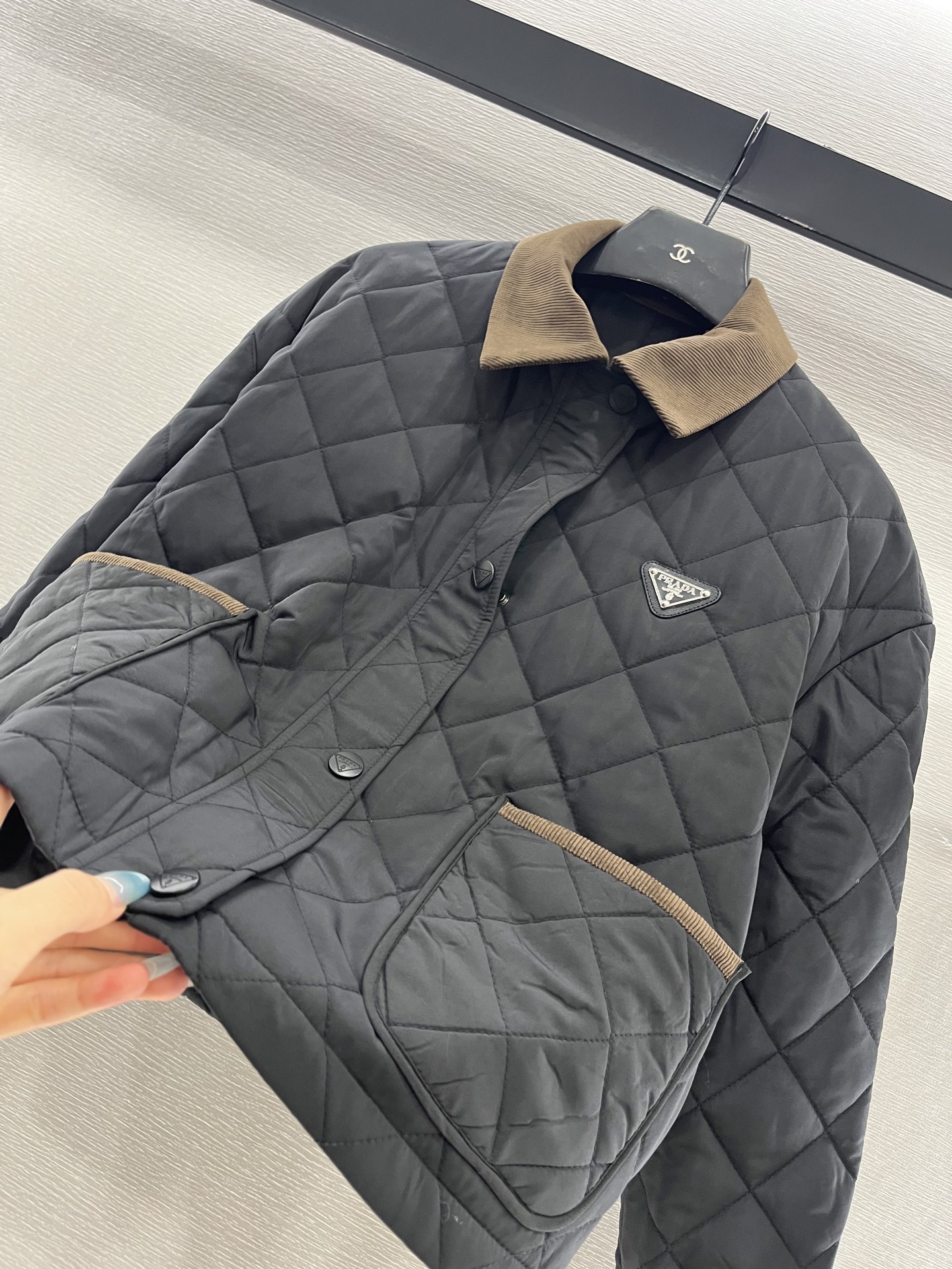 这款衣服是AAAAA 1:1 质量 (非常棒). 使用了和原版一模一样的材料. 商标部分也保持了和普拉达/Prada一样. 图片拍摄是实物衣服拍摄, 您所收到的实物保证和我们图片一模一样.