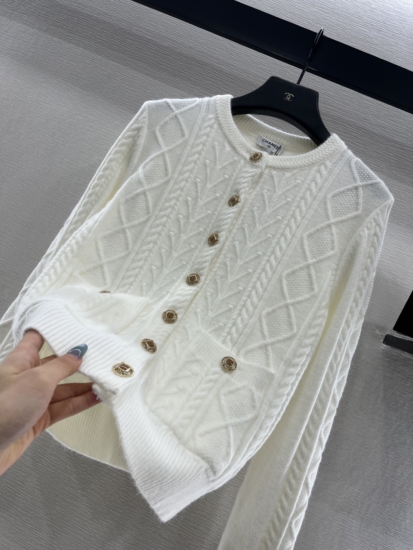 这款衣服是AAAAA 1:1 质量 (非常棒). 使用了和原版一模一样的材料. 商标部分也保持了和香奈儿/Chanel一样. 图片拍摄是实物衣服拍摄, 您所收到的实物保证和我们图片一模一样.