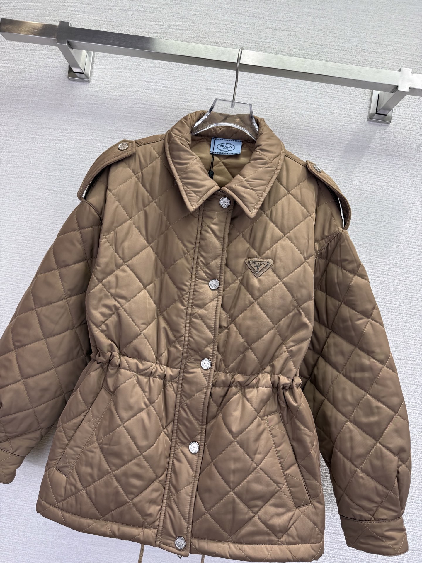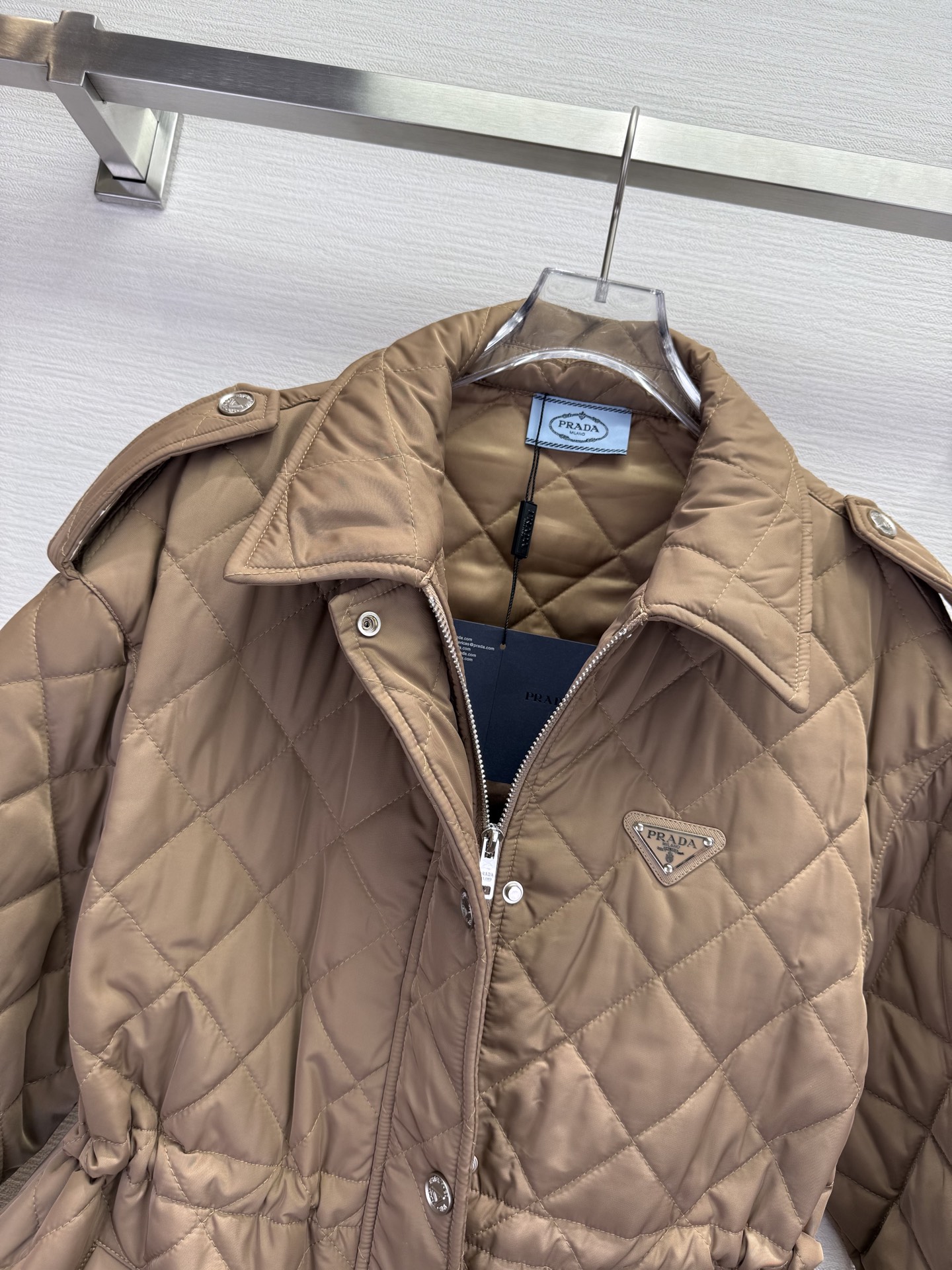 这款衣服是AAAAA 1:1 质量 (非常棒). 使用了和原版一模一样的材料. 商标部分也保持了和普拉达/Prada一样. 图片拍摄是实物衣服拍摄, 您所收到的实物保证和我们图片一模一样.