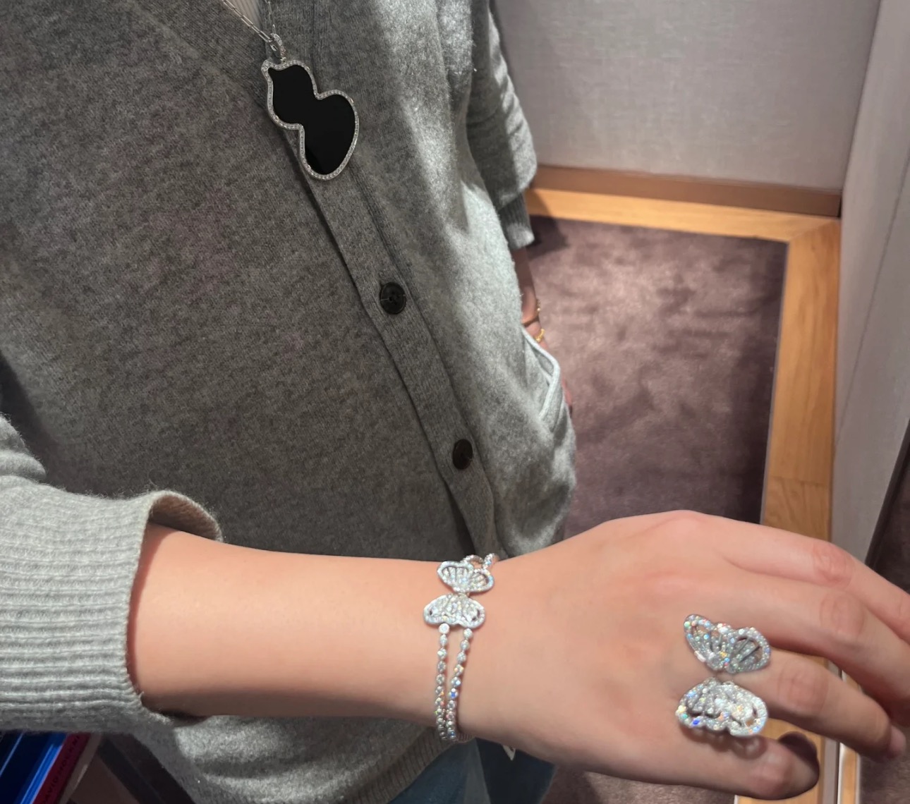 这款首饰是AAAAA 1:1 质量 (非常棒). 使用了和原版一模一样的材料. 商标部分也保持了和GRAFF一样. 图片拍摄是实物首饰拍摄, 您所收到的实物保证和我们图片一模一样.