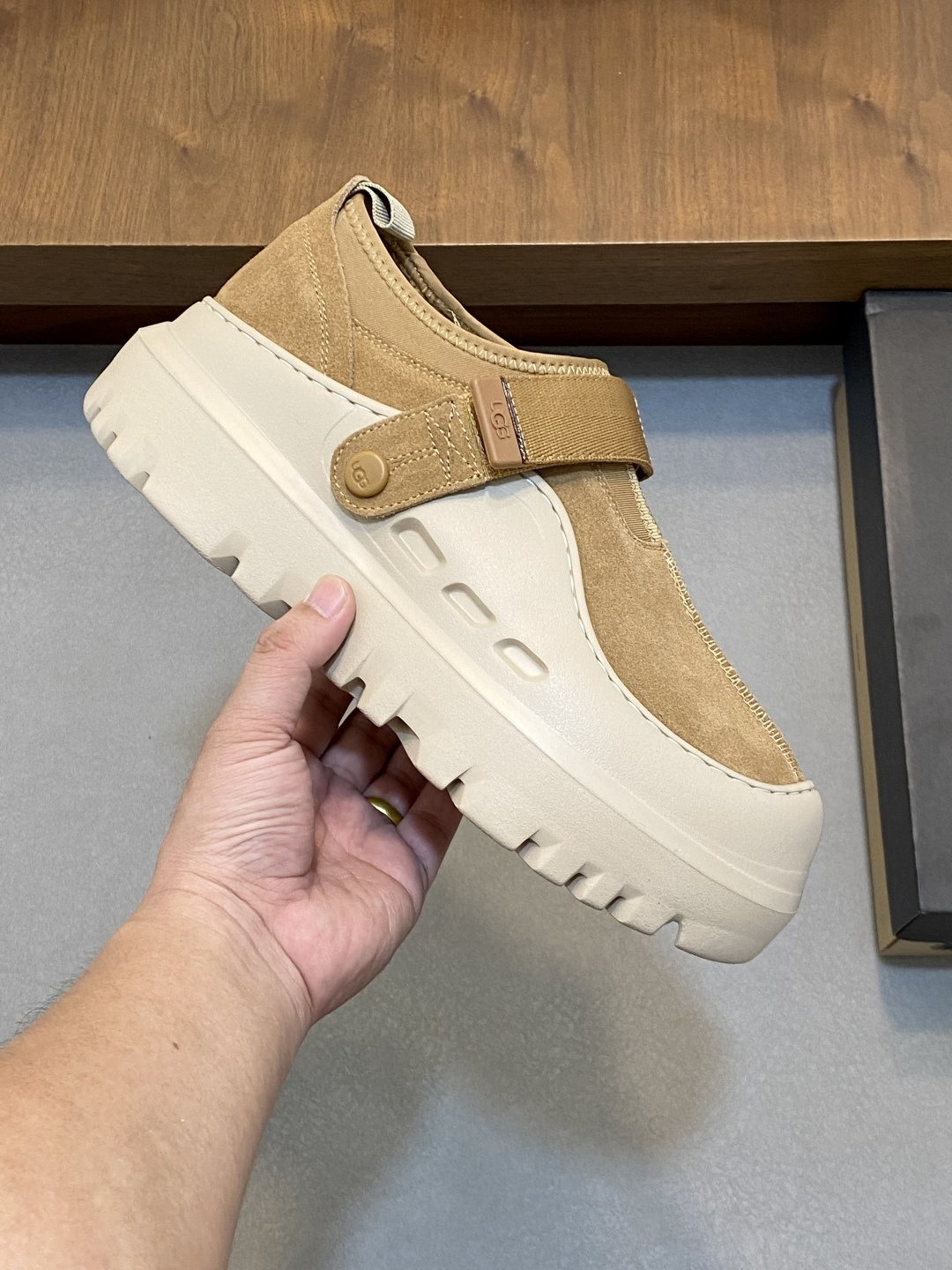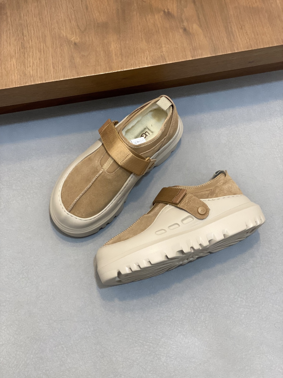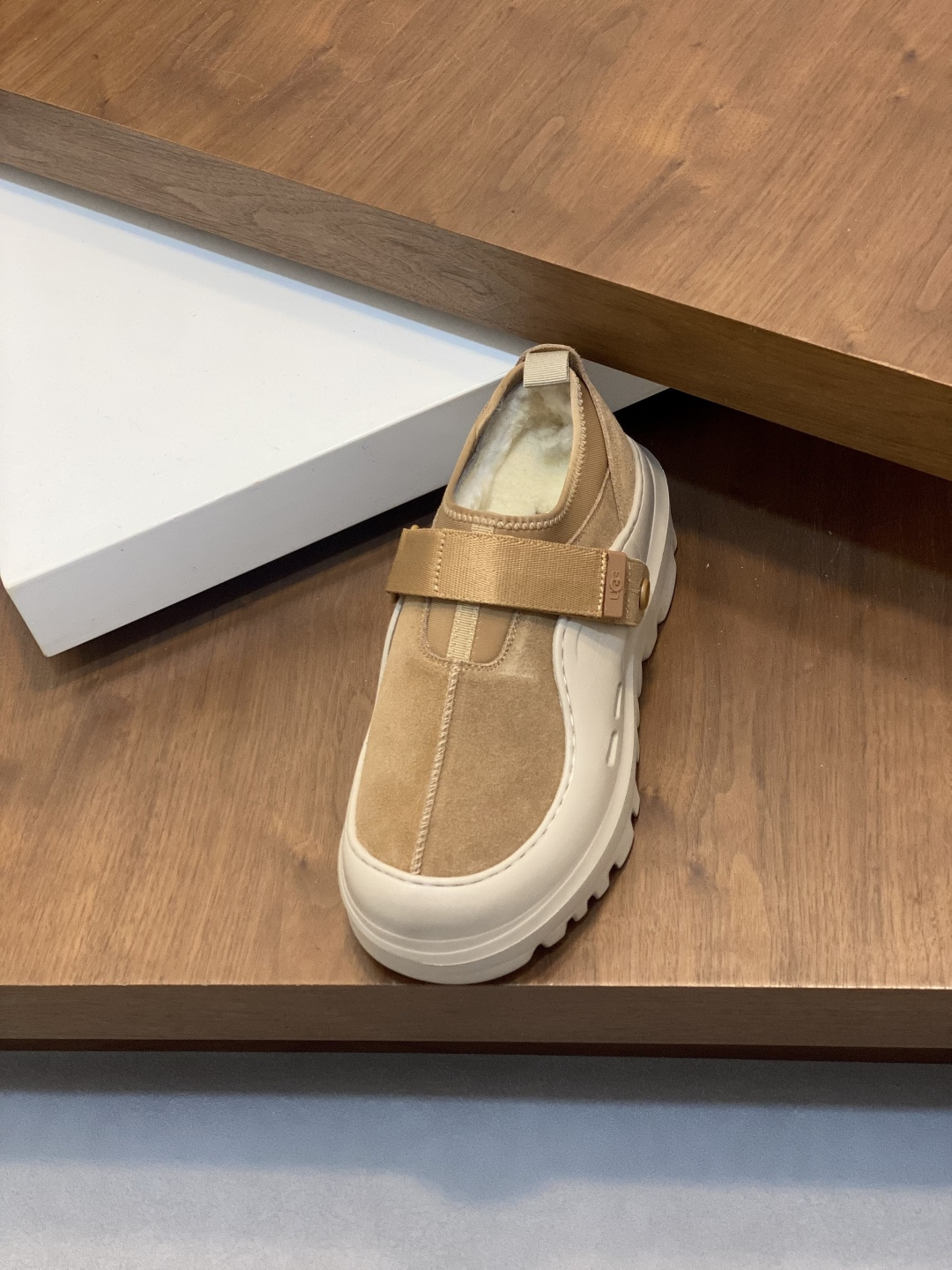 这款鞋子是AAAAA 1:1 质量 (非常棒). 使用了和原版一模一样的材料. 商标部分也保持了和UGG雪地靴一样. 图片拍摄是实物鞋子拍摄, 您所收到的实物保证和我们图片一模一样.