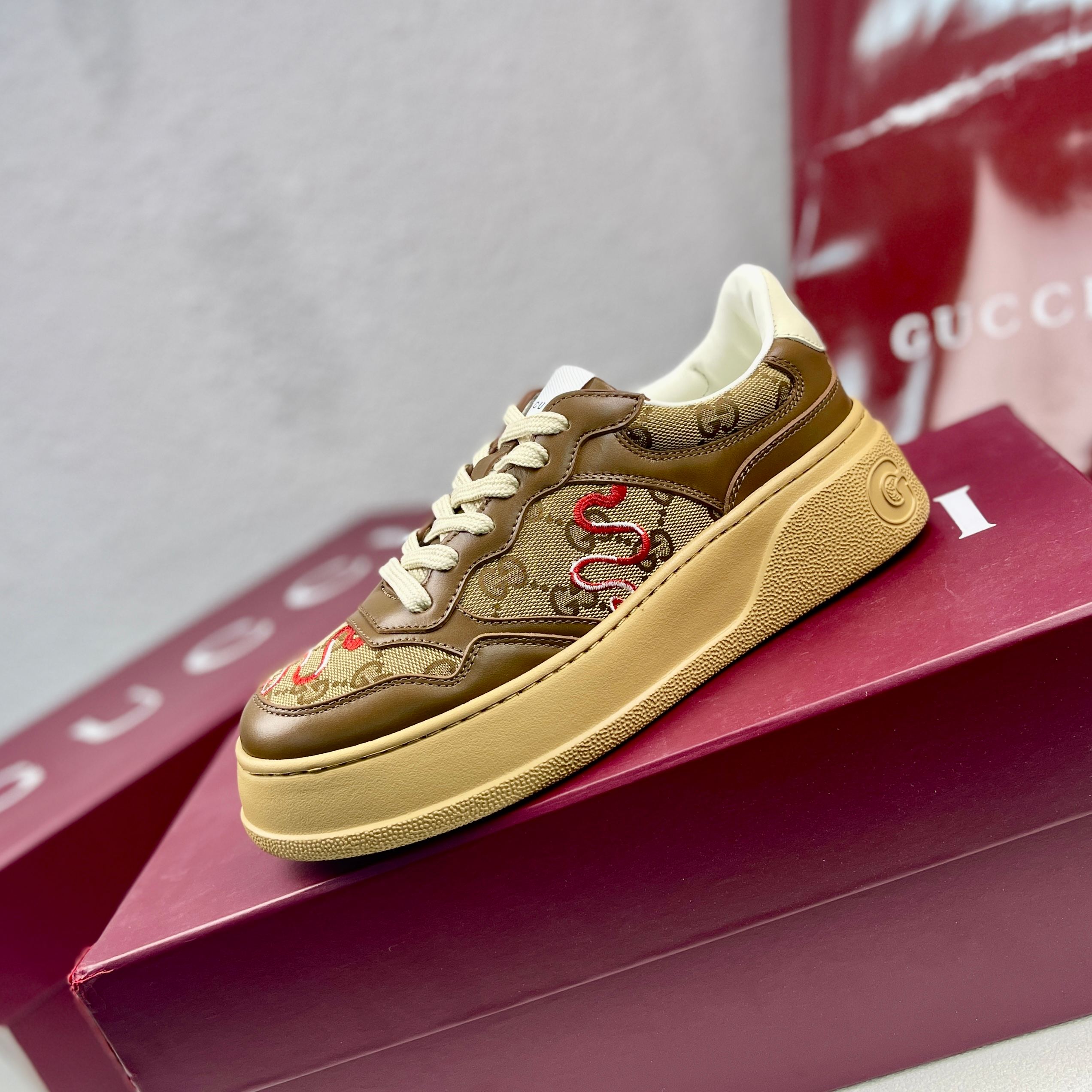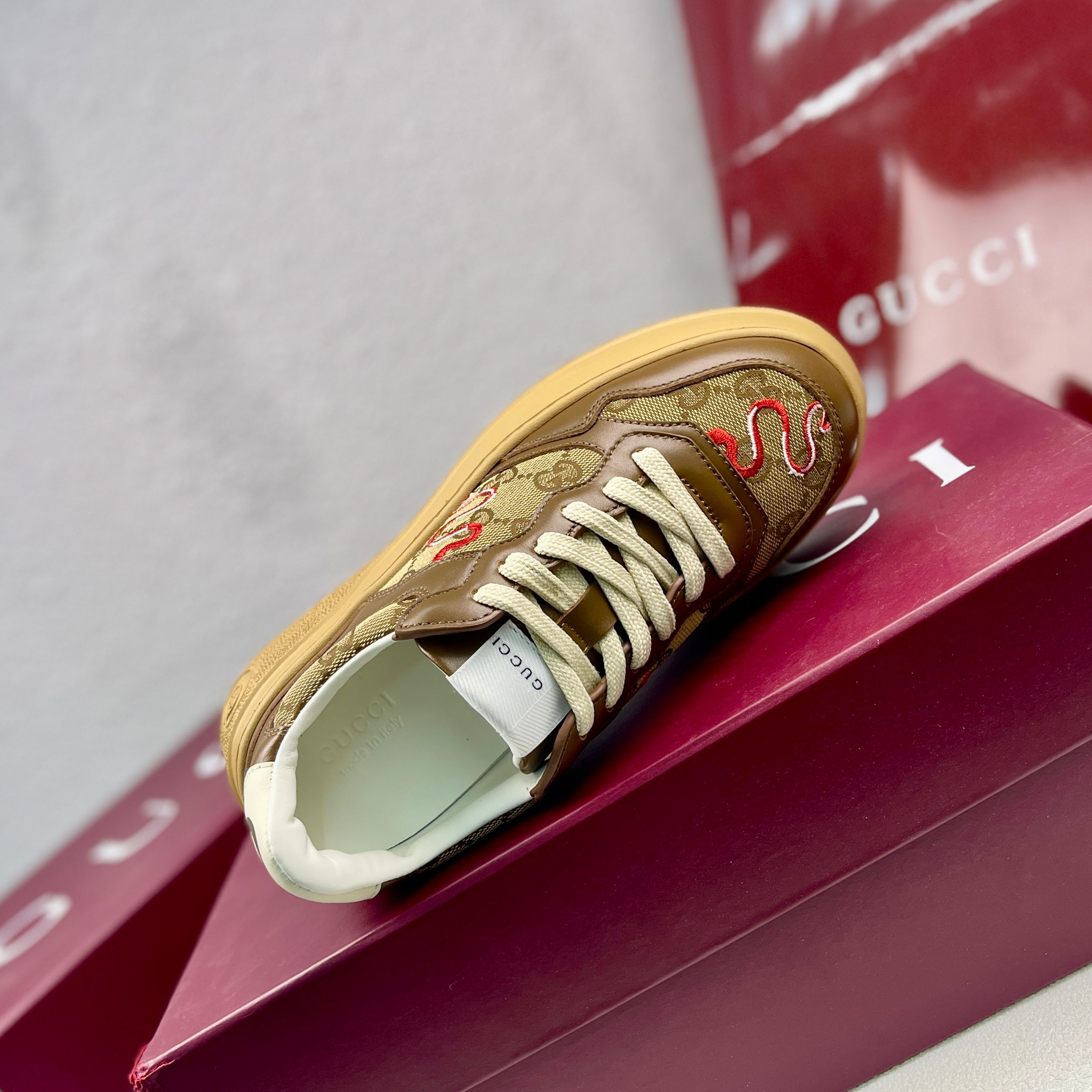 这款鞋子是AAAAA 1:1 质量 (非常棒). 使用了和原版一模一样的材料. 商标部分也保持了和古奇/Gucci一样. 图片拍摄是实物鞋子拍摄, 您所收到的实物保证和我们图片一模一样.