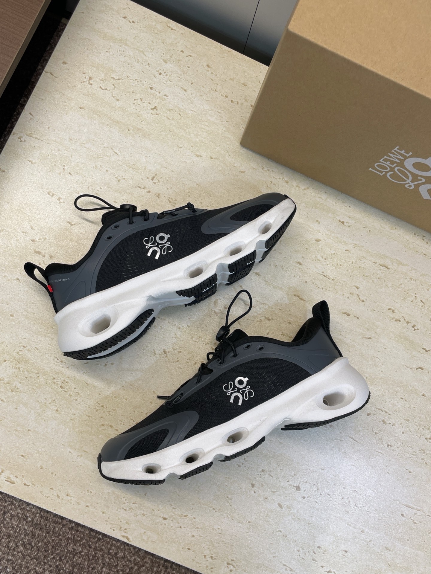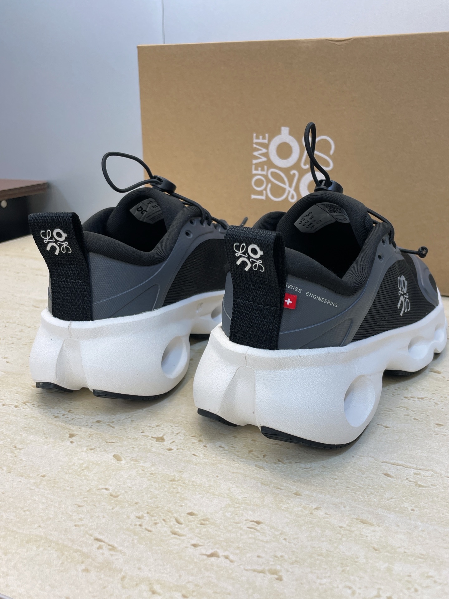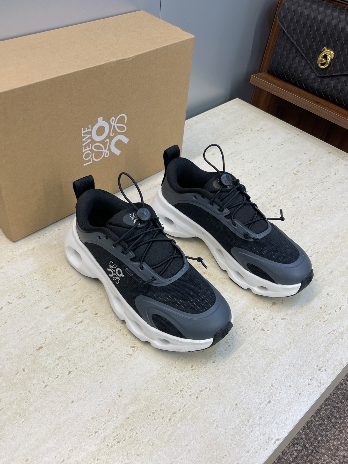 这款鞋子是AAAAA 1:1 质量 (非常棒). 使用了和原版一模一样的材料. 商标部分也保持了和罗意威/Loewe一样. 图片拍摄是实物鞋子拍摄, 您所收到的实物保证和我们图片一模一样.