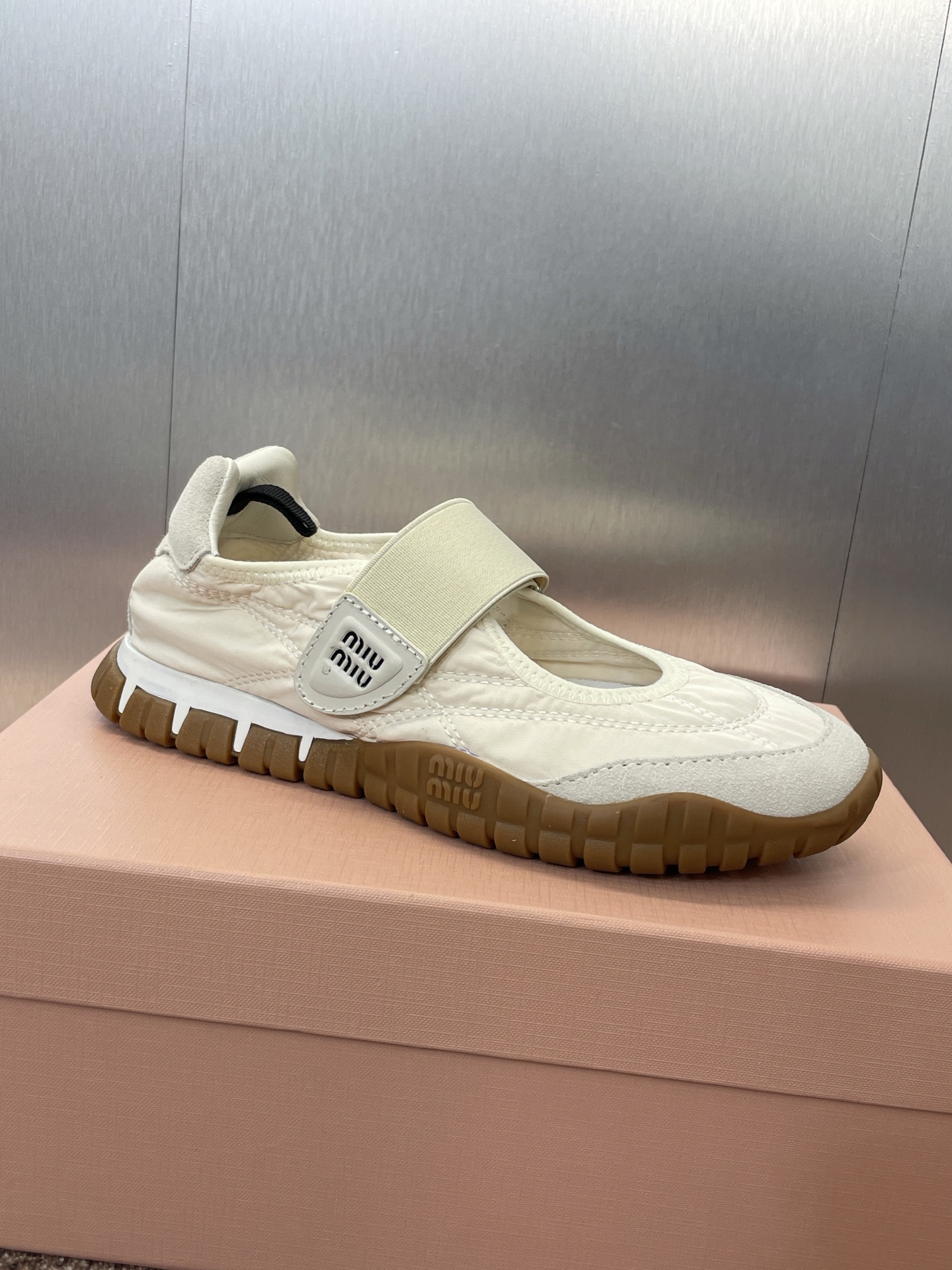这款鞋子是AAAAA 1:1 质量 (非常棒). 使用了和原版一模一样的材料. 商标部分也保持了和缪缪/Miu Miu一样. 图片拍摄是实物鞋子拍摄, 您所收到的实物保证和我们图片一模一样.