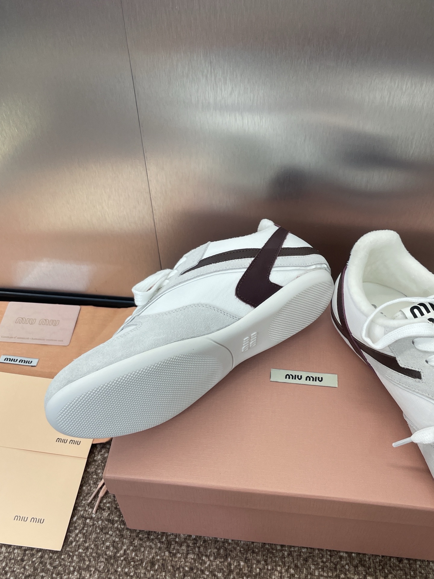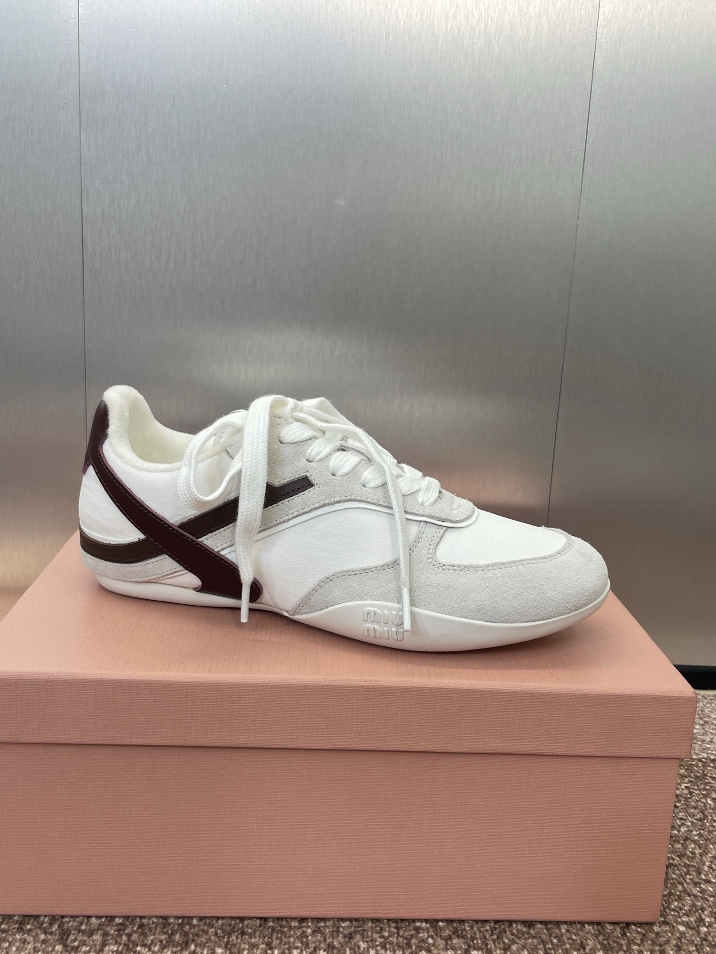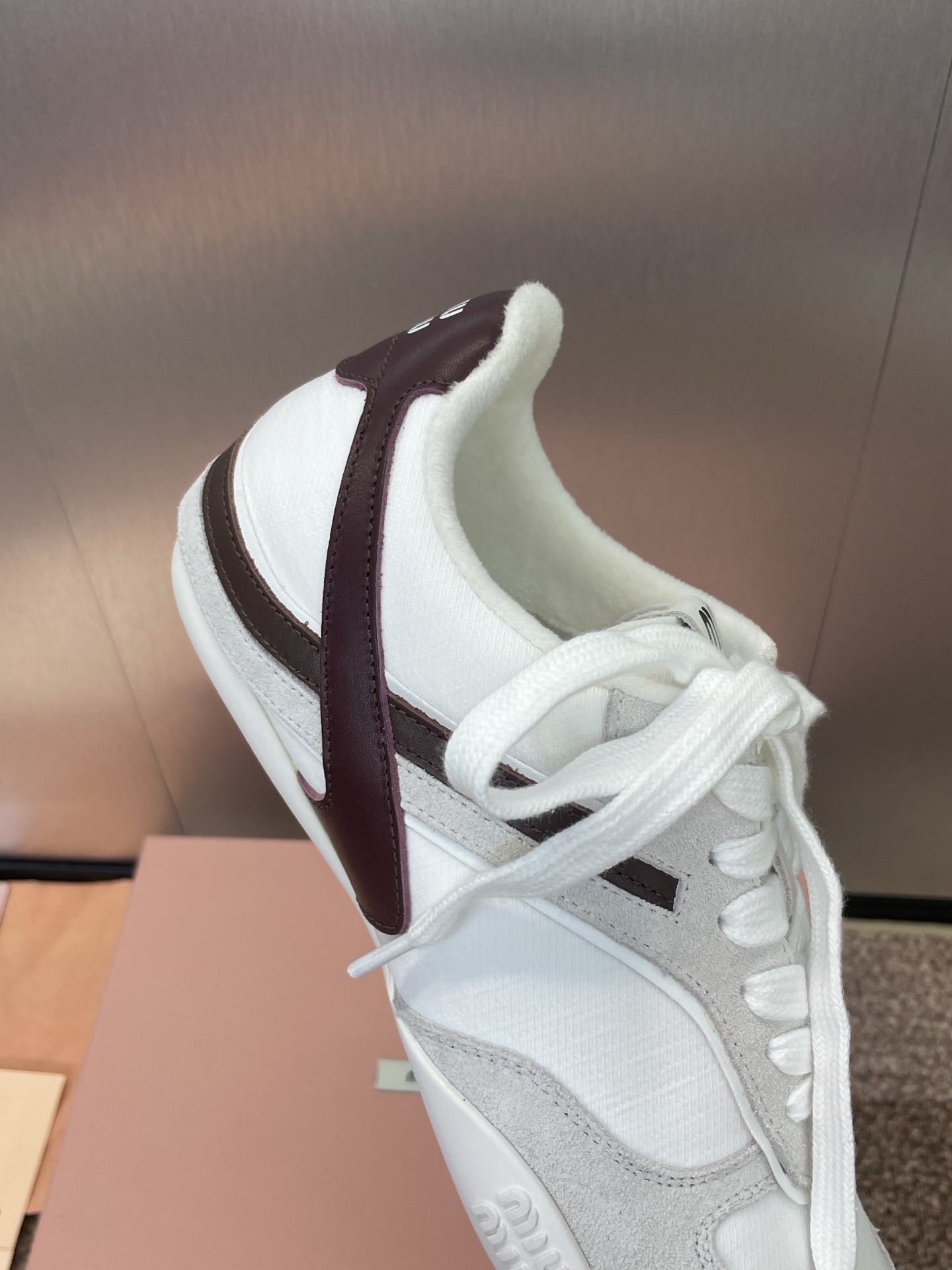 这款鞋子是AAAAA 1:1 质量 (非常棒). 使用了和原版一模一样的材料. 商标部分也保持了和缪缪/Miu Miu一样. 图片拍摄是实物鞋子拍摄, 您所收到的实物保证和我们图片一模一样.