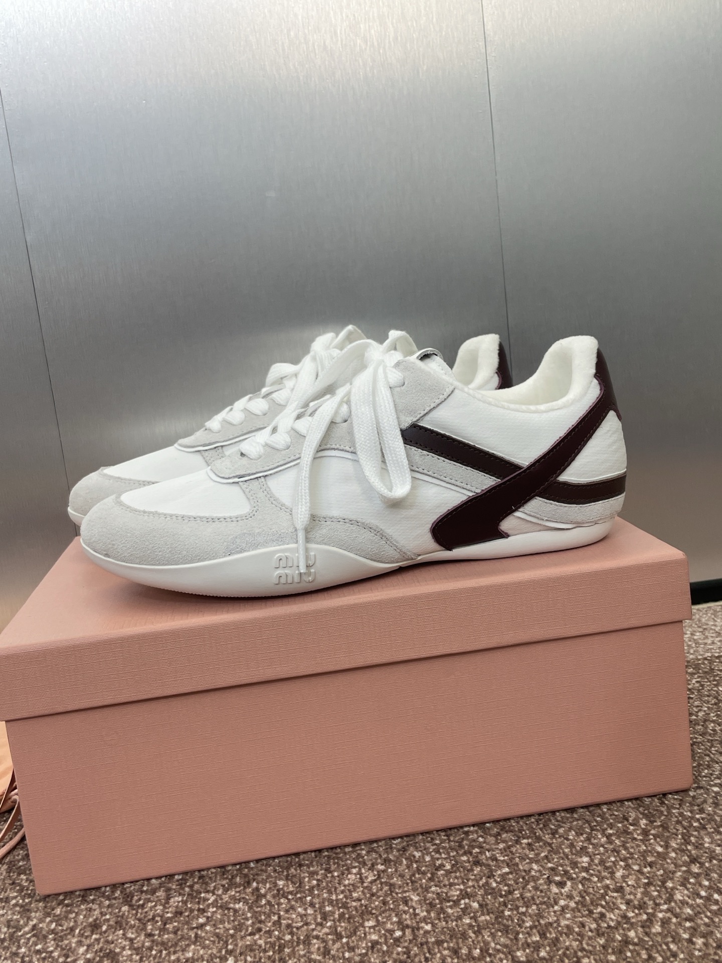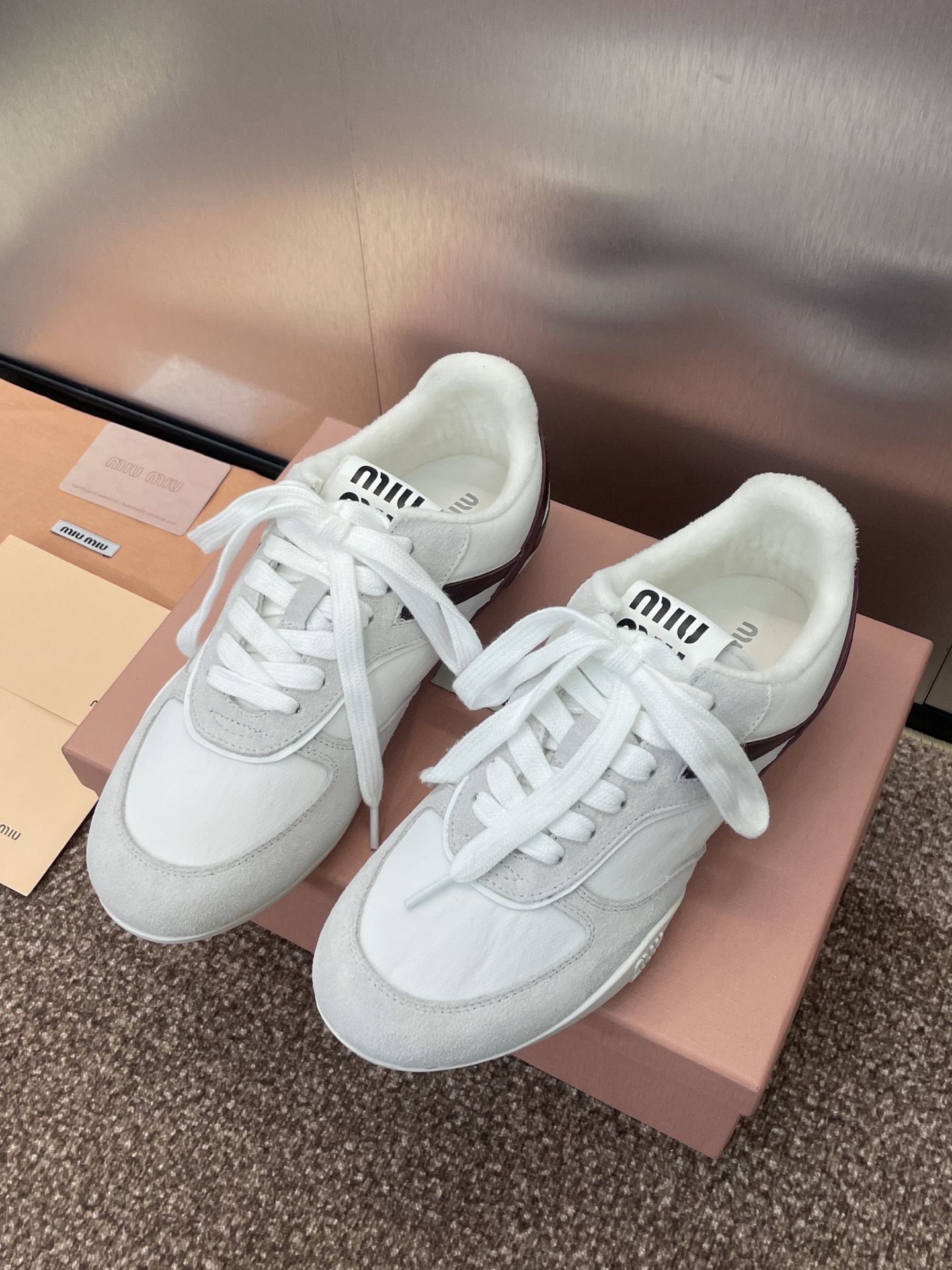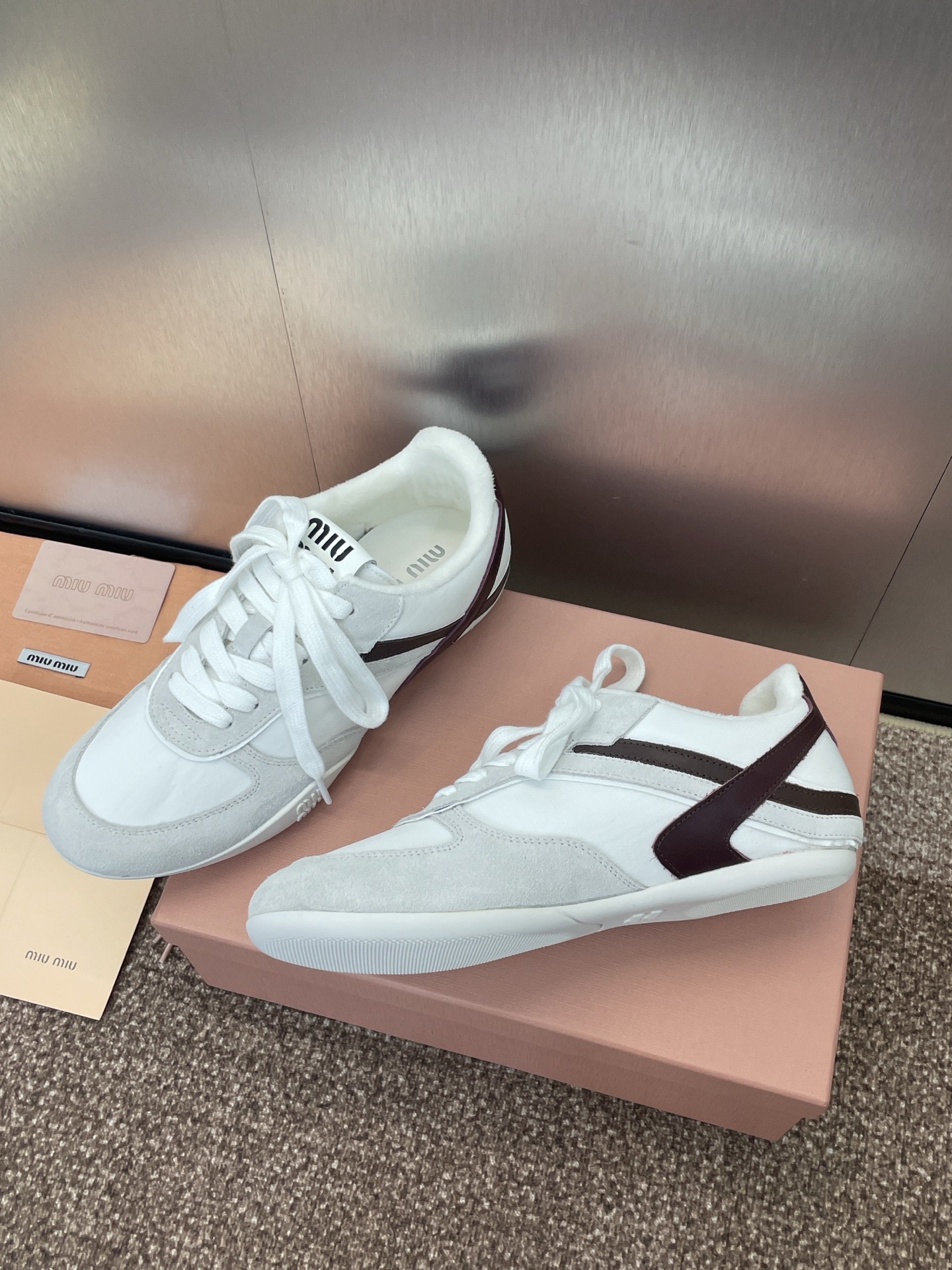 这款鞋子是AAAAA 1:1 质量 (非常棒). 使用了和原版一模一样的材料. 商标部分也保持了和缪缪/Miu Miu一样. 图片拍摄是实物鞋子拍摄, 您所收到的实物保证和我们图片一模一样.