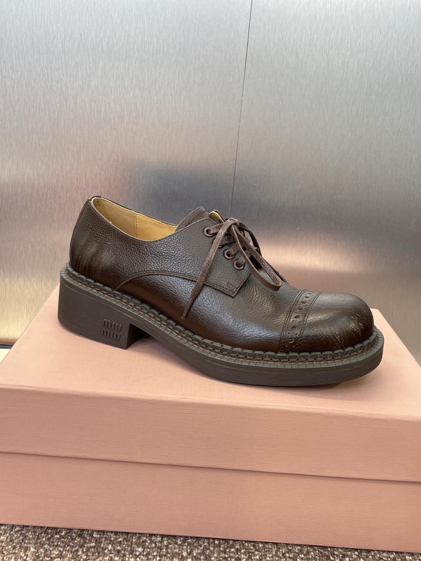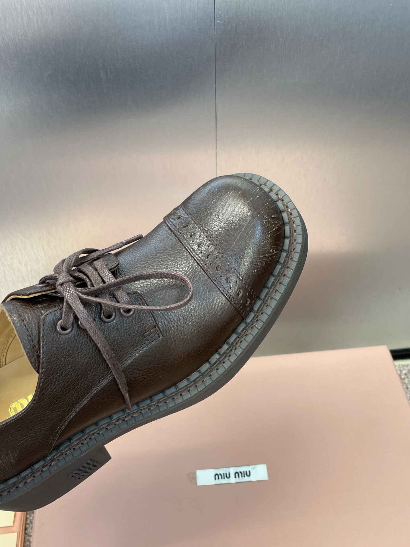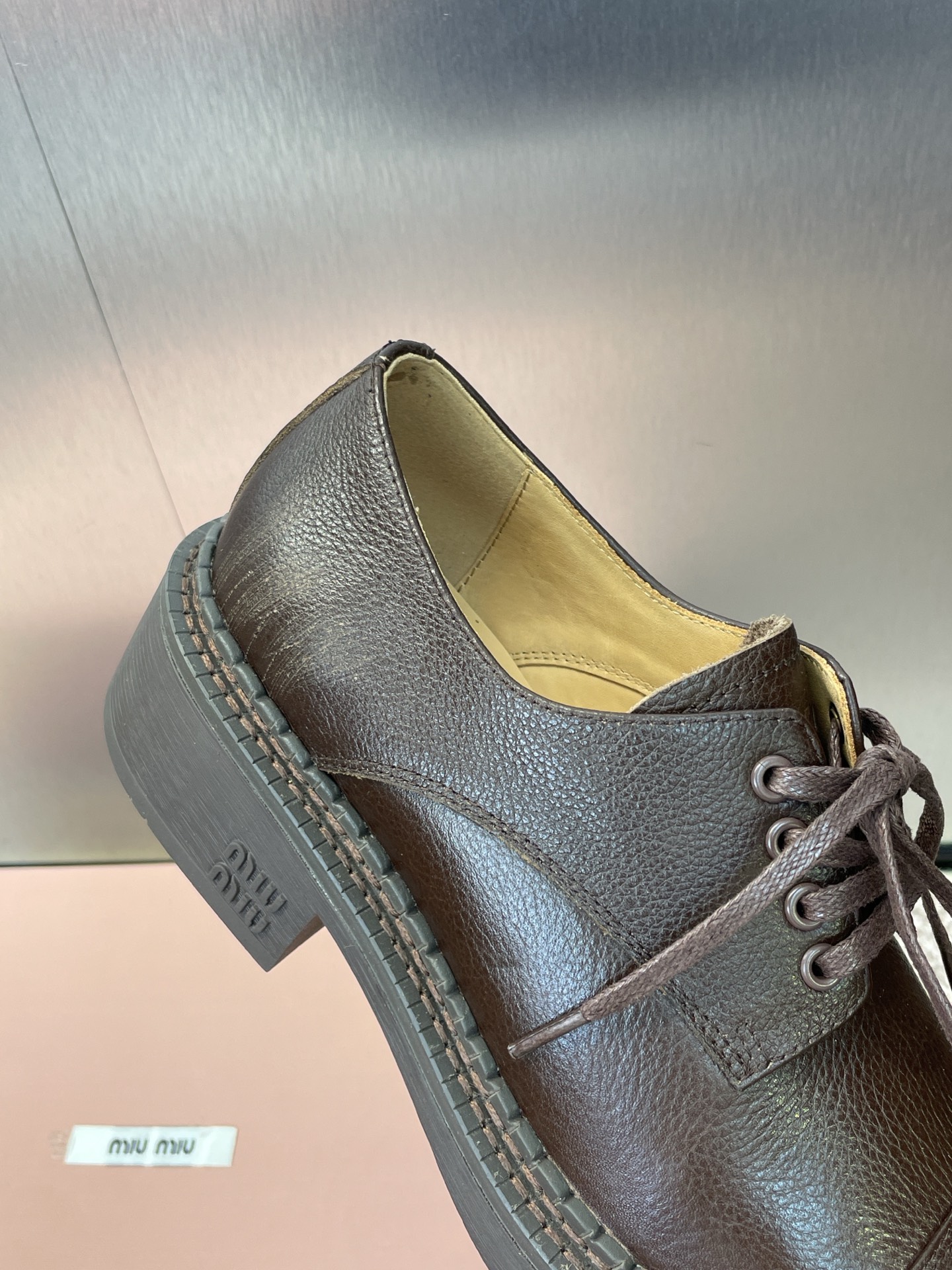 这款鞋子是AAAAA 1:1 质量 (非常棒). 使用了和原版一模一样的材料. 商标部分也保持了和缪缪/Miu Miu一样. 图片拍摄是实物鞋子拍摄, 您所收到的实物保证和我们图片一模一样.