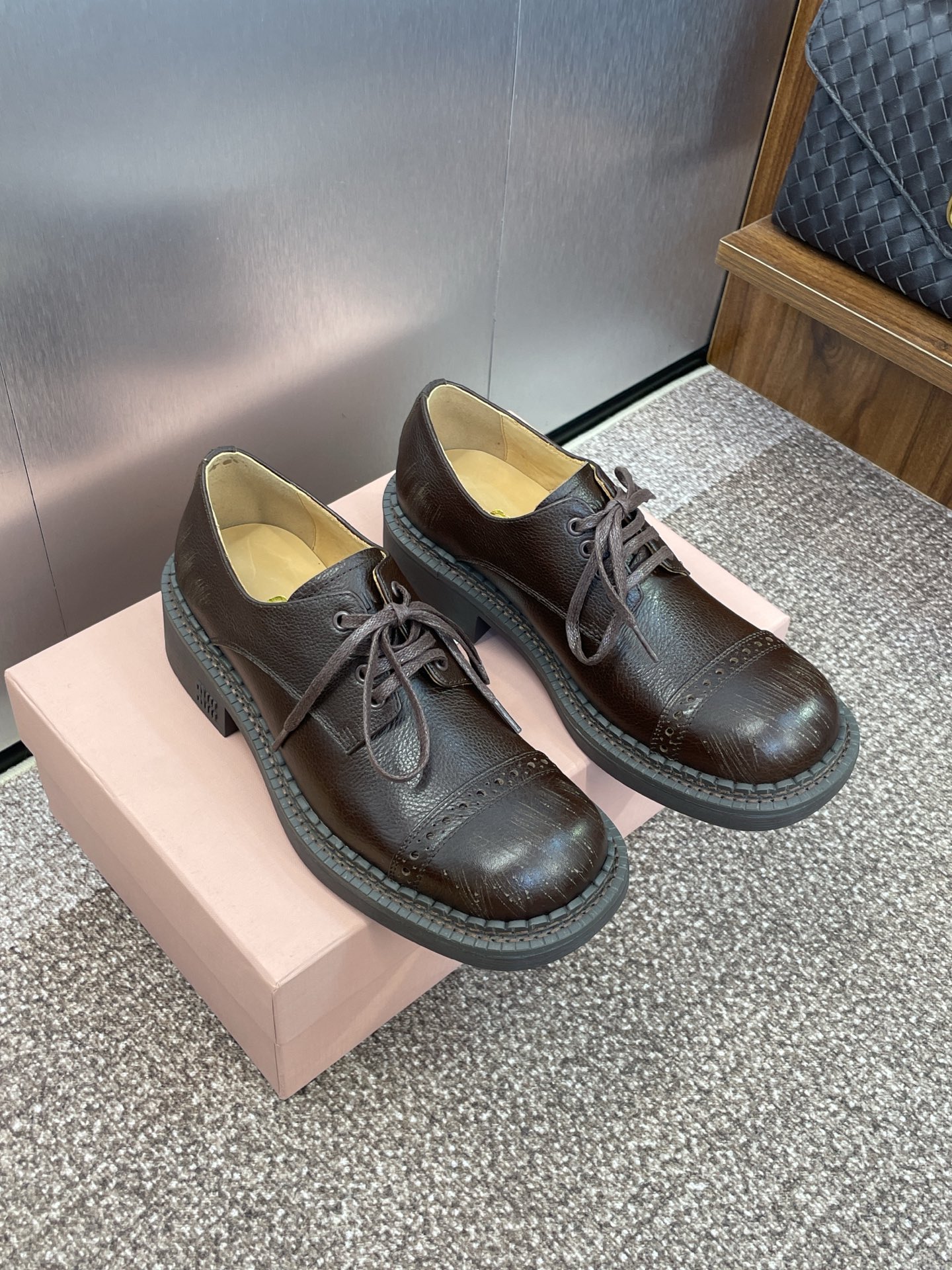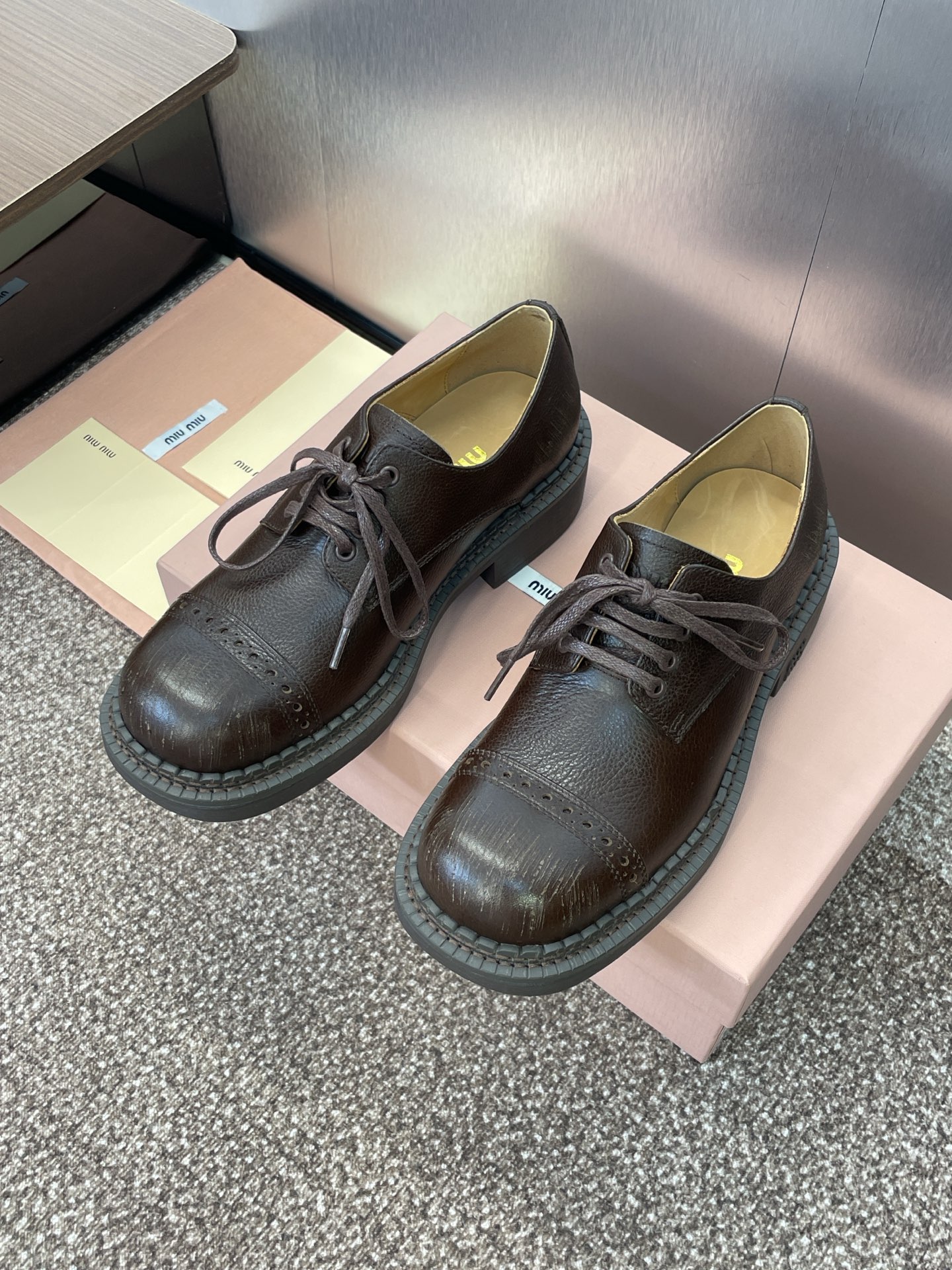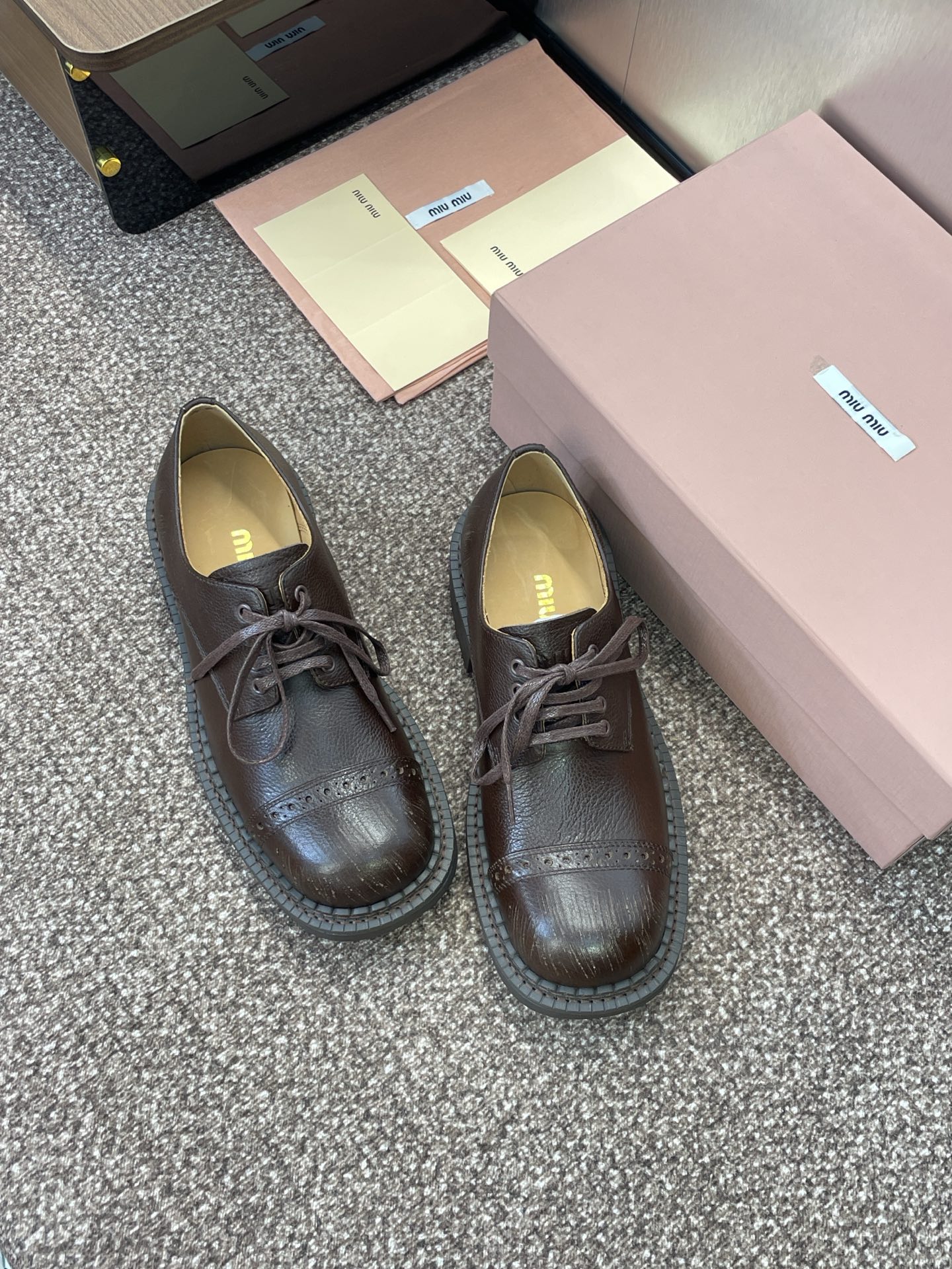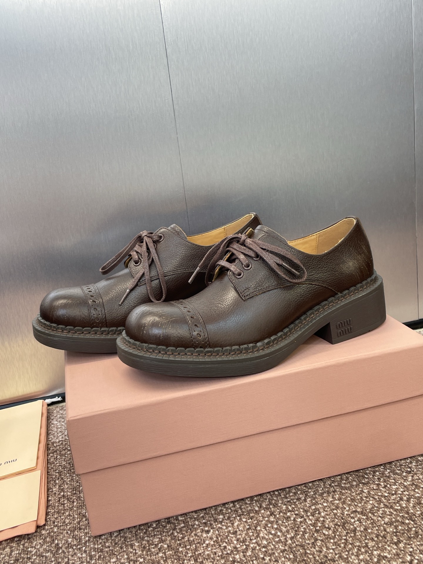 这款鞋子是AAAAA 1:1 质量 (非常棒). 使用了和原版一模一样的材料. 商标部分也保持了和缪缪/Miu Miu一样. 图片拍摄是实物鞋子拍摄, 您所收到的实物保证和我们图片一模一样.