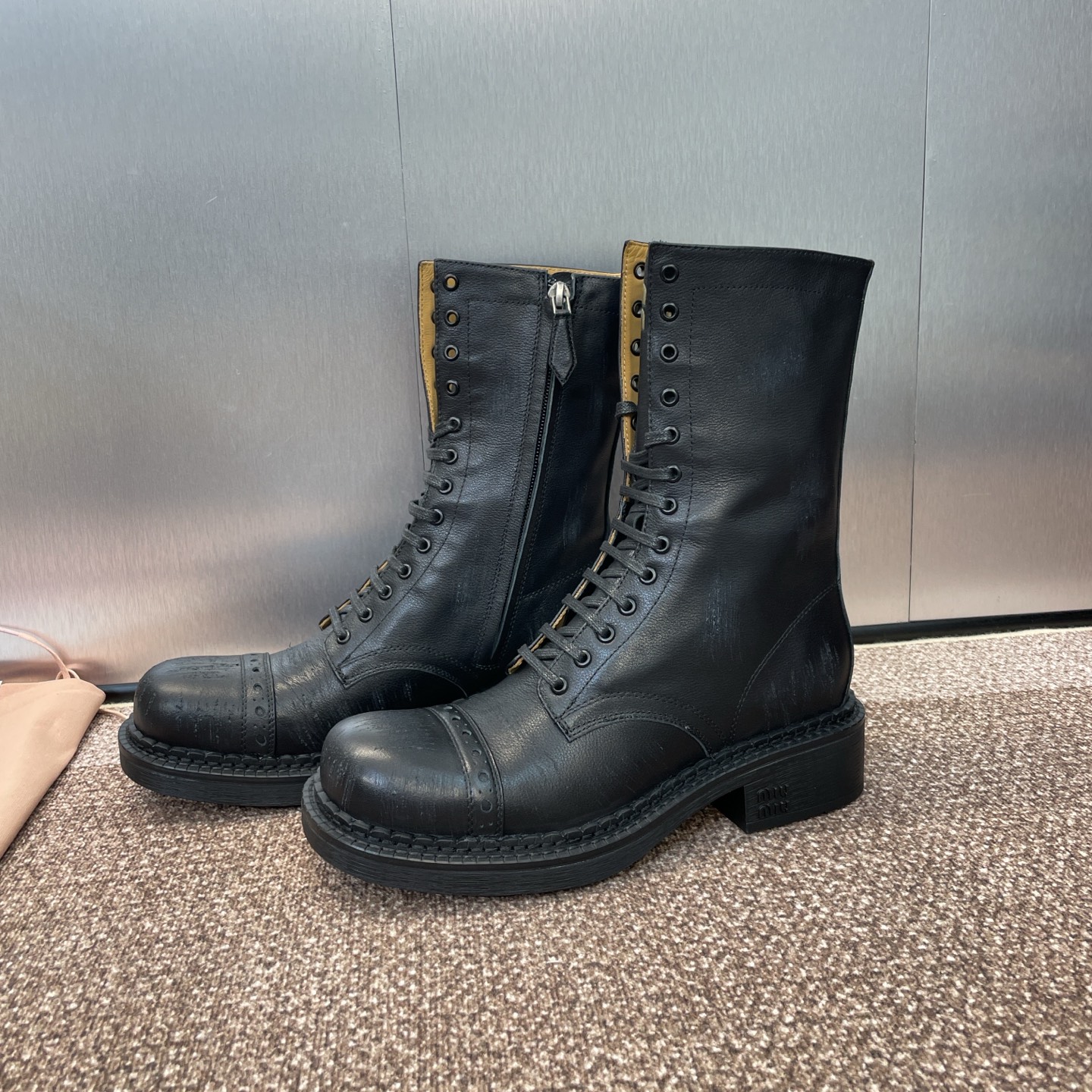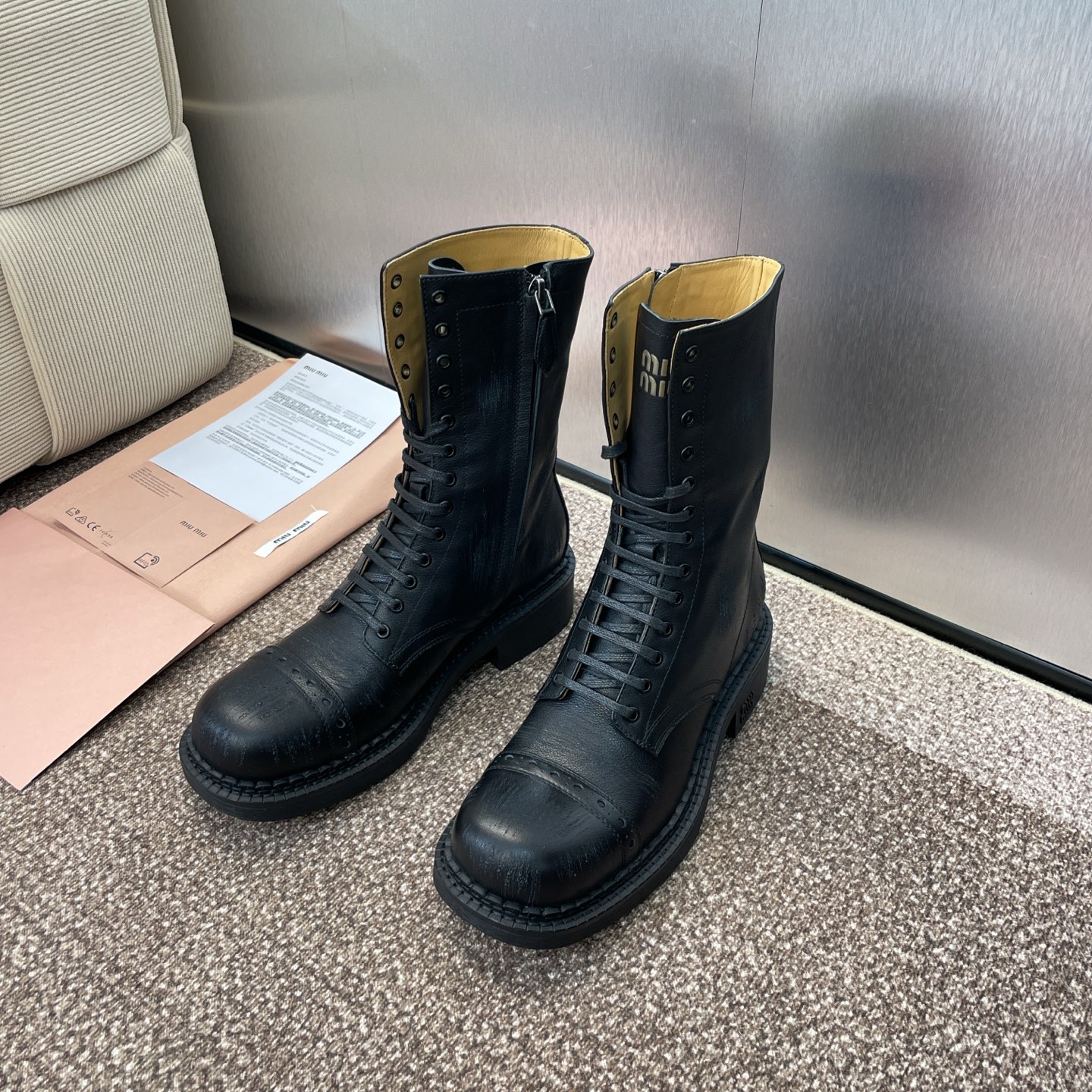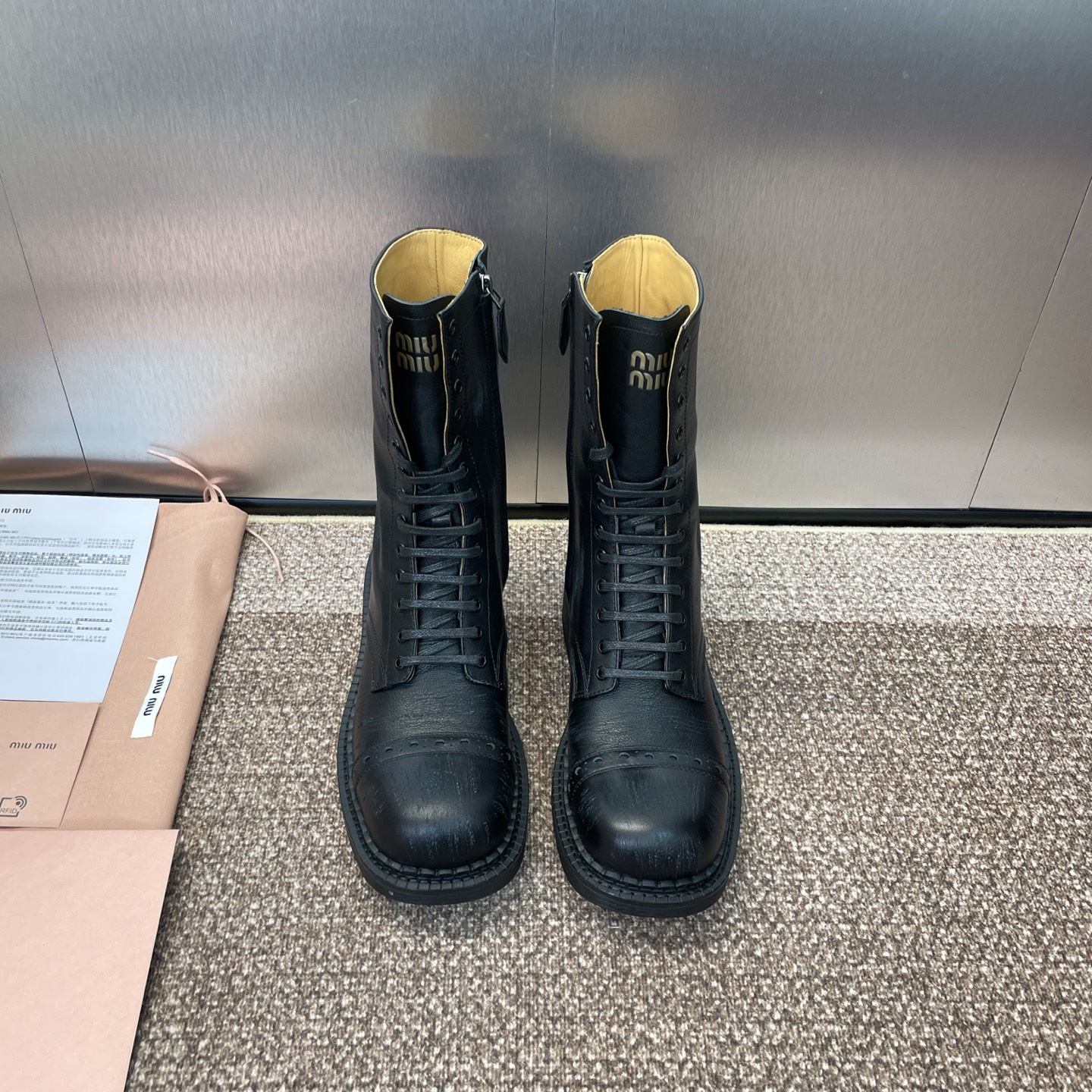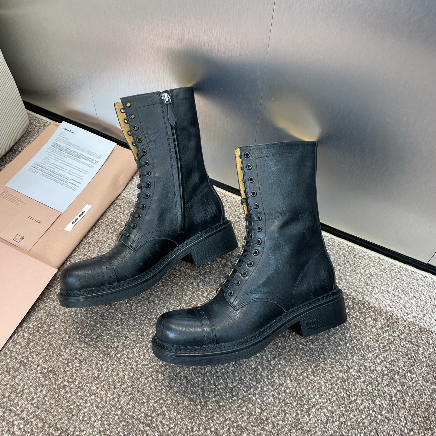 这款鞋子是AAAAA 1:1 质量 (非常棒). 使用了和原版一模一样的材料. 商标部分也保持了和缪缪/Miu Miu一样. 图片拍摄是实物鞋子拍摄, 您所收到的实物保证和我们图片一模一样.