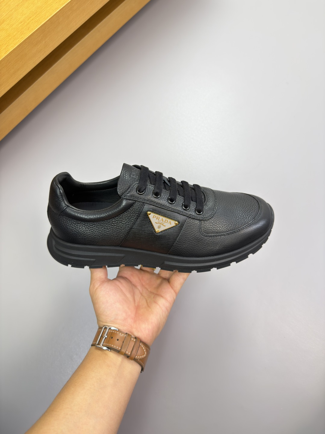这款鞋子是AAAAA 1:1 质量 (非常棒). 使用了和原版一模一样的材料. 商标部分也保持了和普拉达/Prada一样. 图片拍摄是实物鞋子拍摄, 您所收到的实物保证和我们图片一模一样.