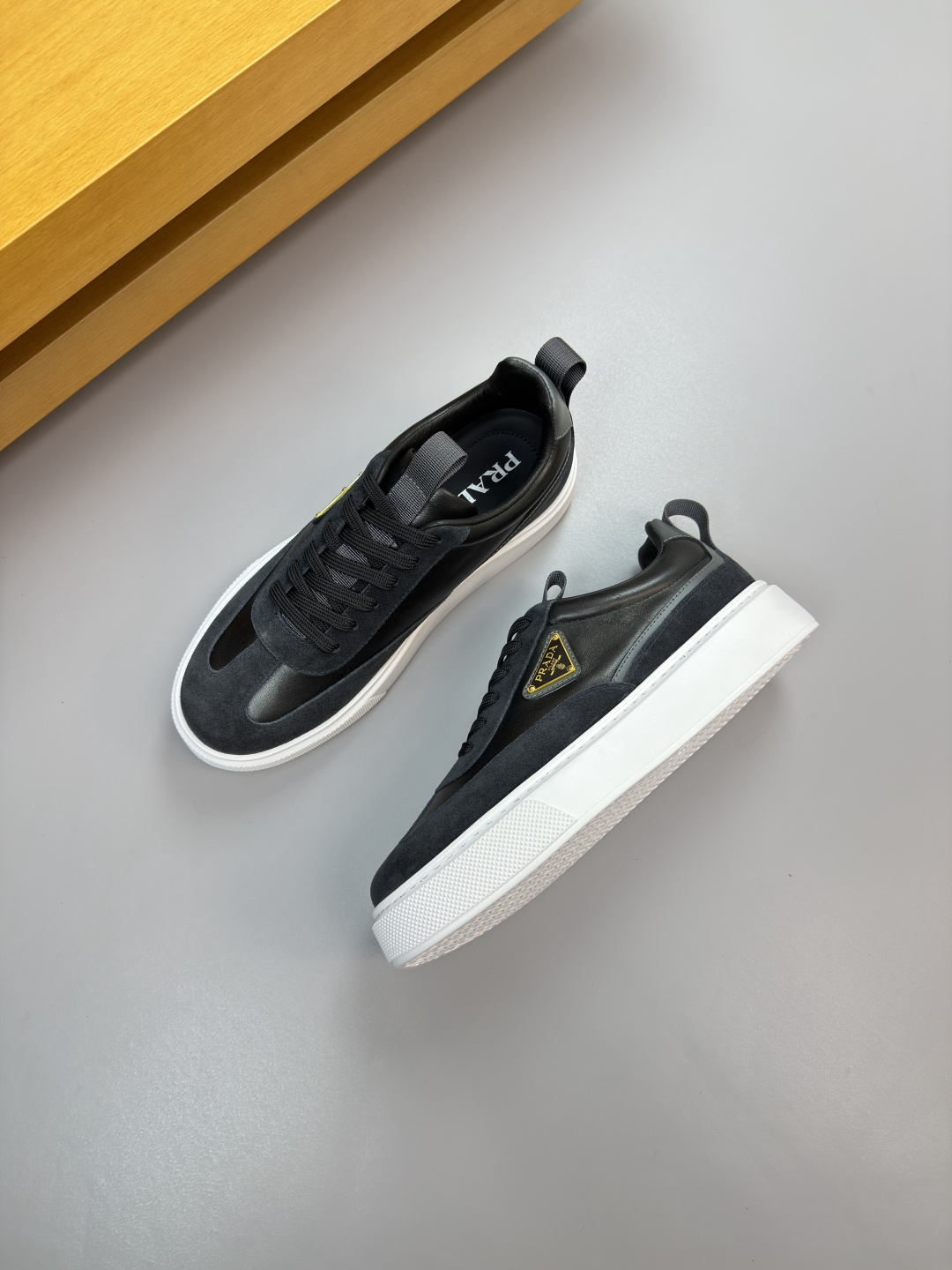 这款鞋子是AAAAA 1:1 质量 (非常棒). 使用了和原版一模一样的材料. 商标部分也保持了和普拉达/Prada一样. 图片拍摄是实物鞋子拍摄, 您所收到的实物保证和我们图片一模一样.